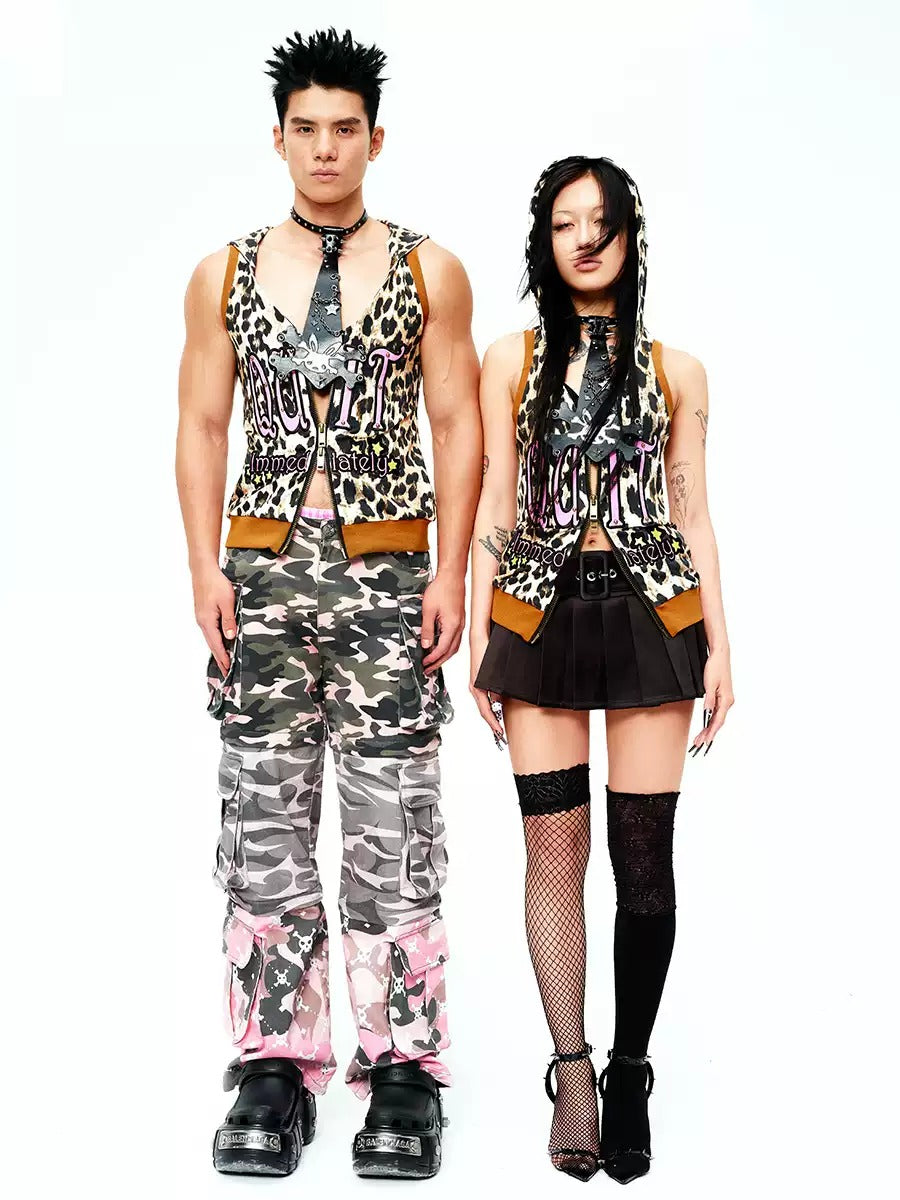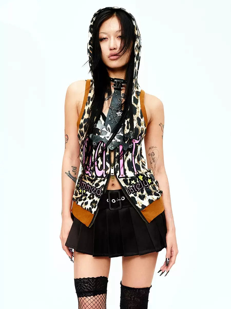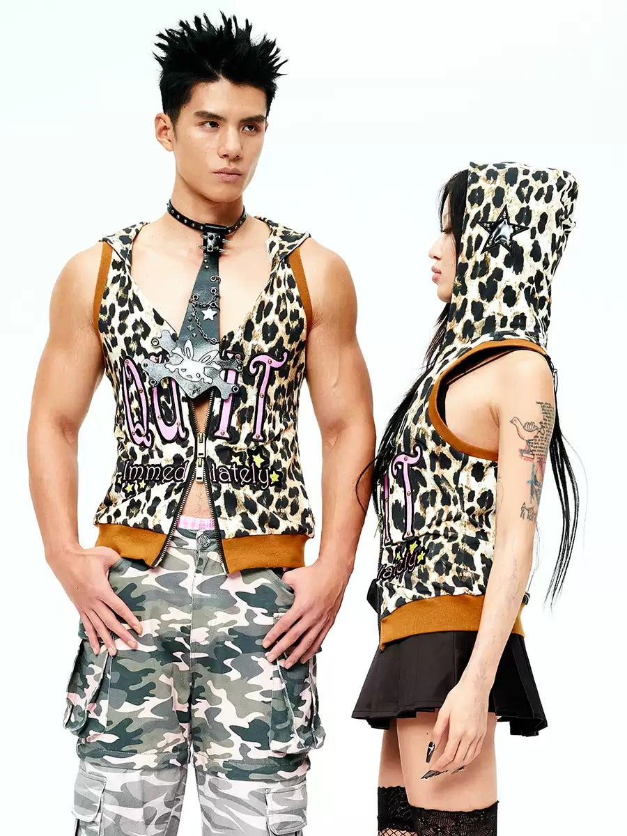 Leopard No-Sleeve Double-Zip Hoodie