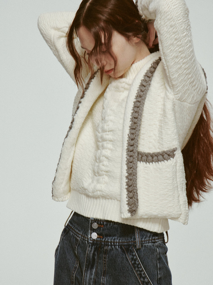 Bi-Color Hand-Knitting Retro Heavy Knit Cardigan