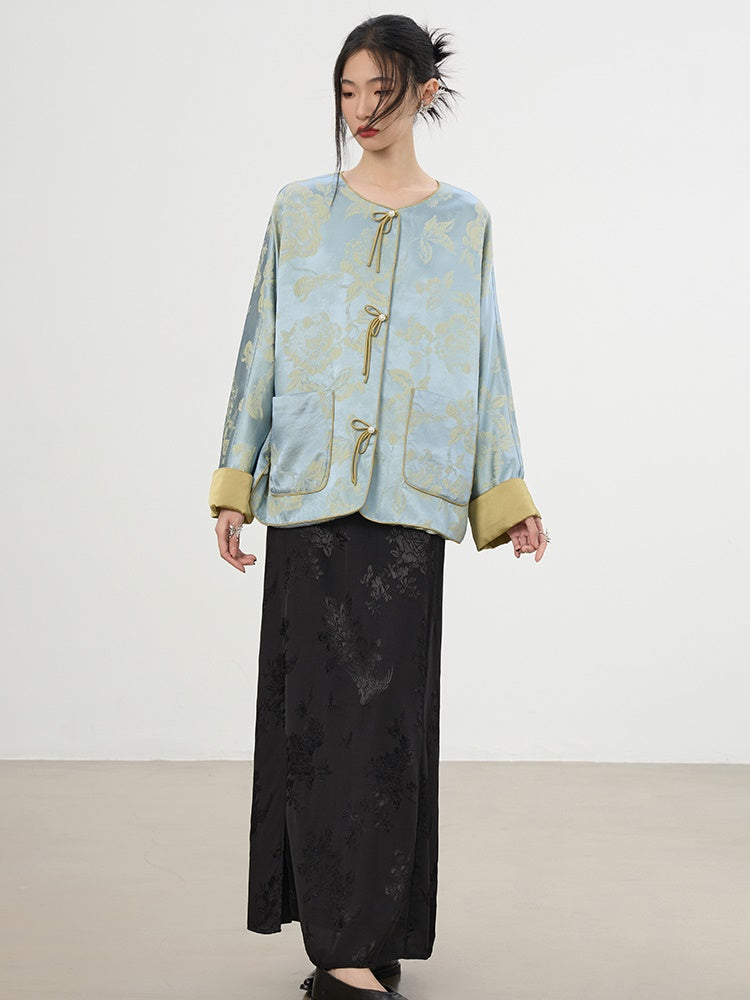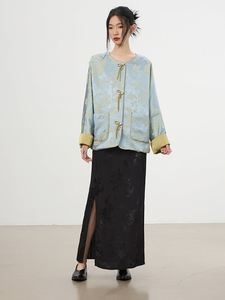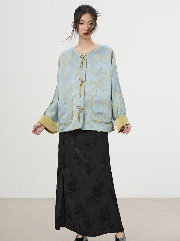 China Embroidery Flower High-End Chic Retro Jacket&Skirt