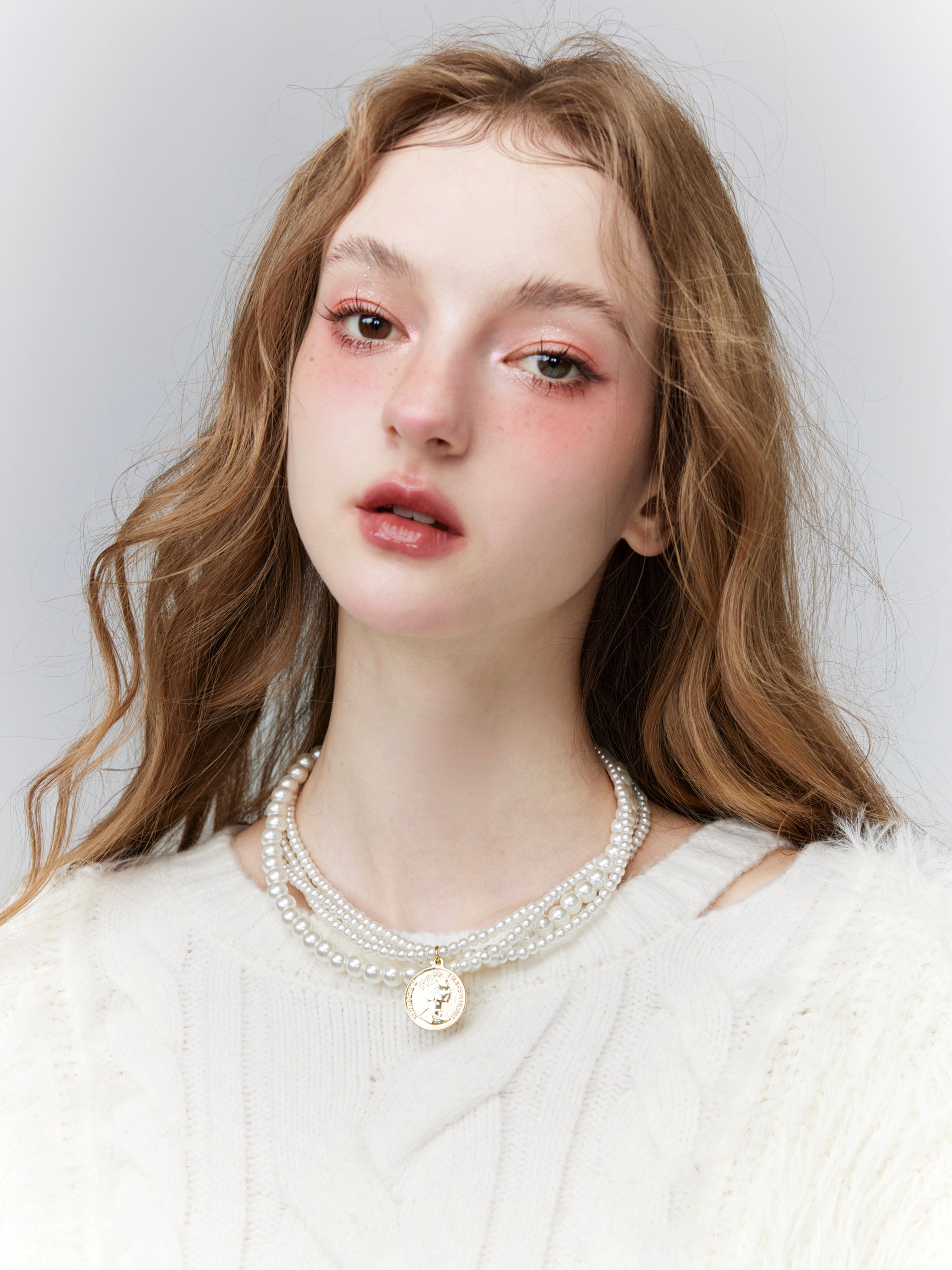 Coin Pearl Repeat Feminine Necklace-FRAGILE HEART