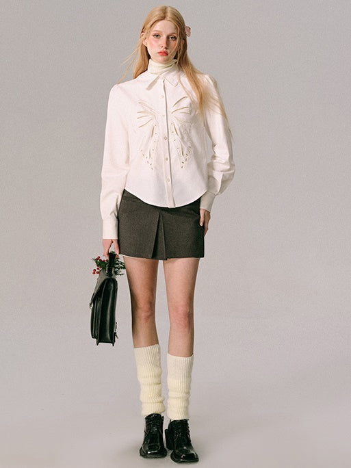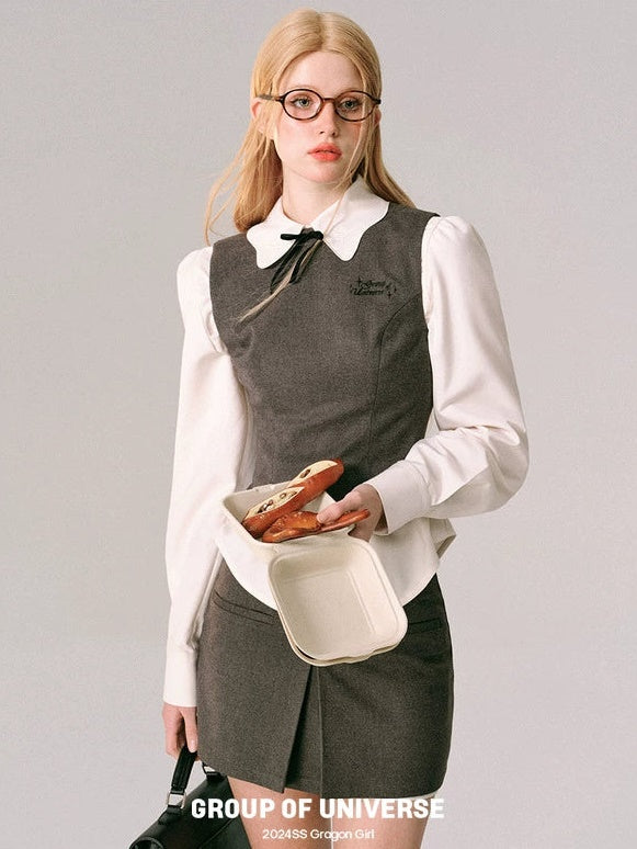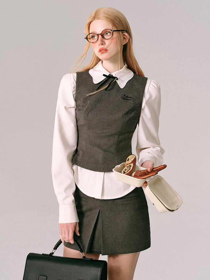 Embroidery Slim Short Vest &Tuck Mini Skirt - Group of Universe
