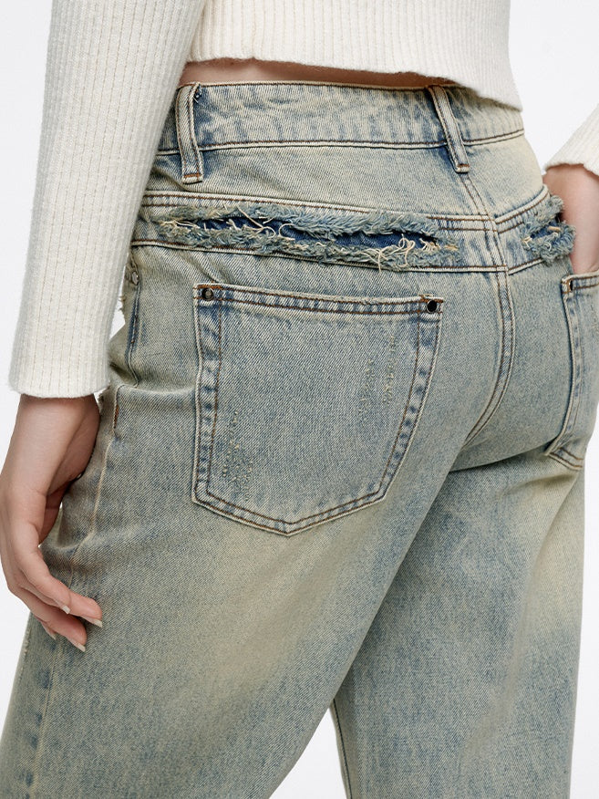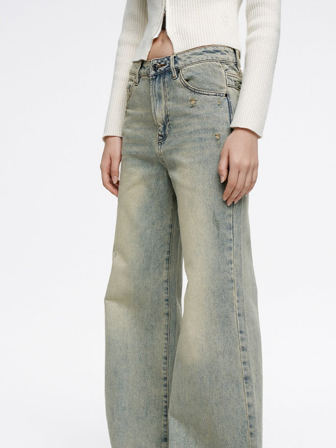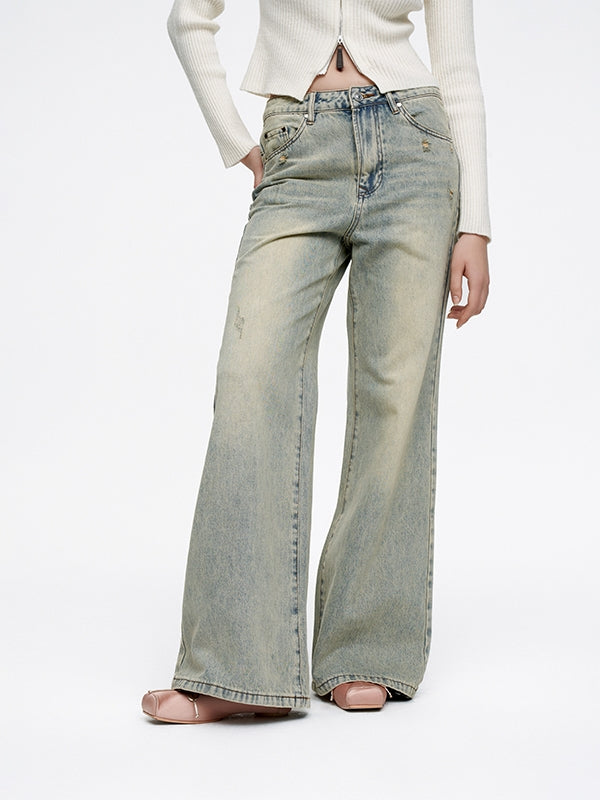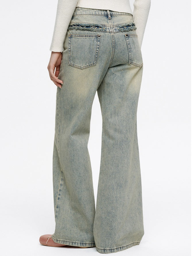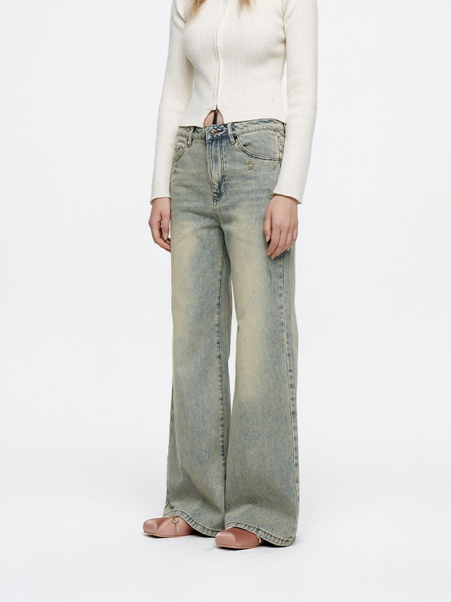 Flare Pale-Color Loose Casual Bell-Bottom Denim-Pants-FIRSTFLOOR