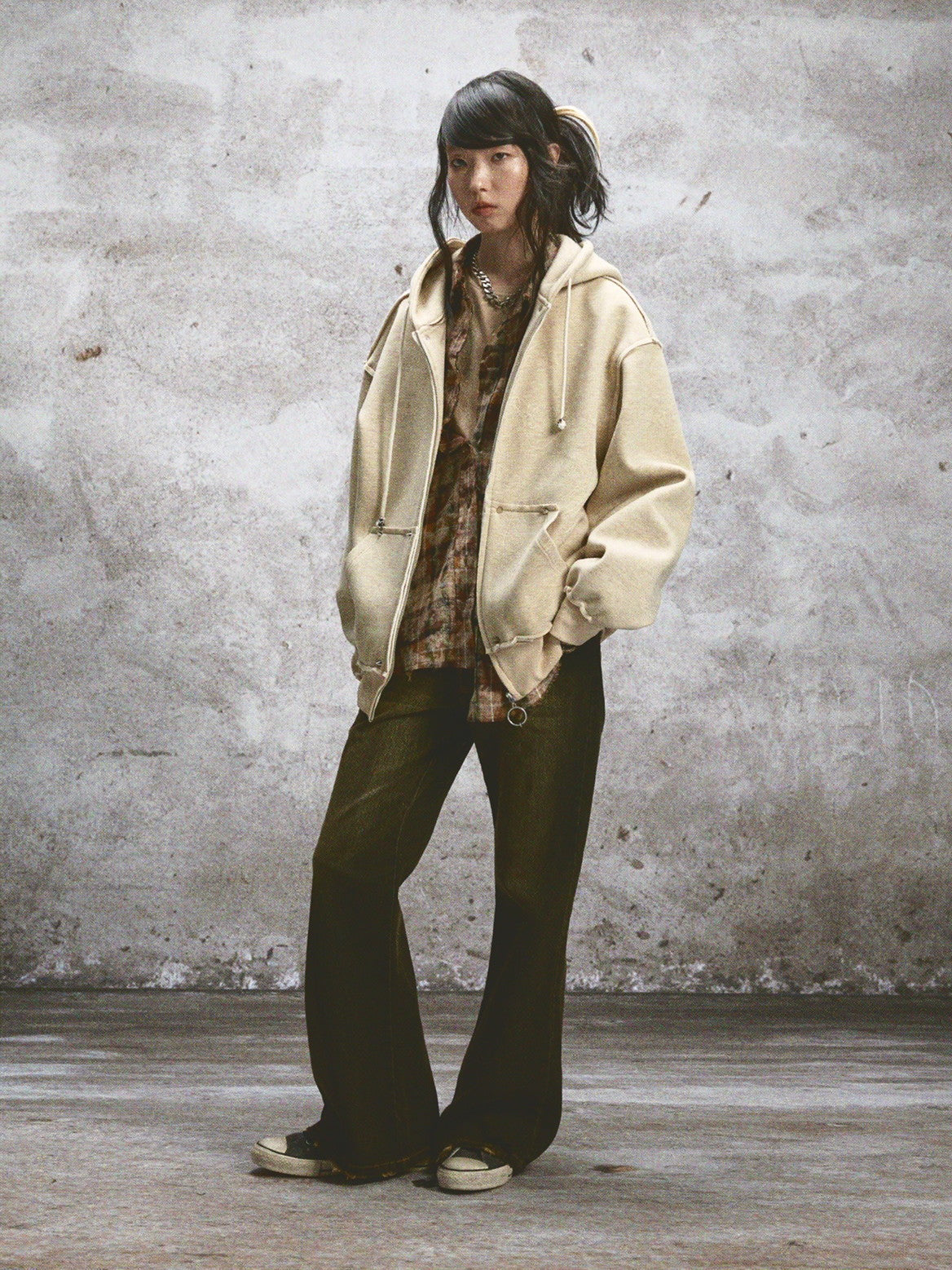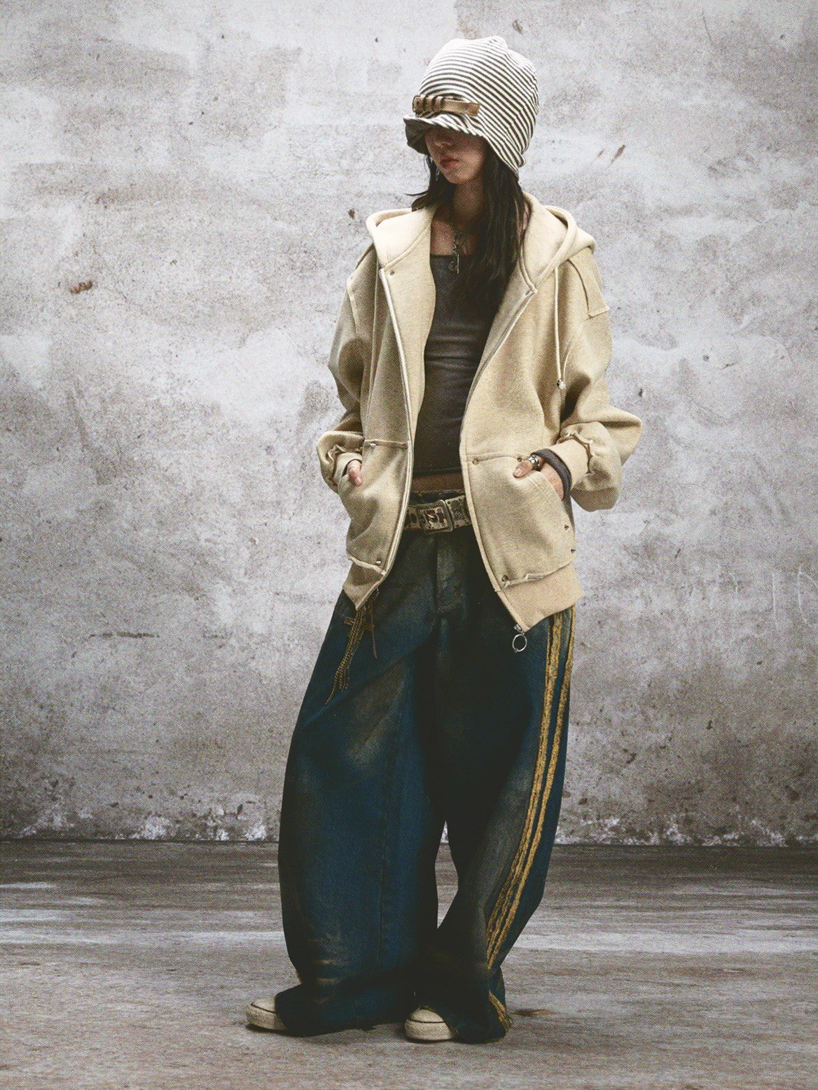 Hoodie Sweat Retro Balloon-Sleeve Oversize Parka-NONAME SPACE
