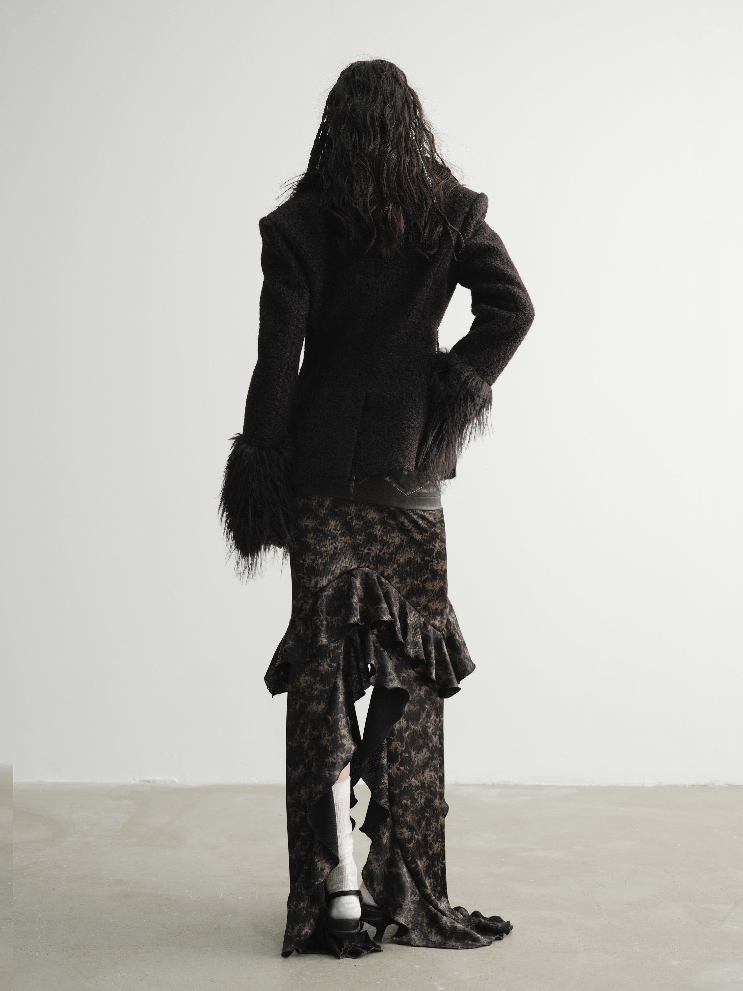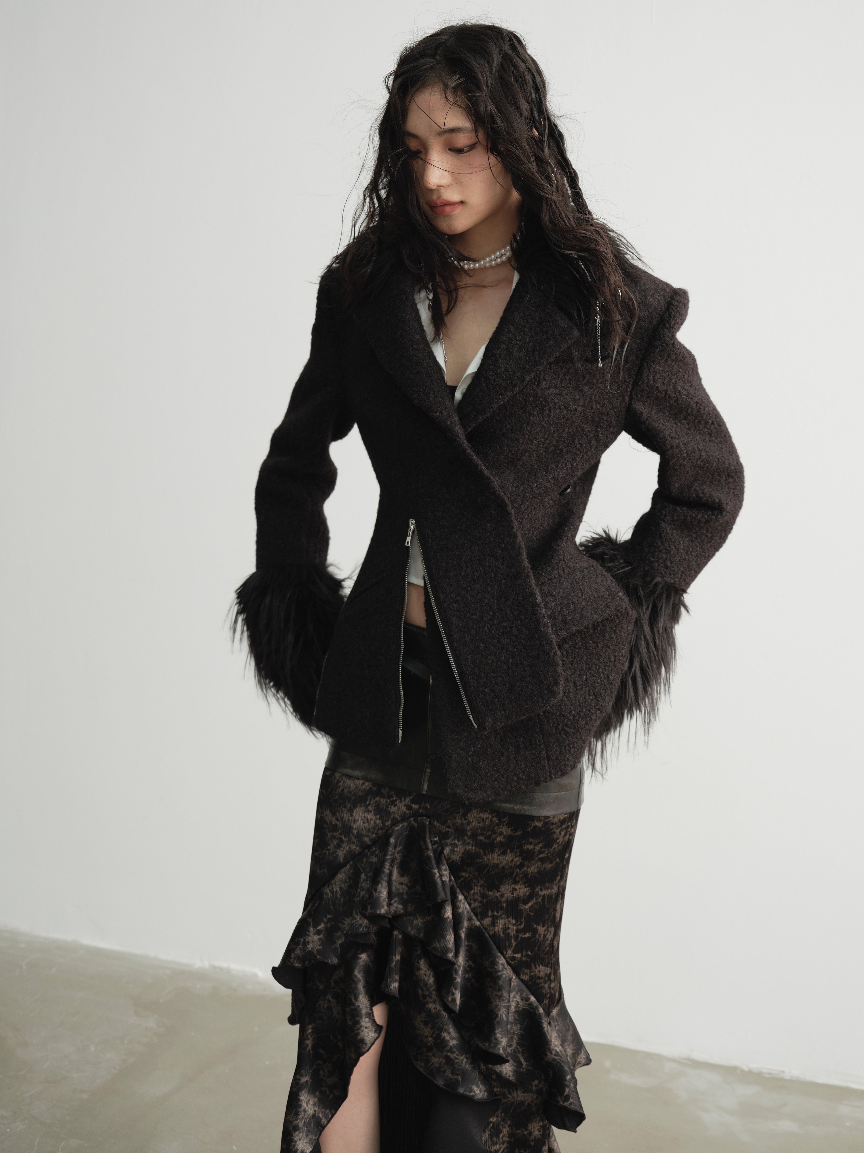 Imitation Fur Patchwork Oblique Placket Coat - JNYLON STUDIOS
