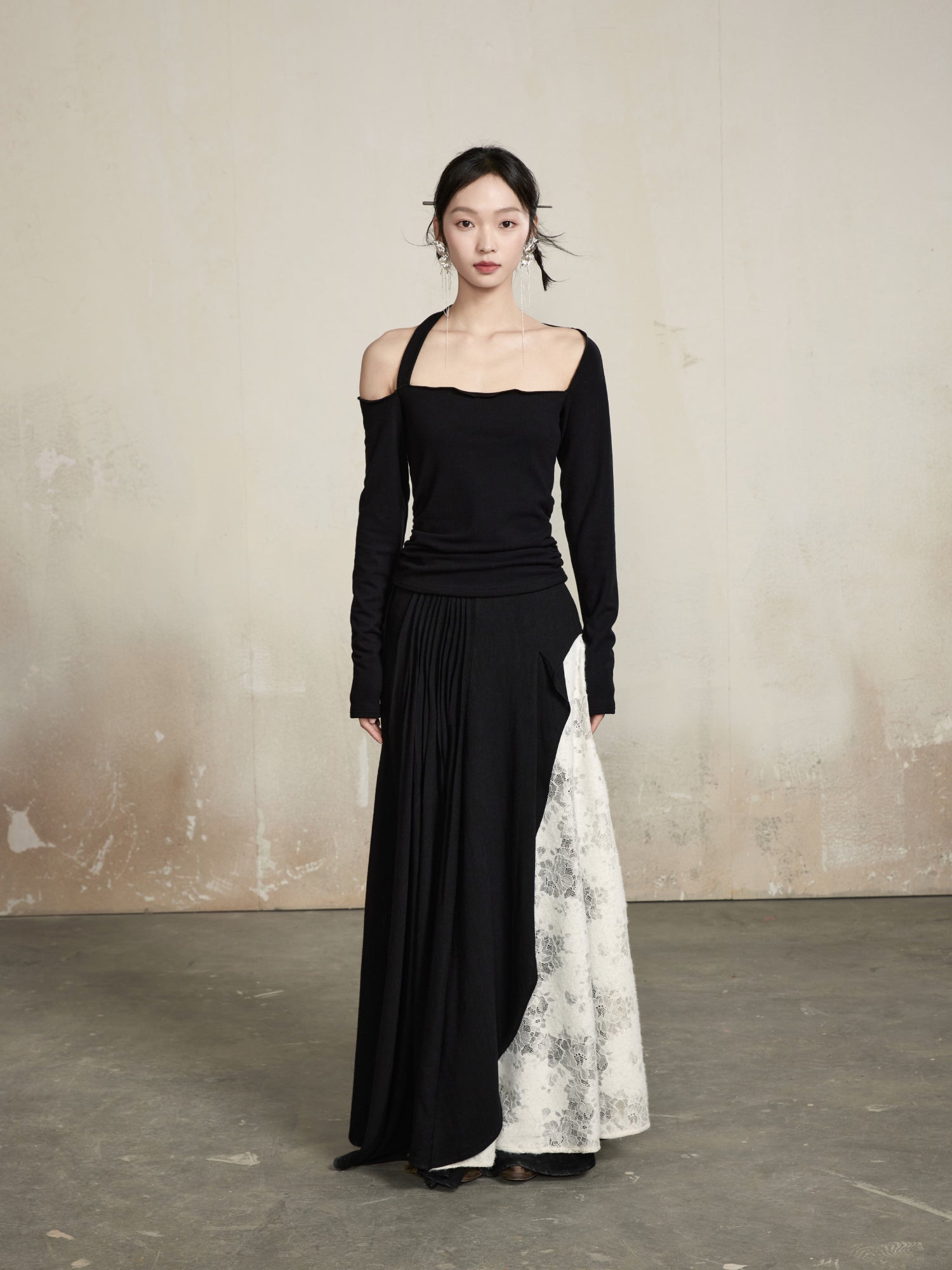Maxi Classy Flower Flare Elegant Asymmetry Lace Long-Skirt-ONMOON ECLIPSE