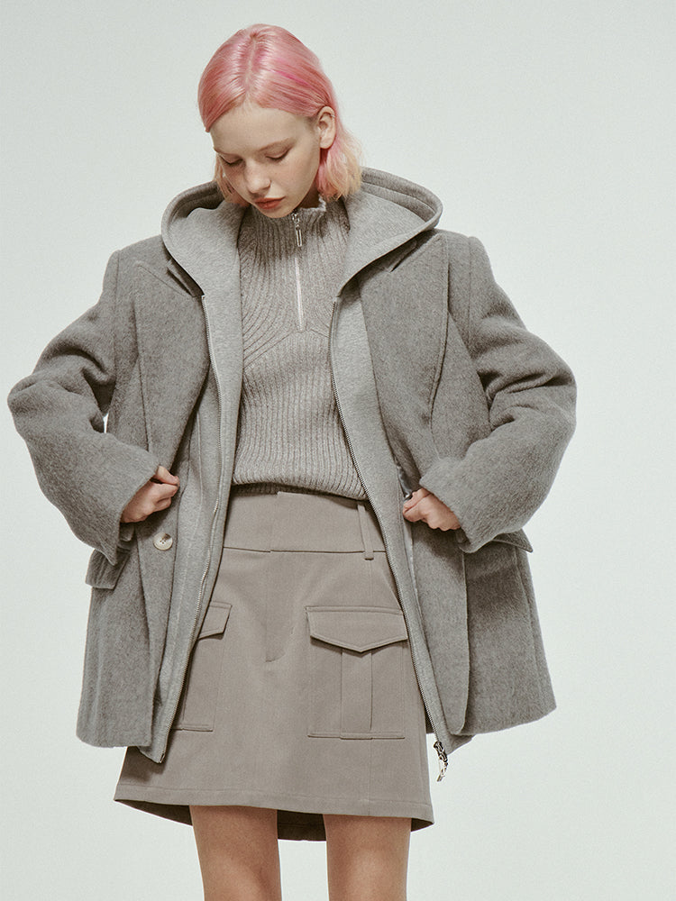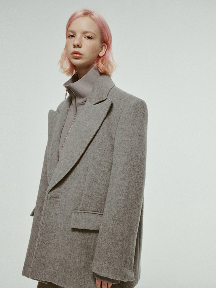 Oversize Plain Wool Loose Jacket-FUSSED