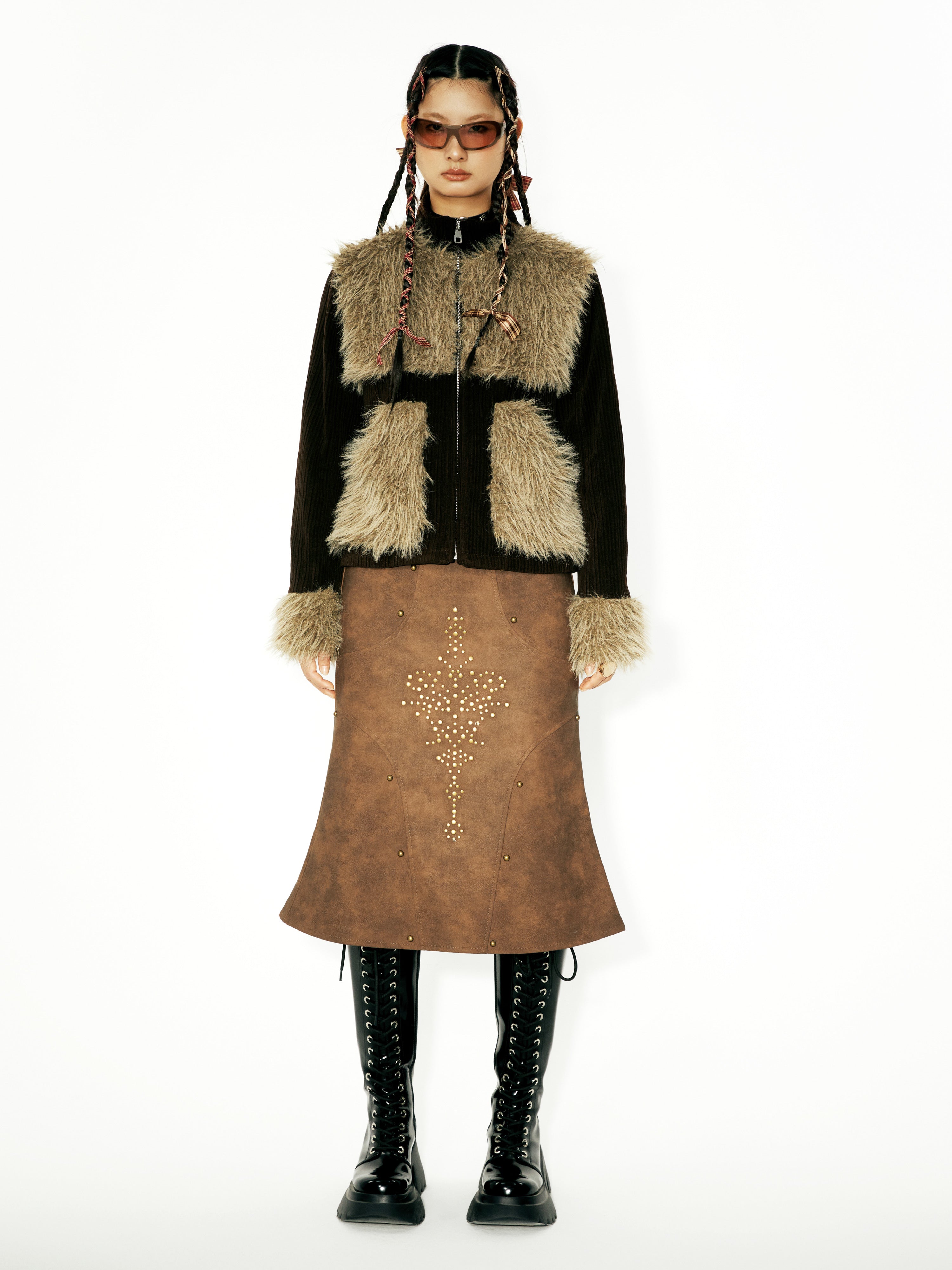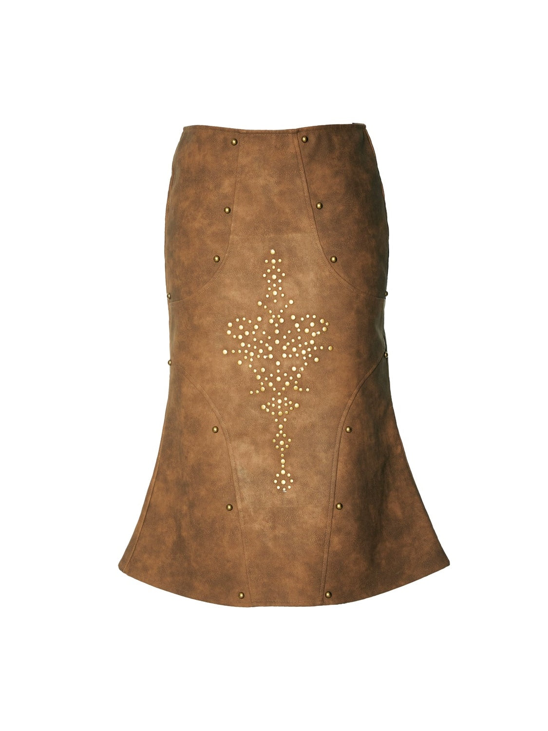Rivet Pattern Design Mermaid Half Leather Skirt - YOSHUYUKI