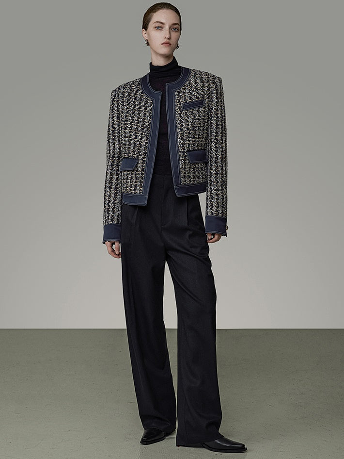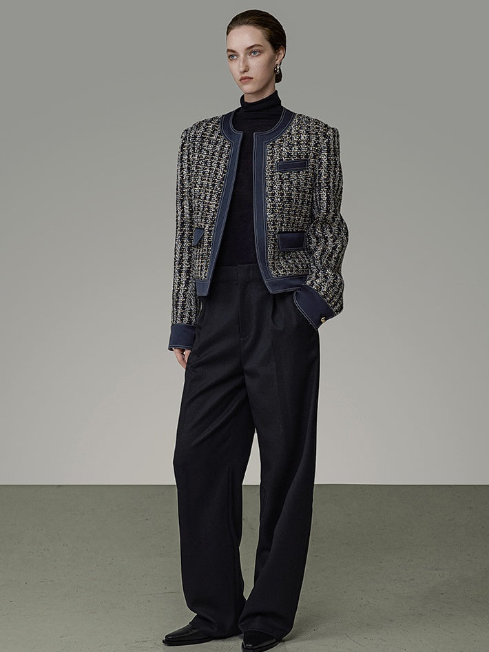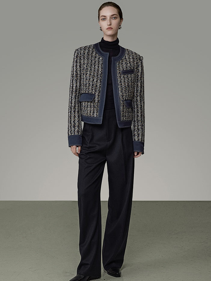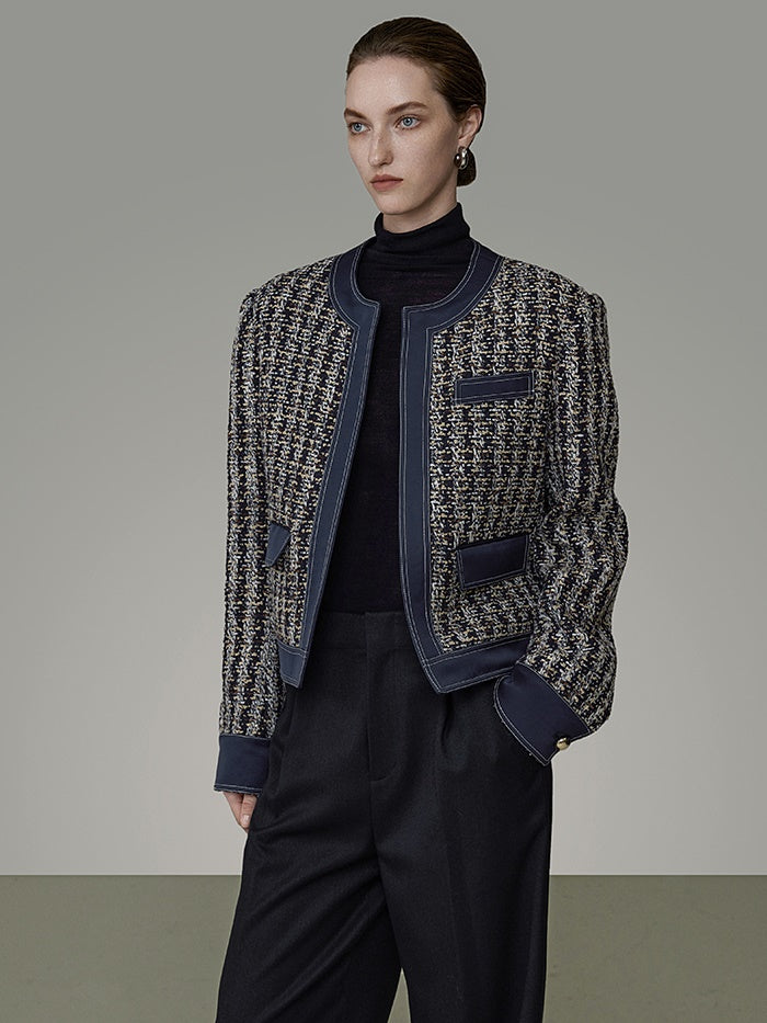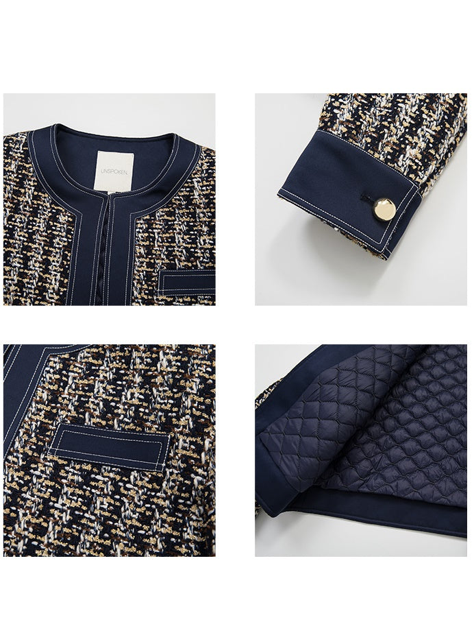 Satin Splicing Design Quilting Tweed Short Jacket - UNSPOKEN