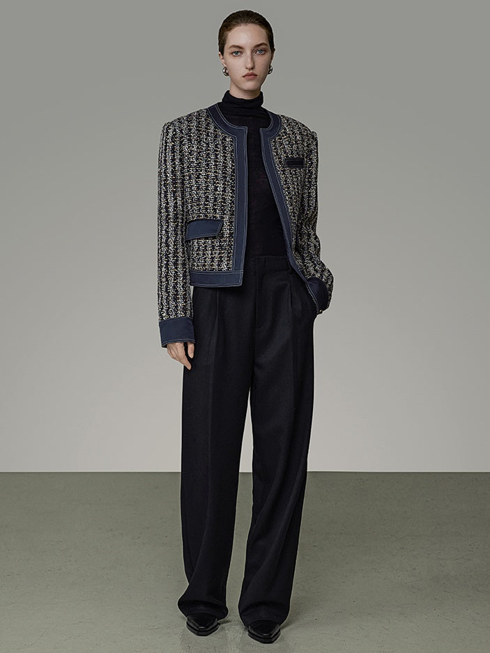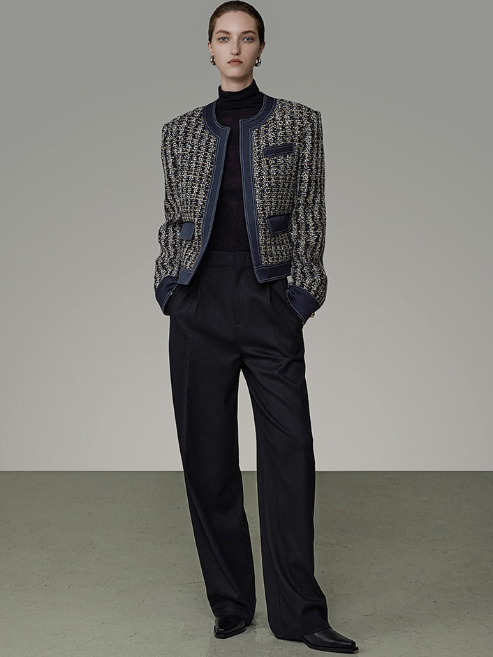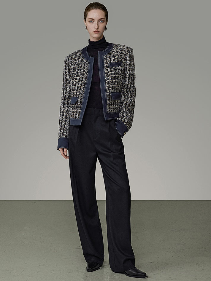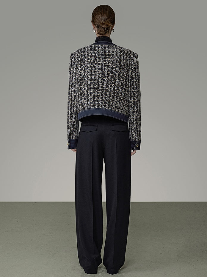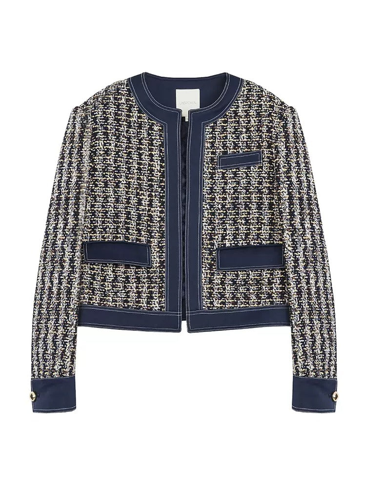 Satin Splicing Design Quilting Tweed Short Jacket - UNSPOKEN