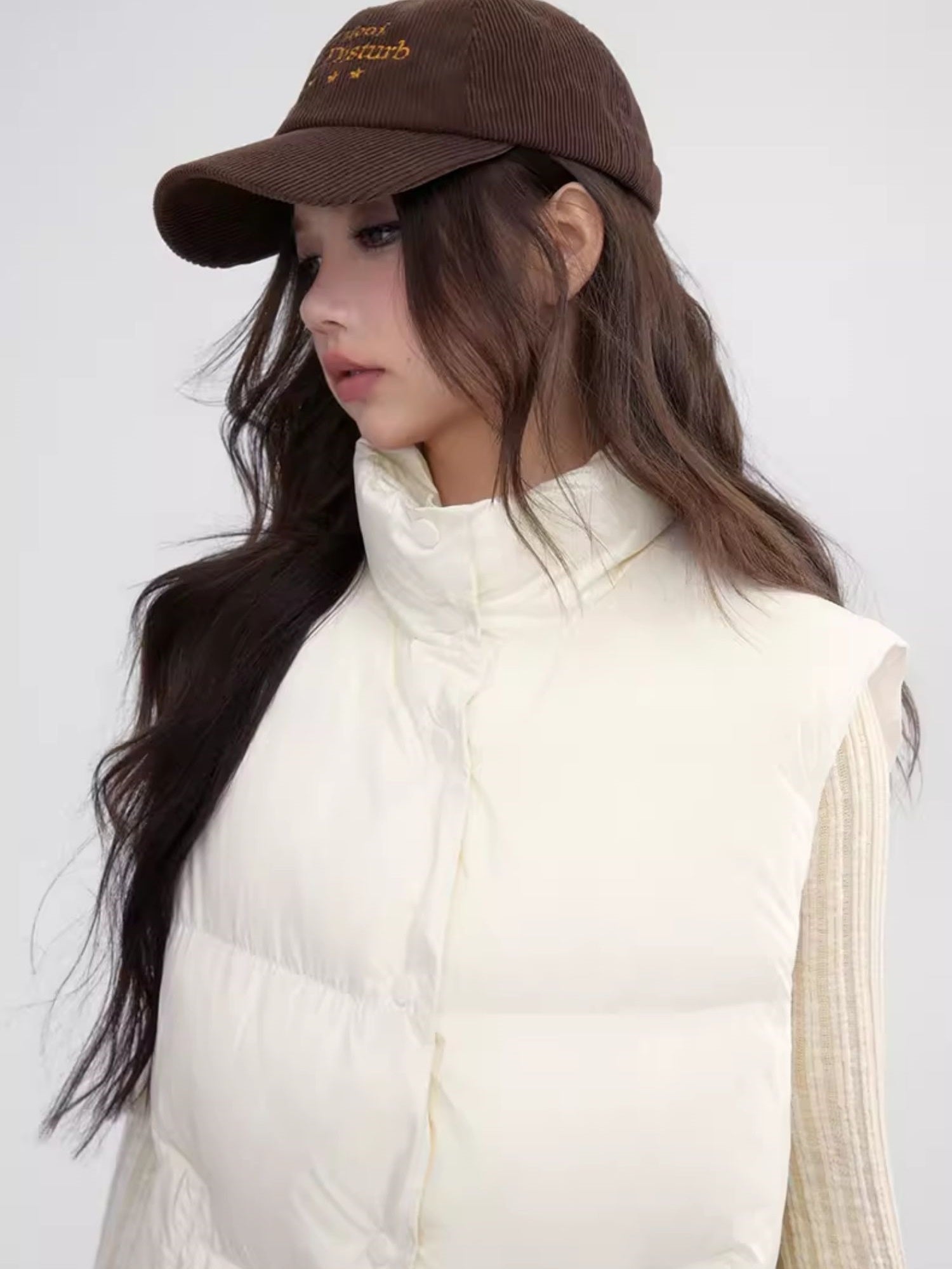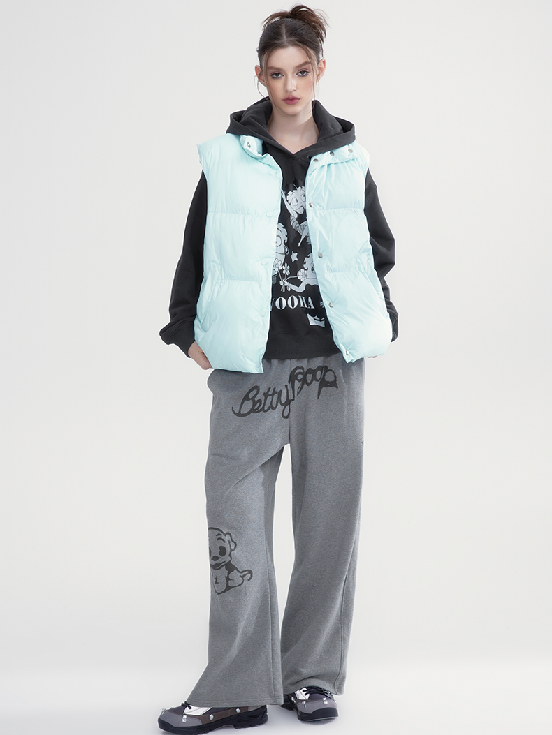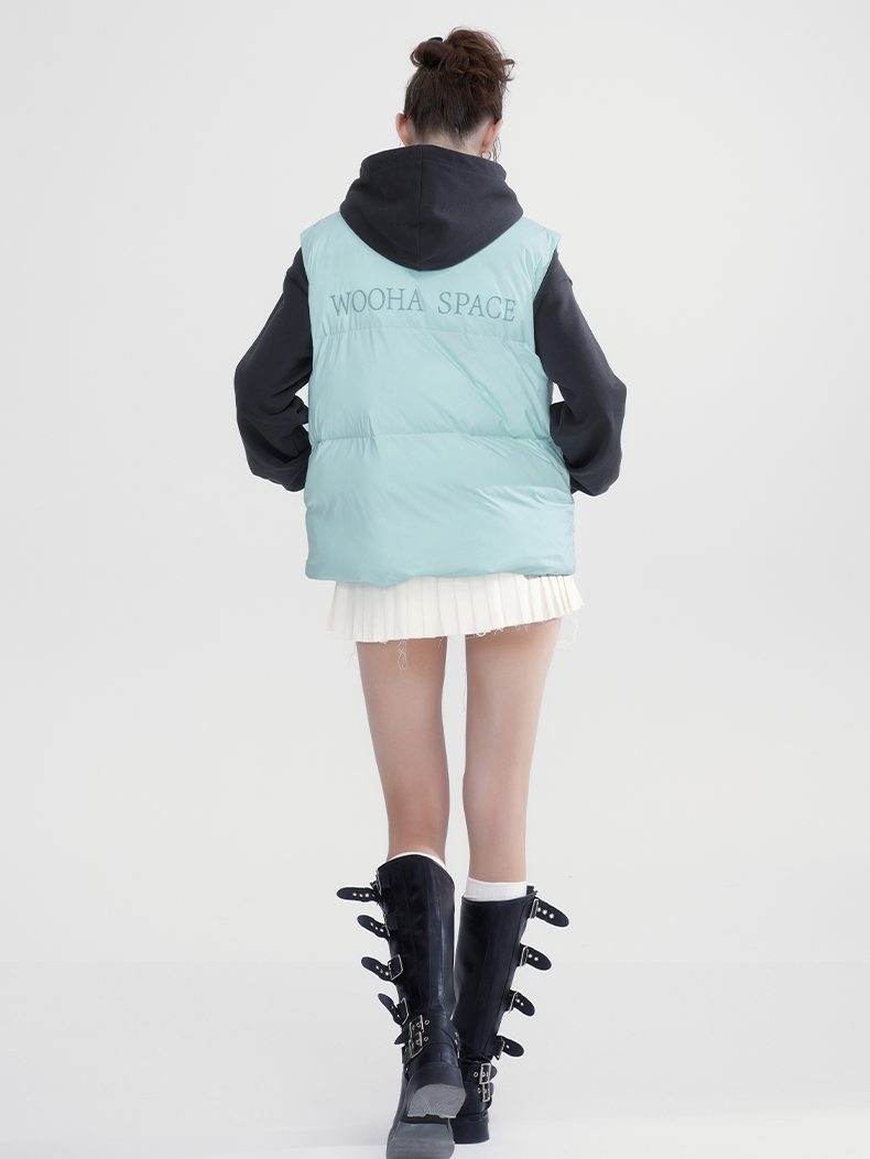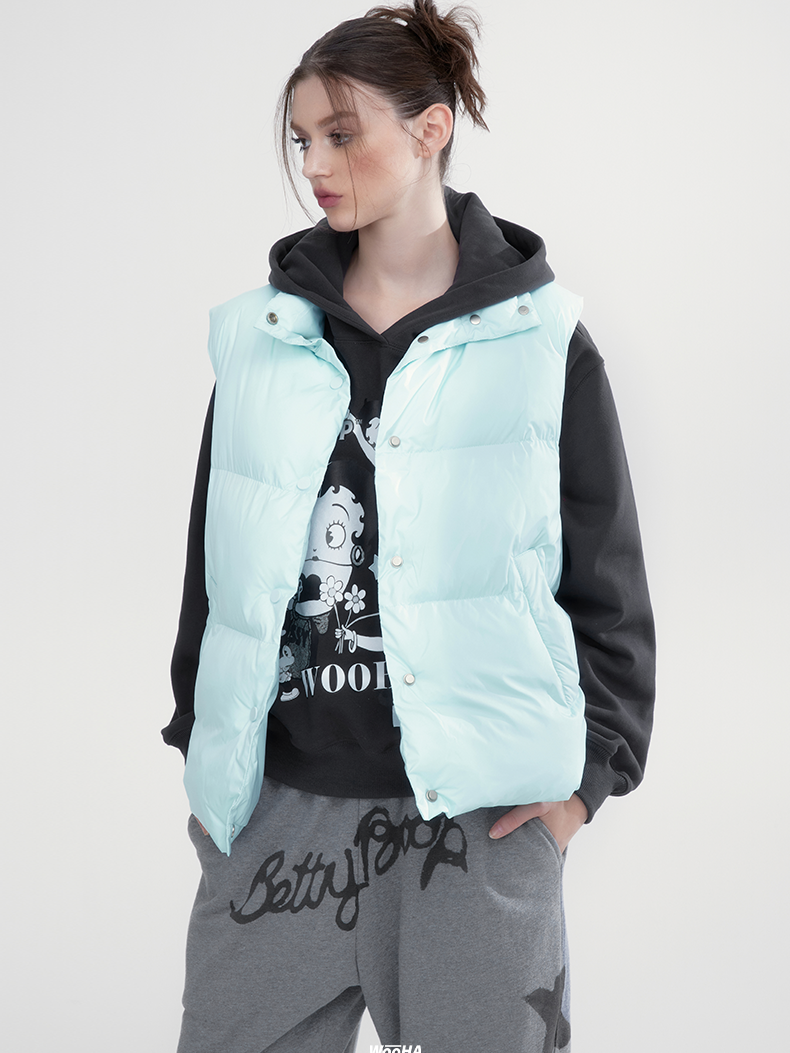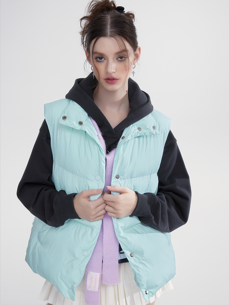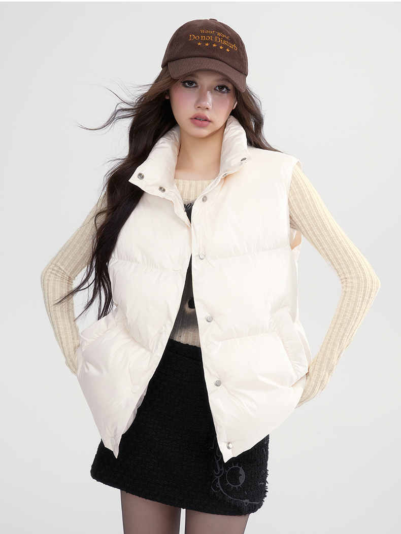 Stand-Collar Plain Cottono Natural Down-Vest-wooHa