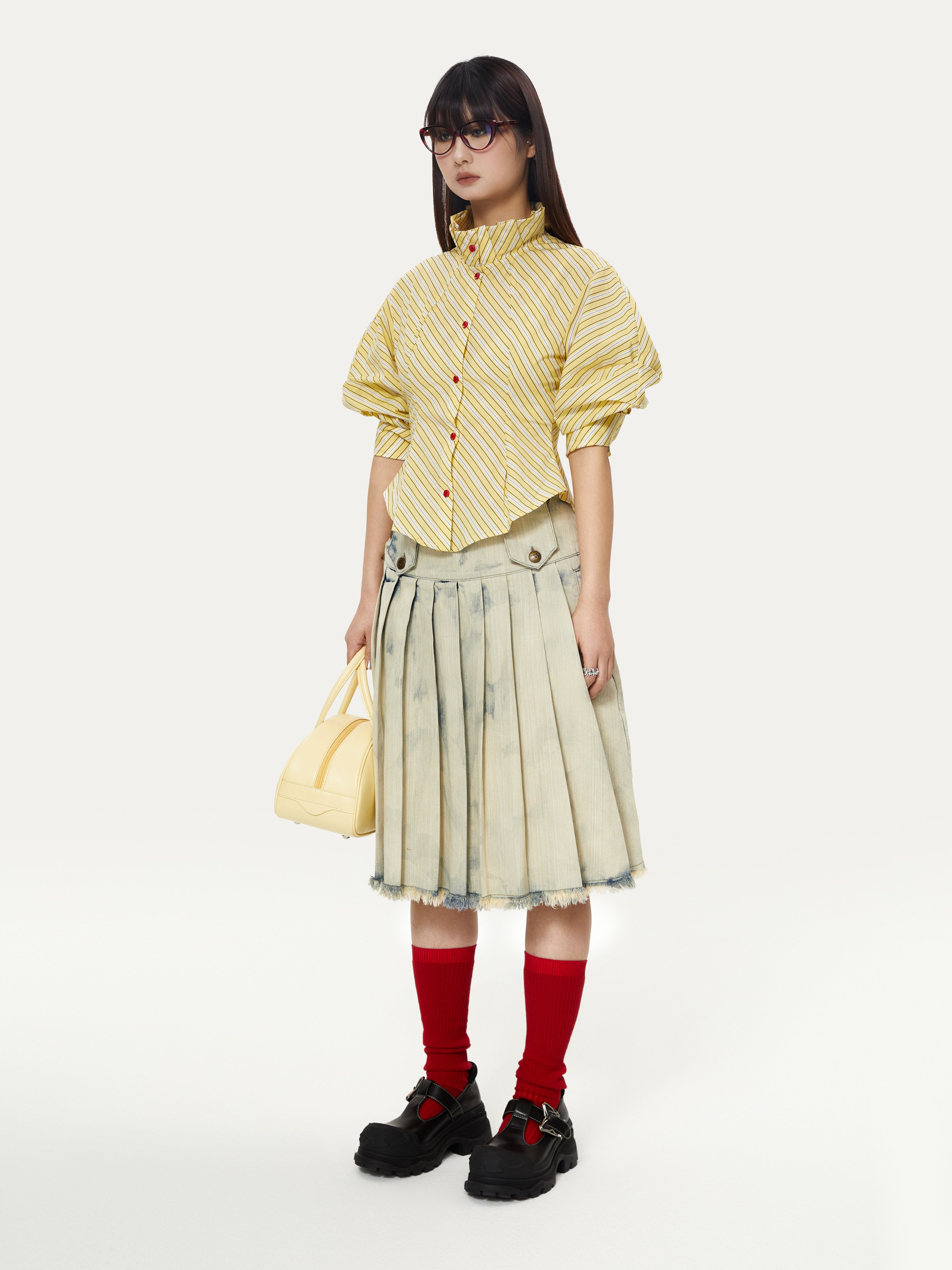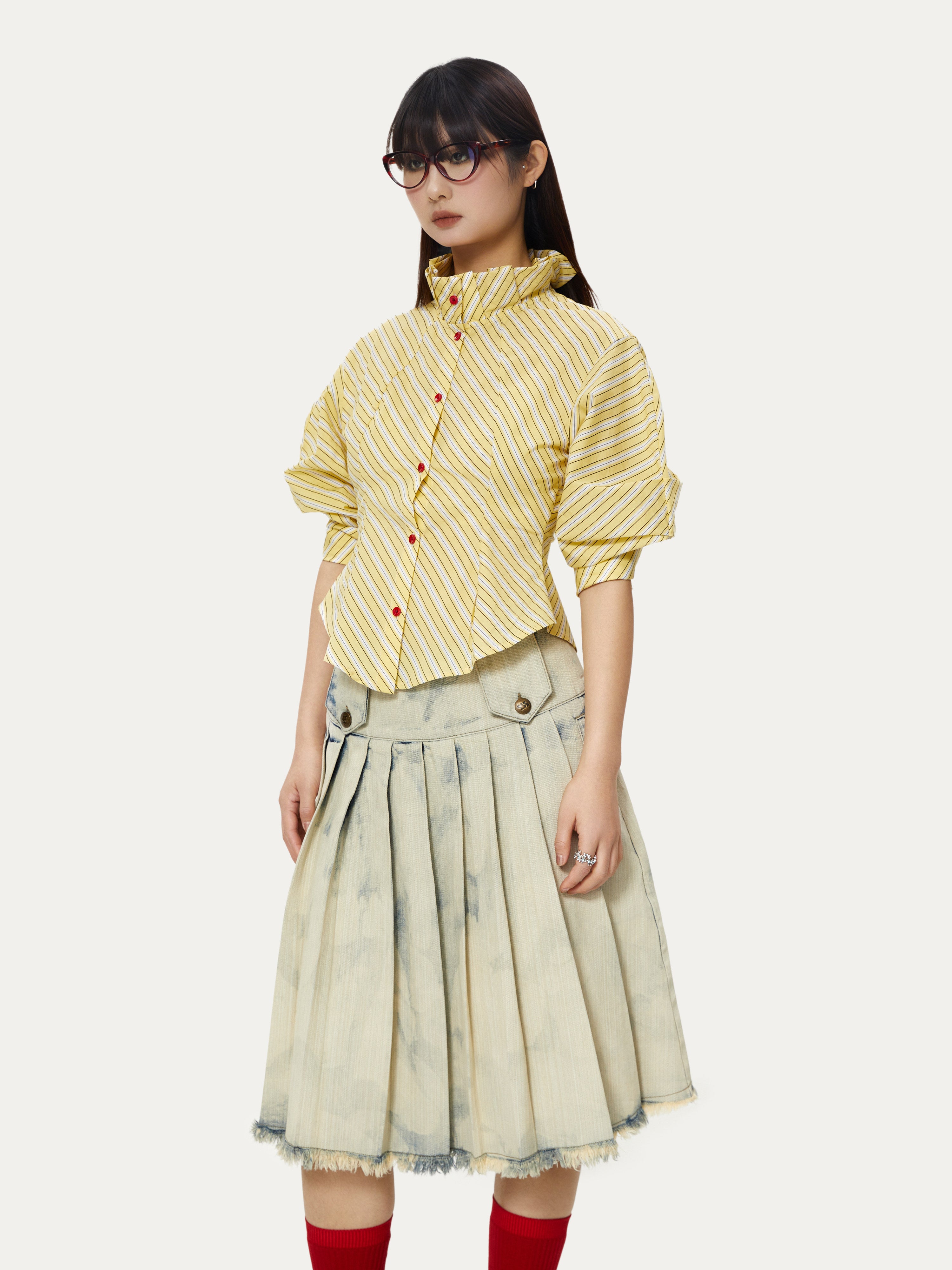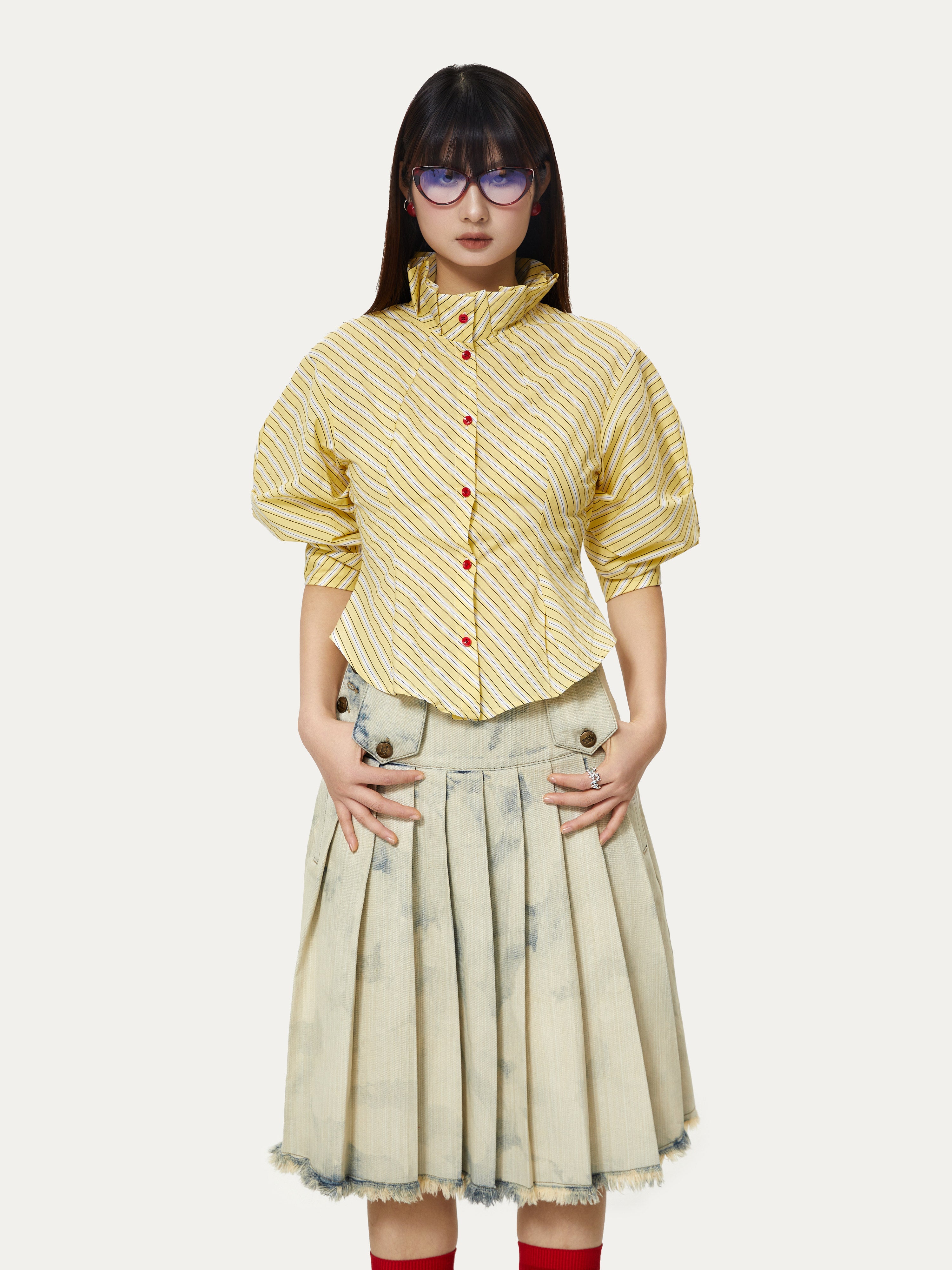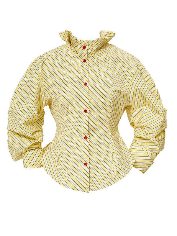 Striped Palace Retro Style Puff Mid-sleeve Shirt - YOSHUYUKI