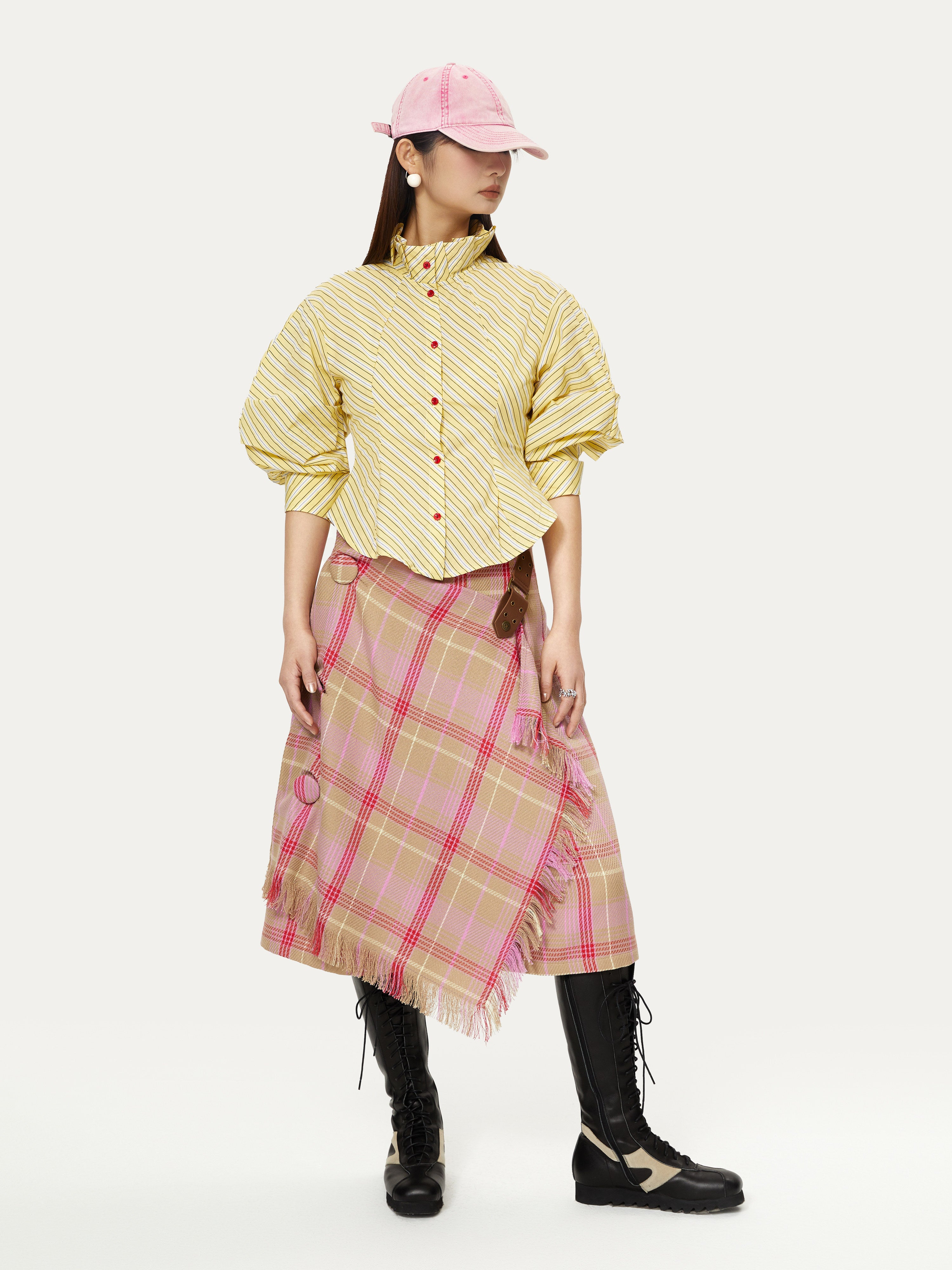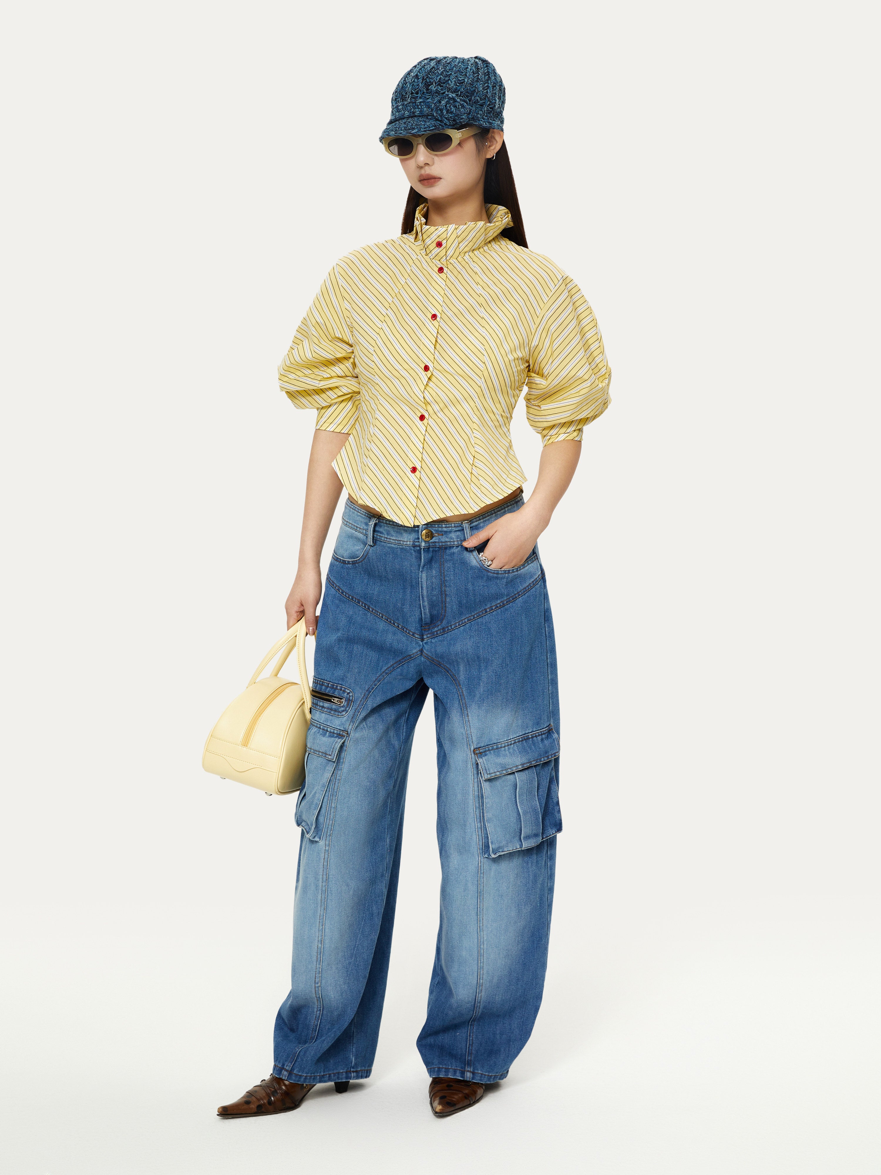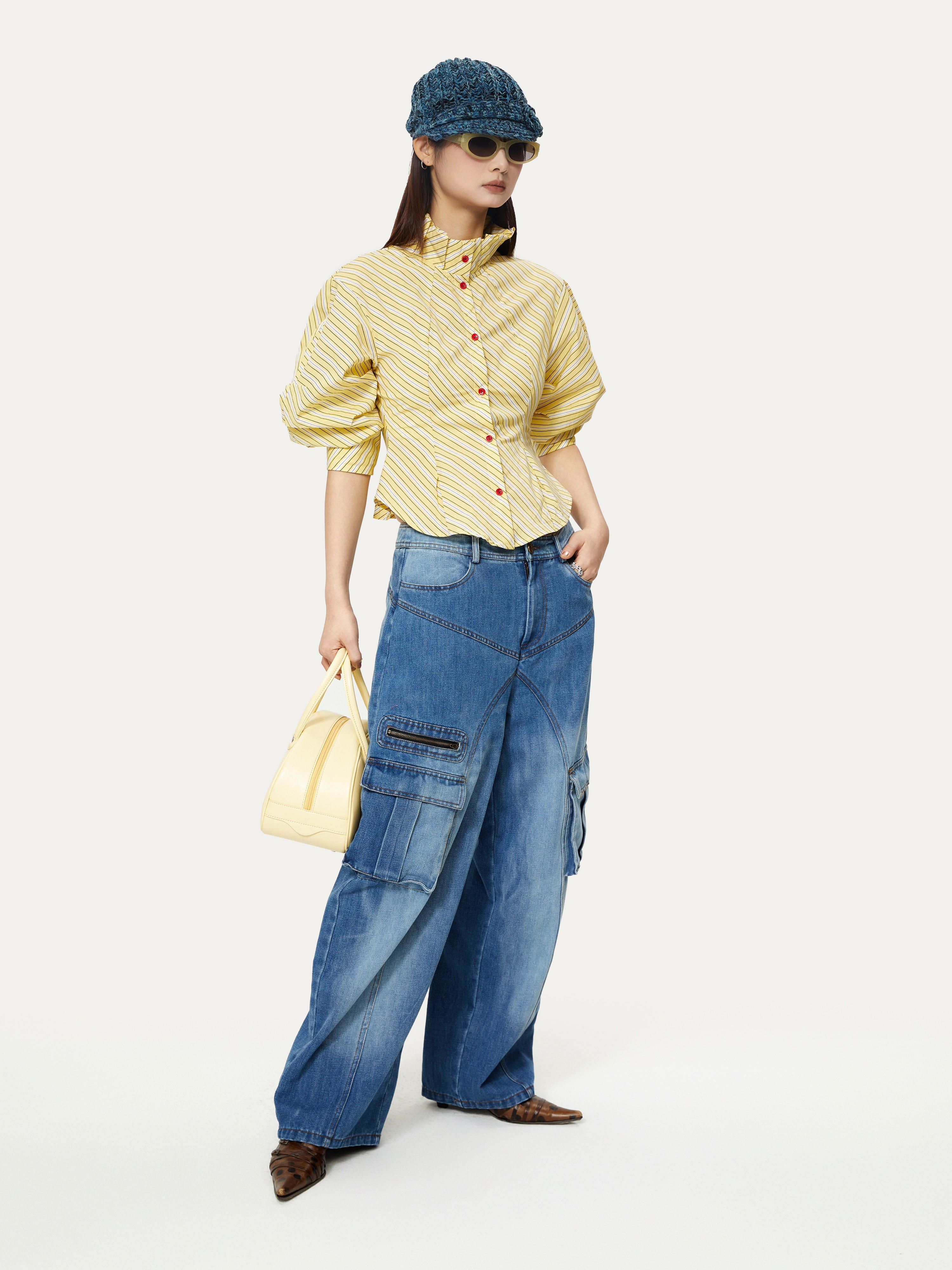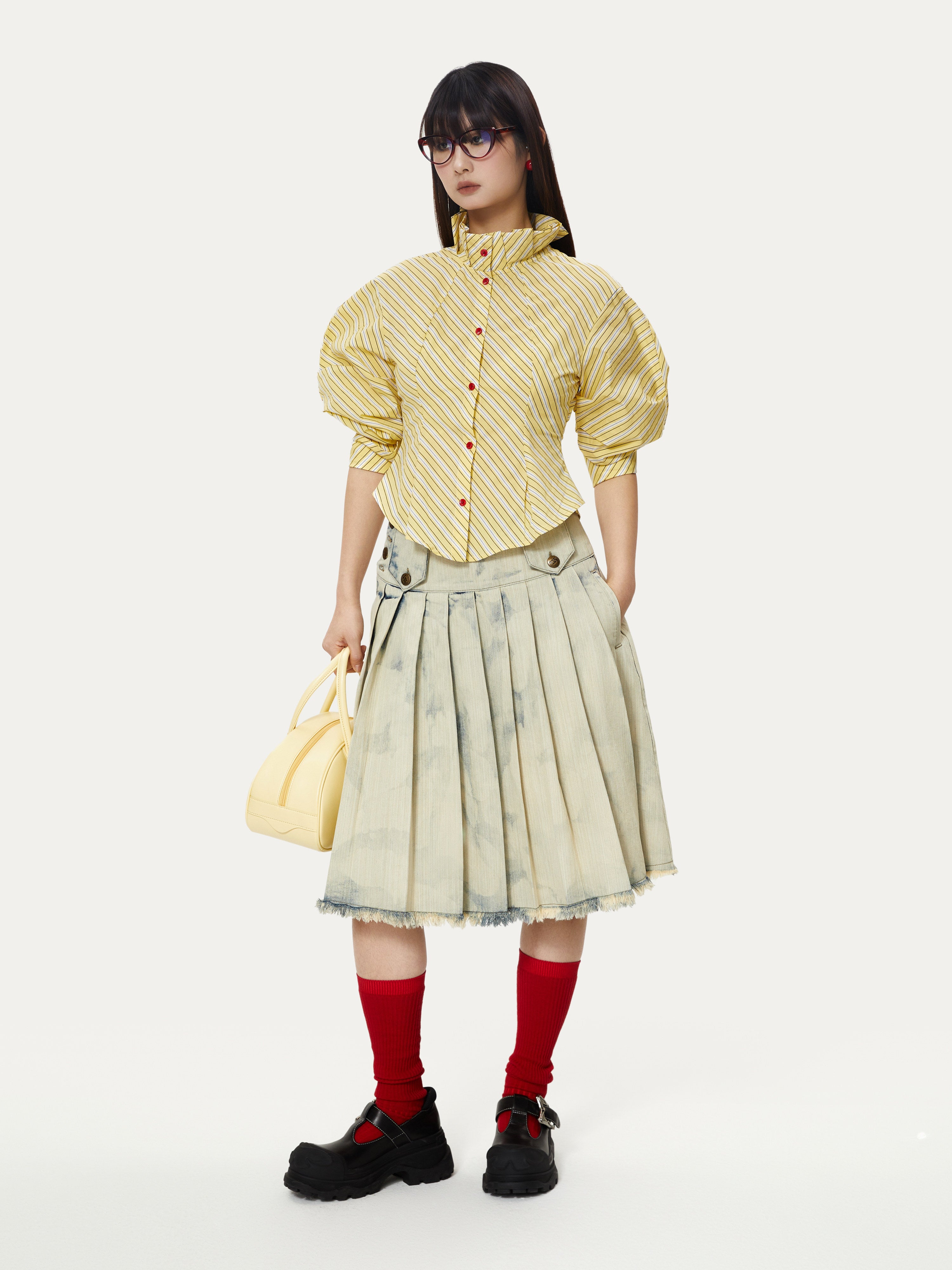 Striped Palace Retro Style Puff Mid-sleeve Shirt - YOSHUYUKI