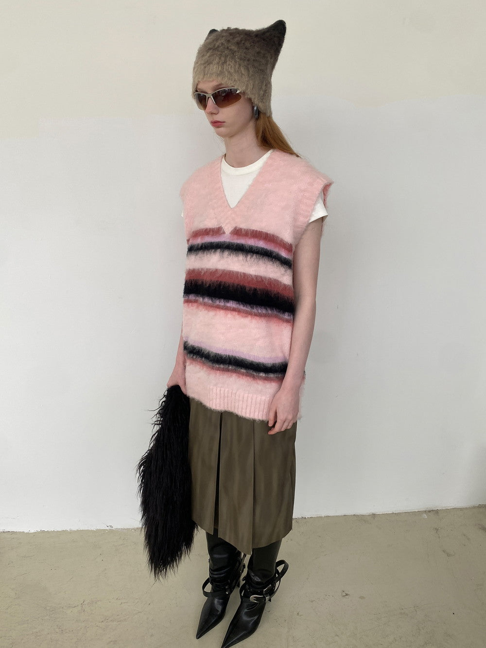 Unisex Border Mohair-Knit Retro V-Neck Fluffily Vest