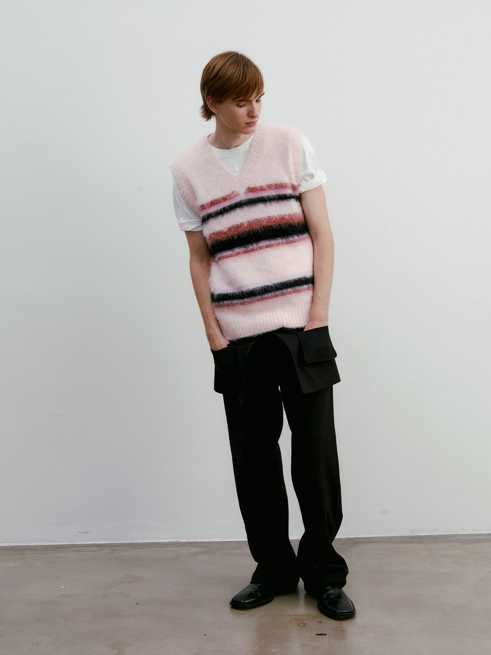 Unisex Border Mohair-Knit Retro V-Neck Fluffily Vest-delivery