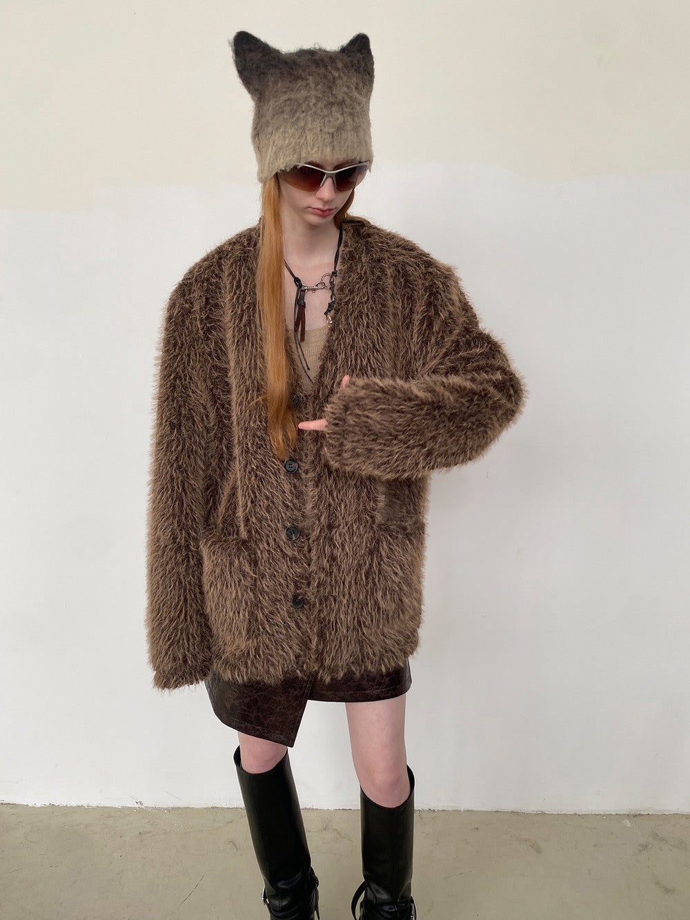 Unisex Fluffily Retro Drop-Shoulder Oversize Fur-Jacket