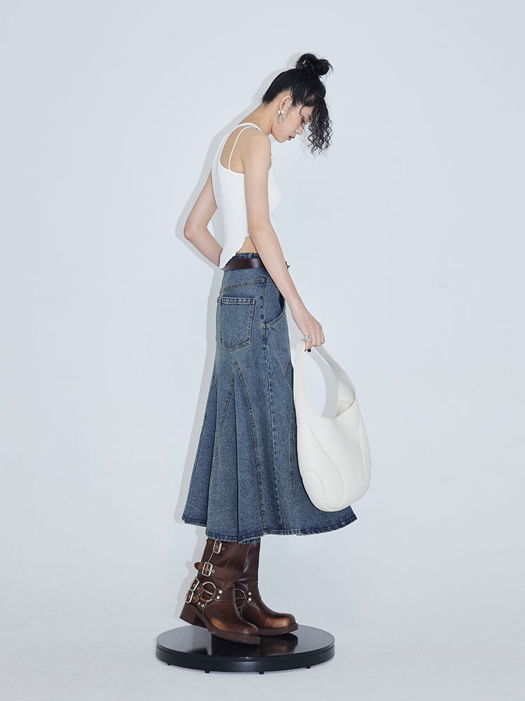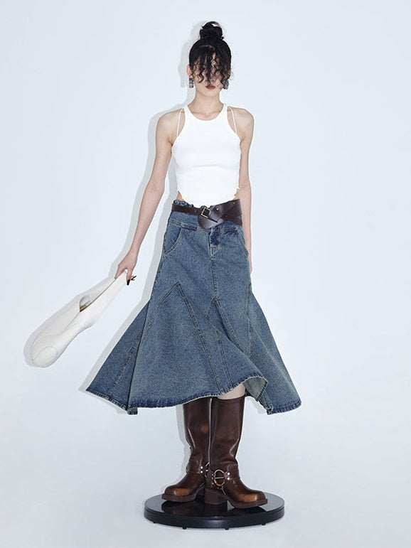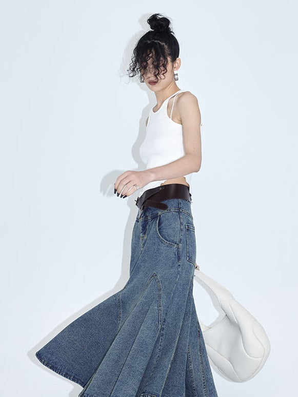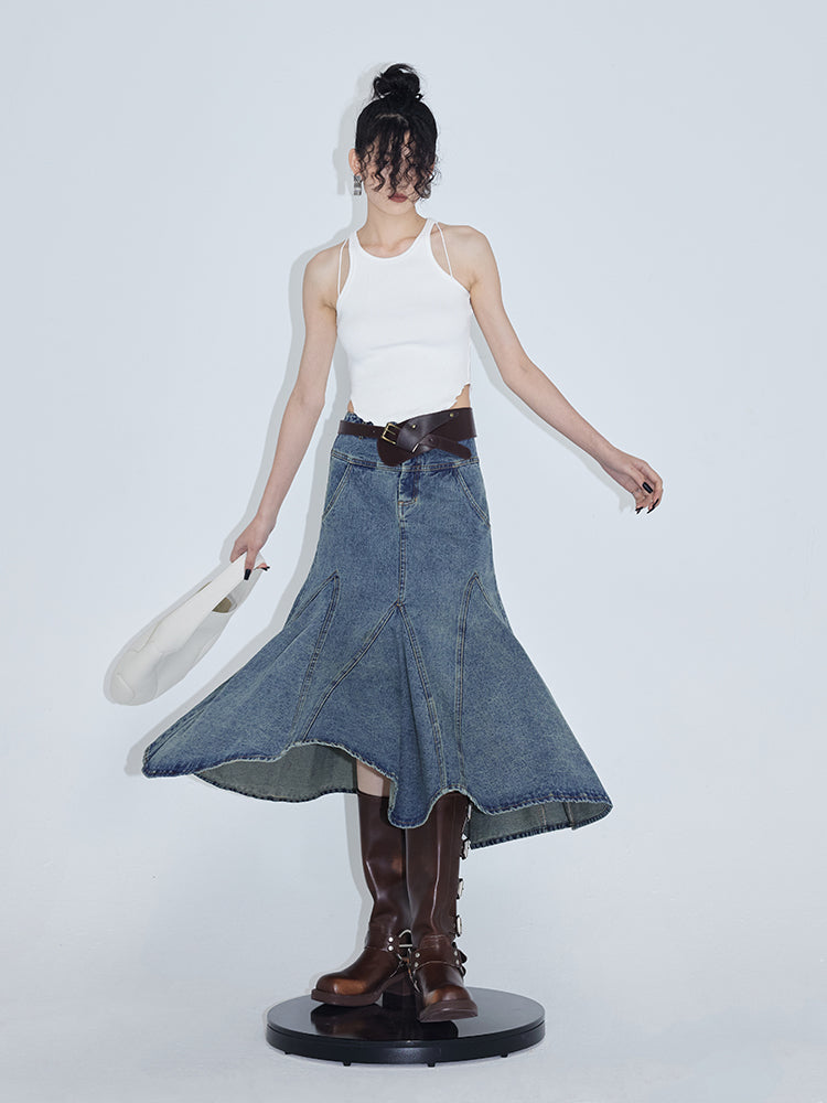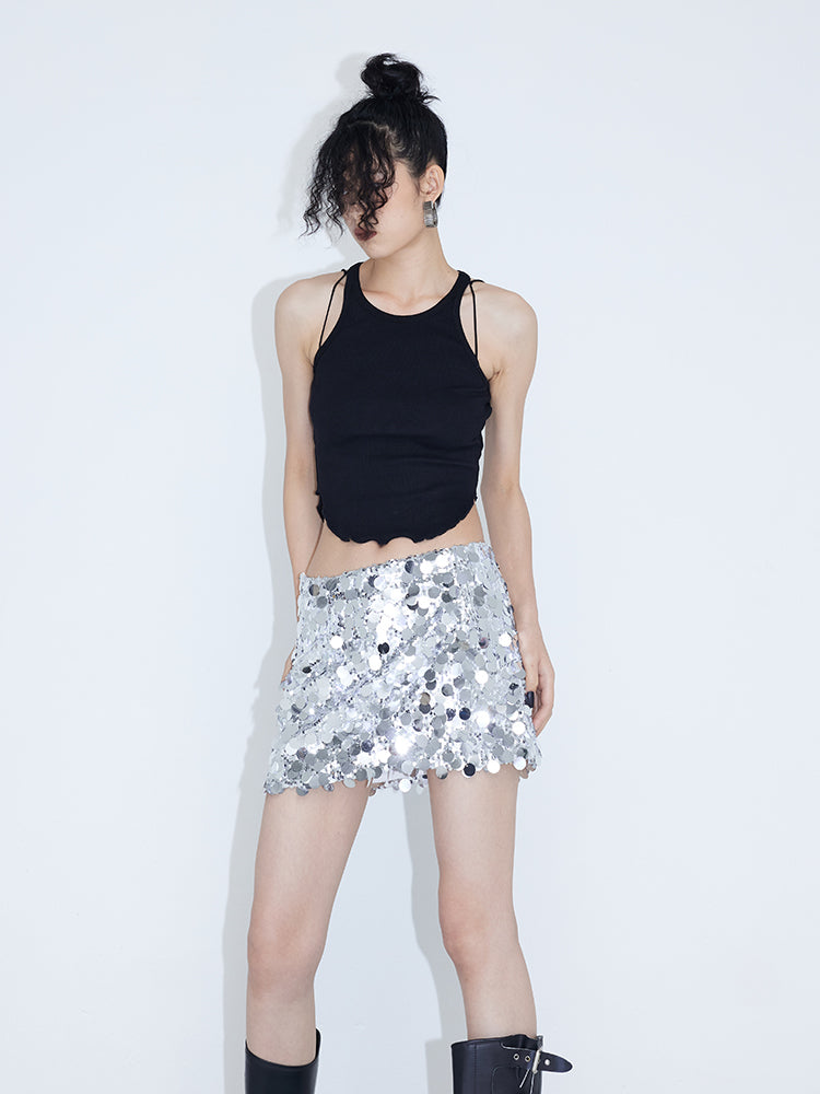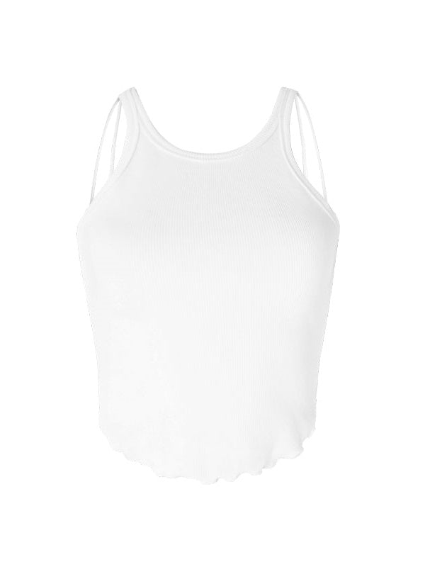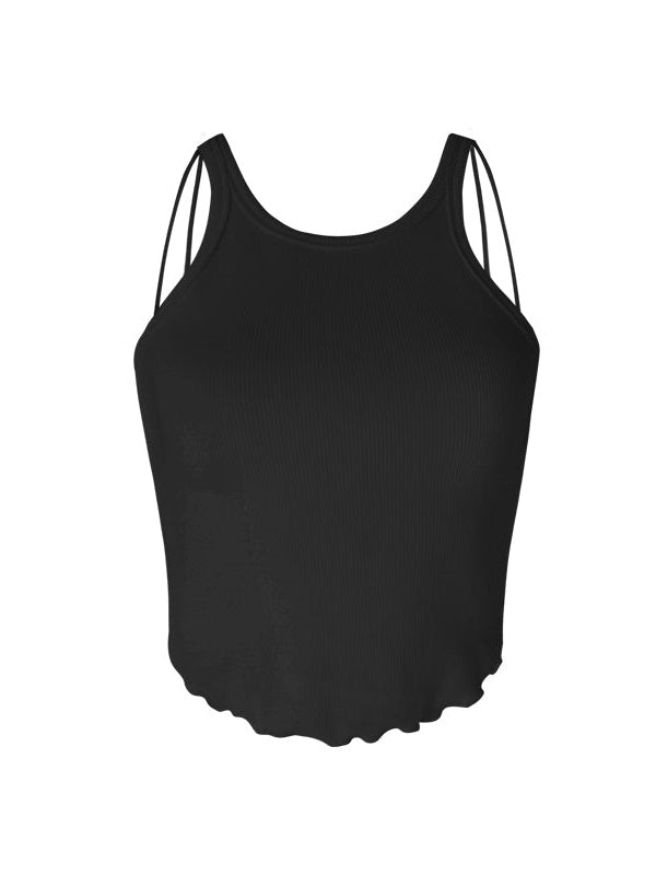 Arc Hem Double Shoulder Straps Slim Sleeveless Top