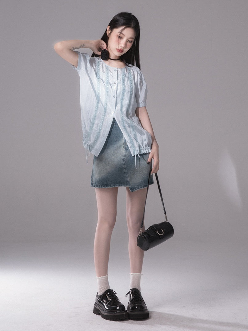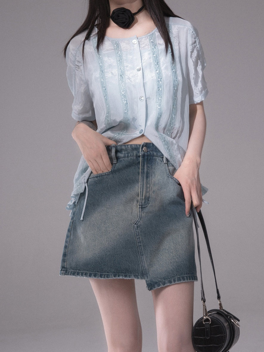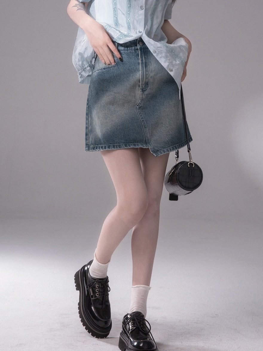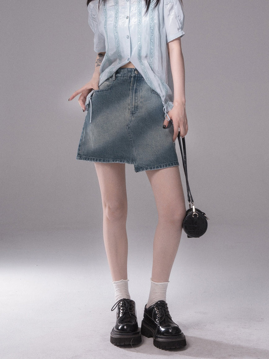 Asymmetry Denim Short Skirt