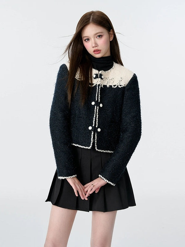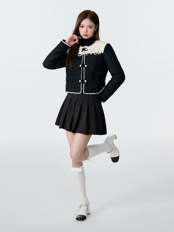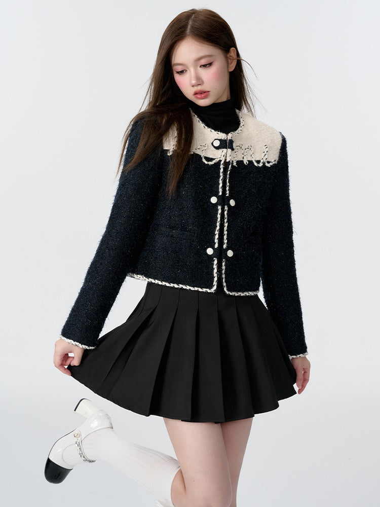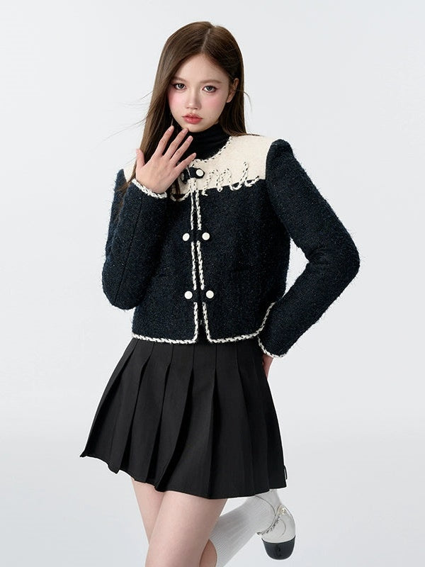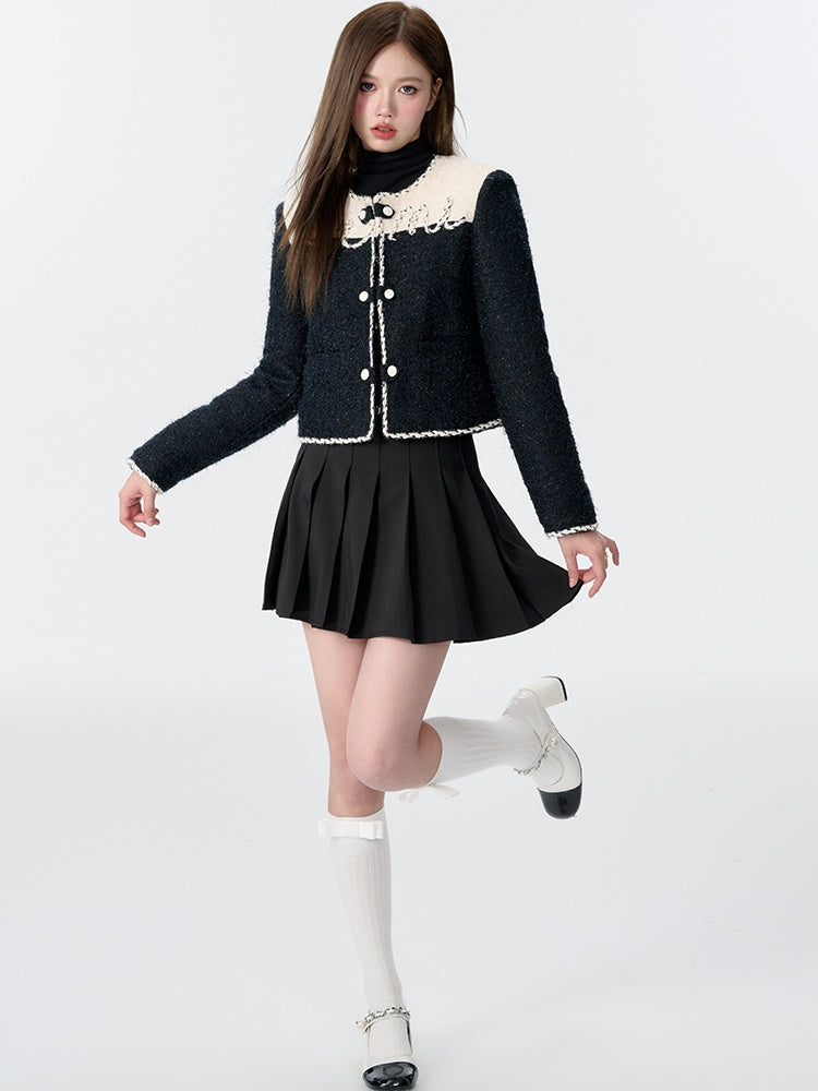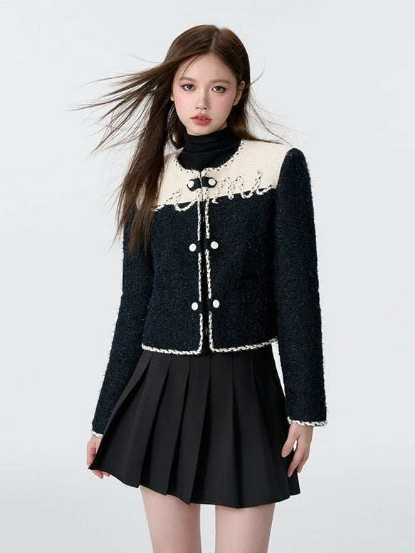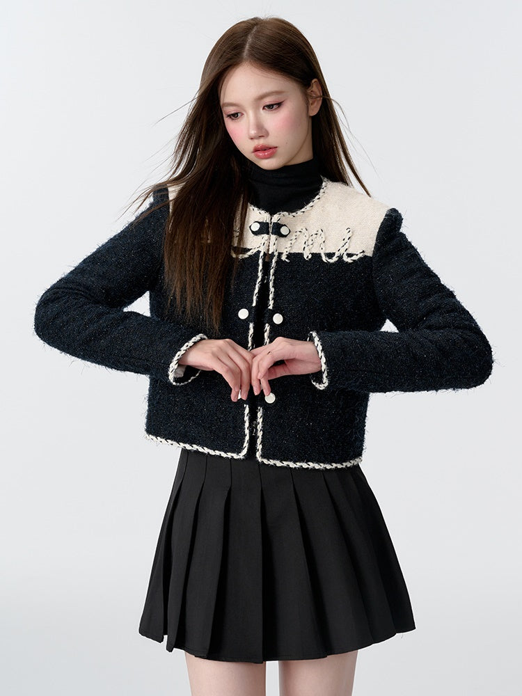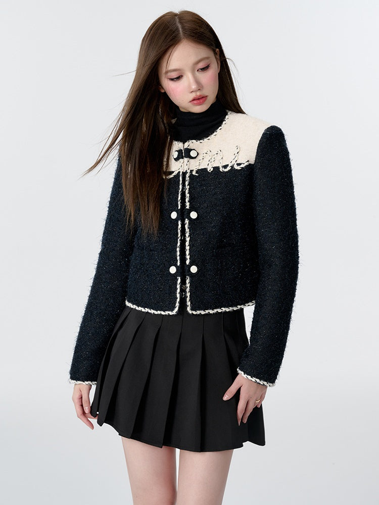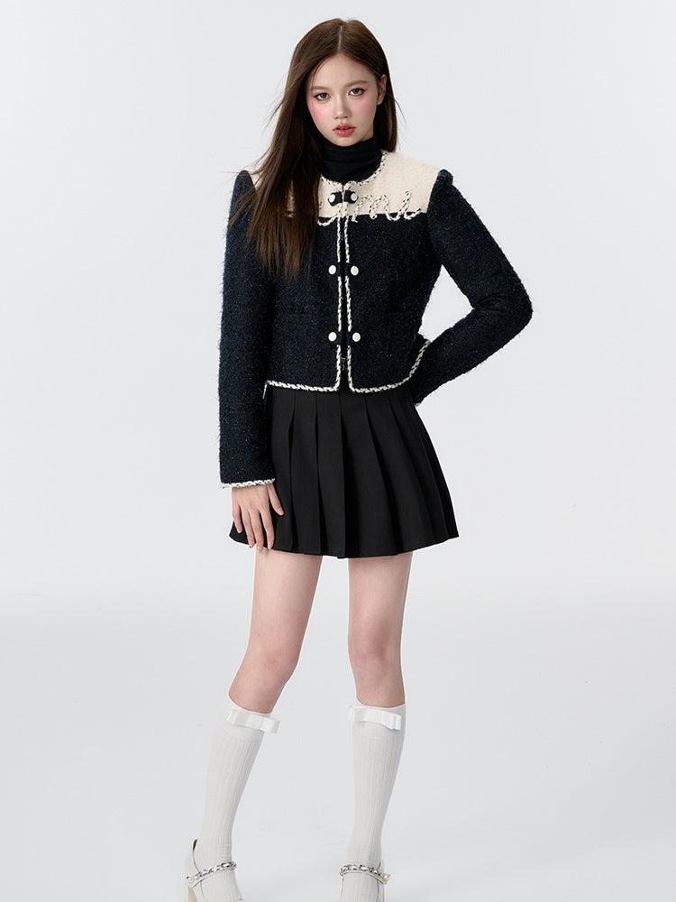 Bicolor Embroidered Short Tweed Quilted Jacket