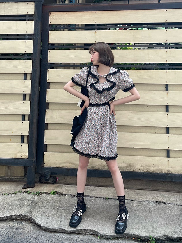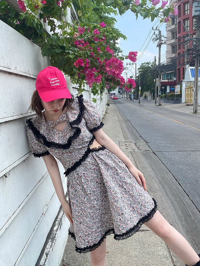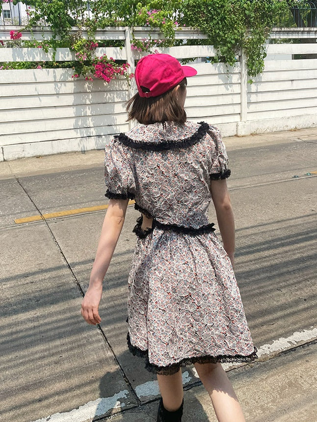 Black Lace Hollow Out Waist Floral Embroidery One-piece