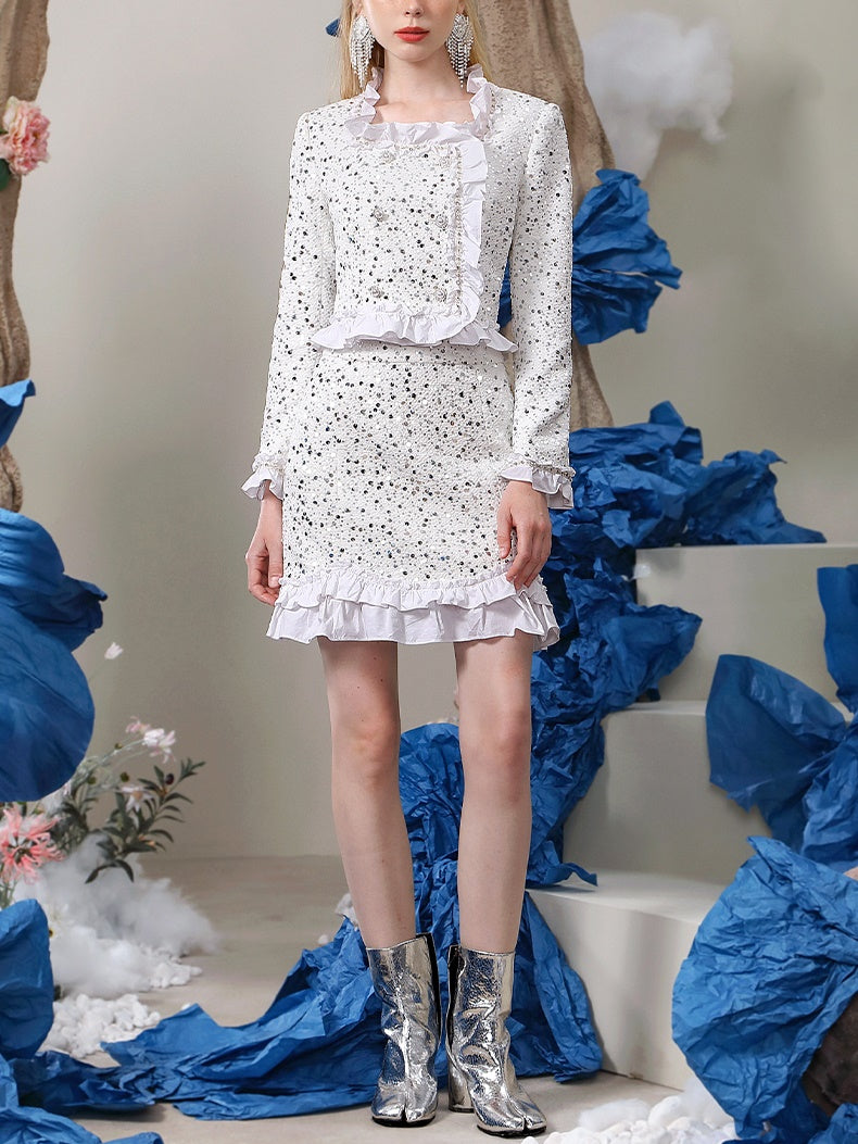 Blouse&Mini-Skirt Frill Bijou Nichi Suit Rhinestone Set-Up