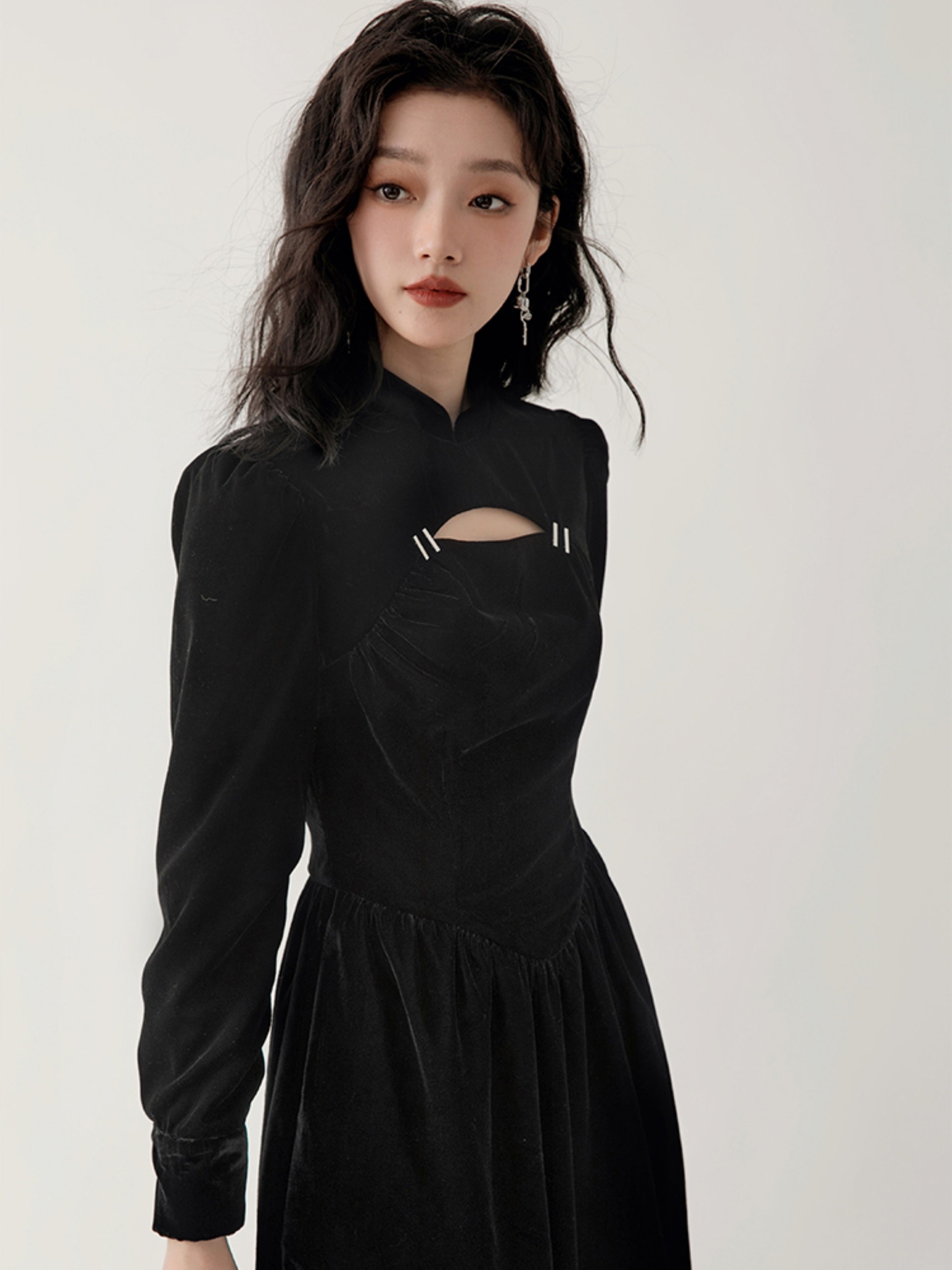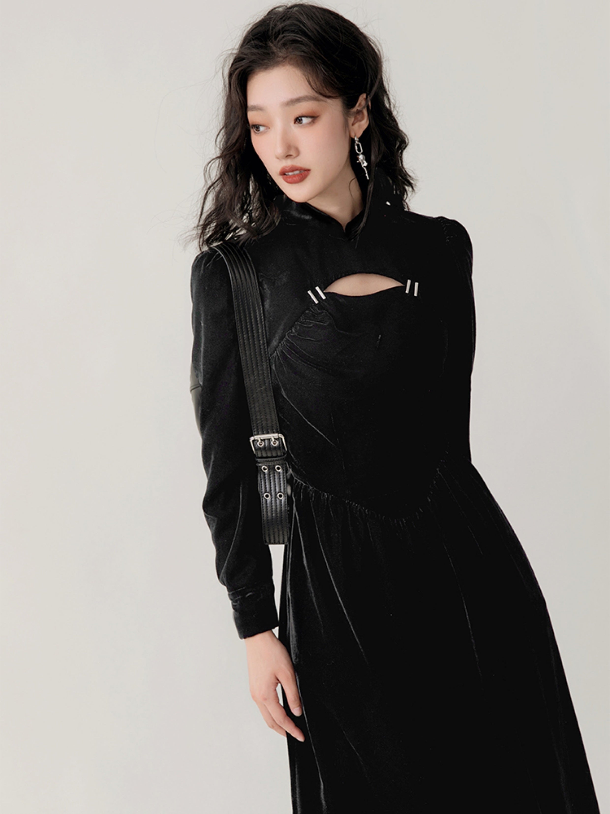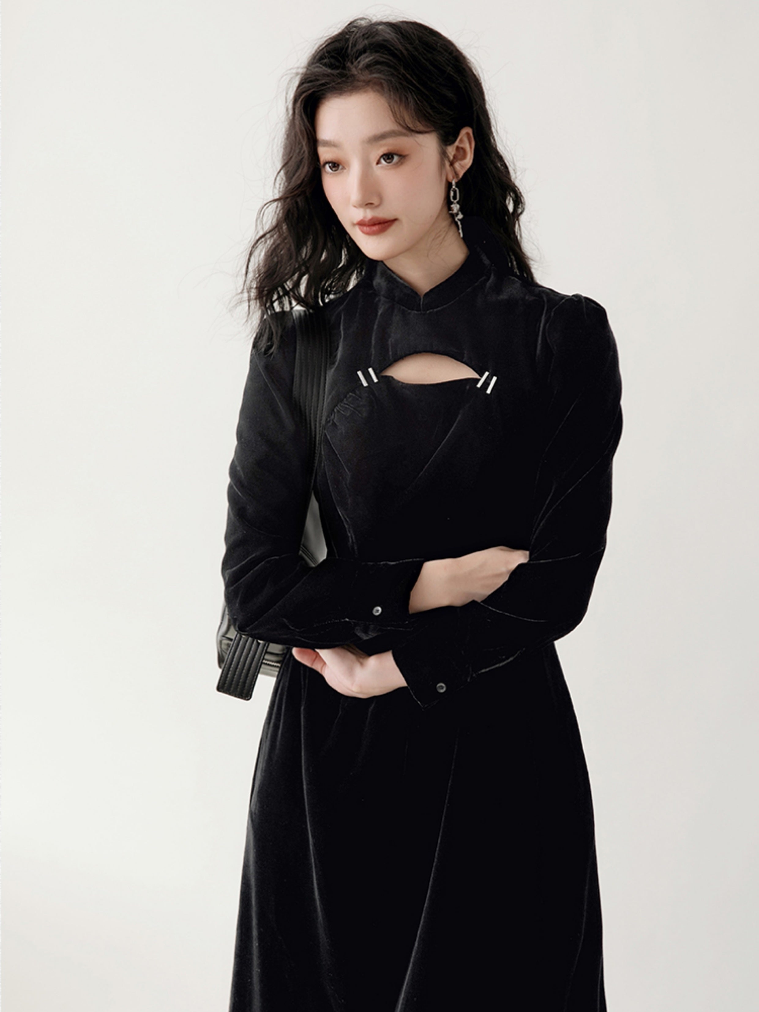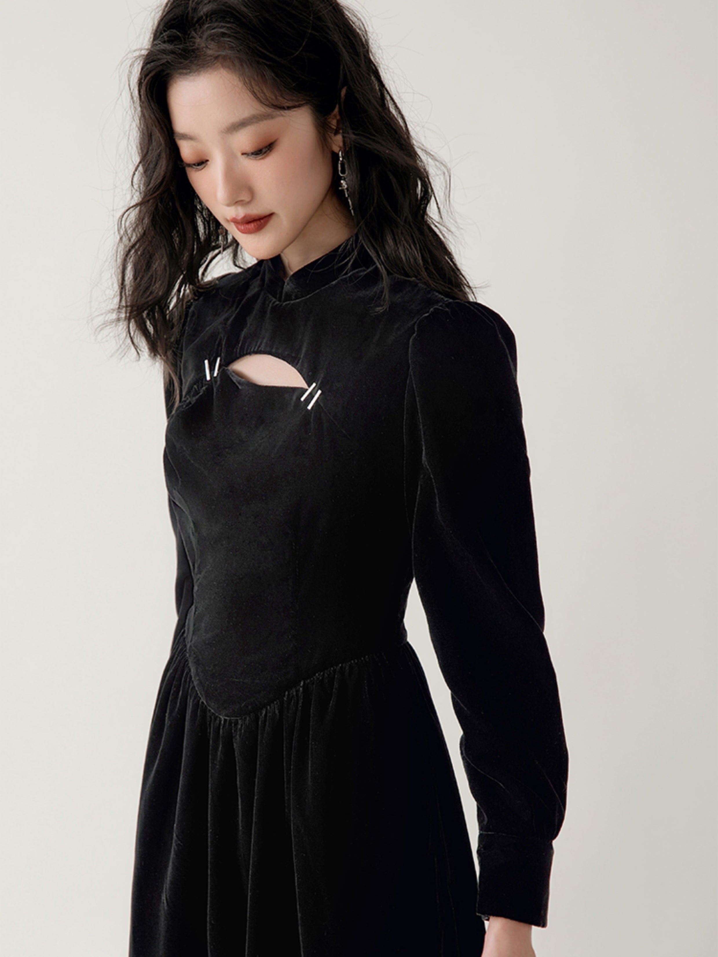 Chinese Style Velvet Hollow Design Dress