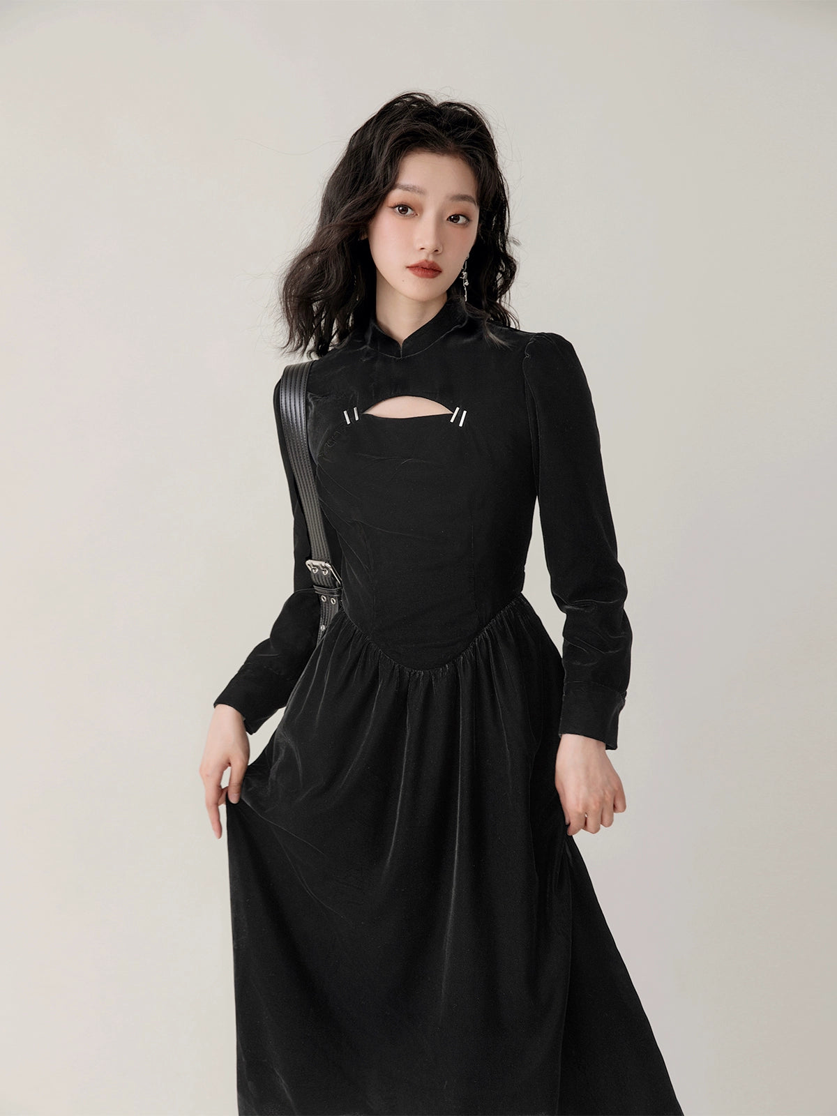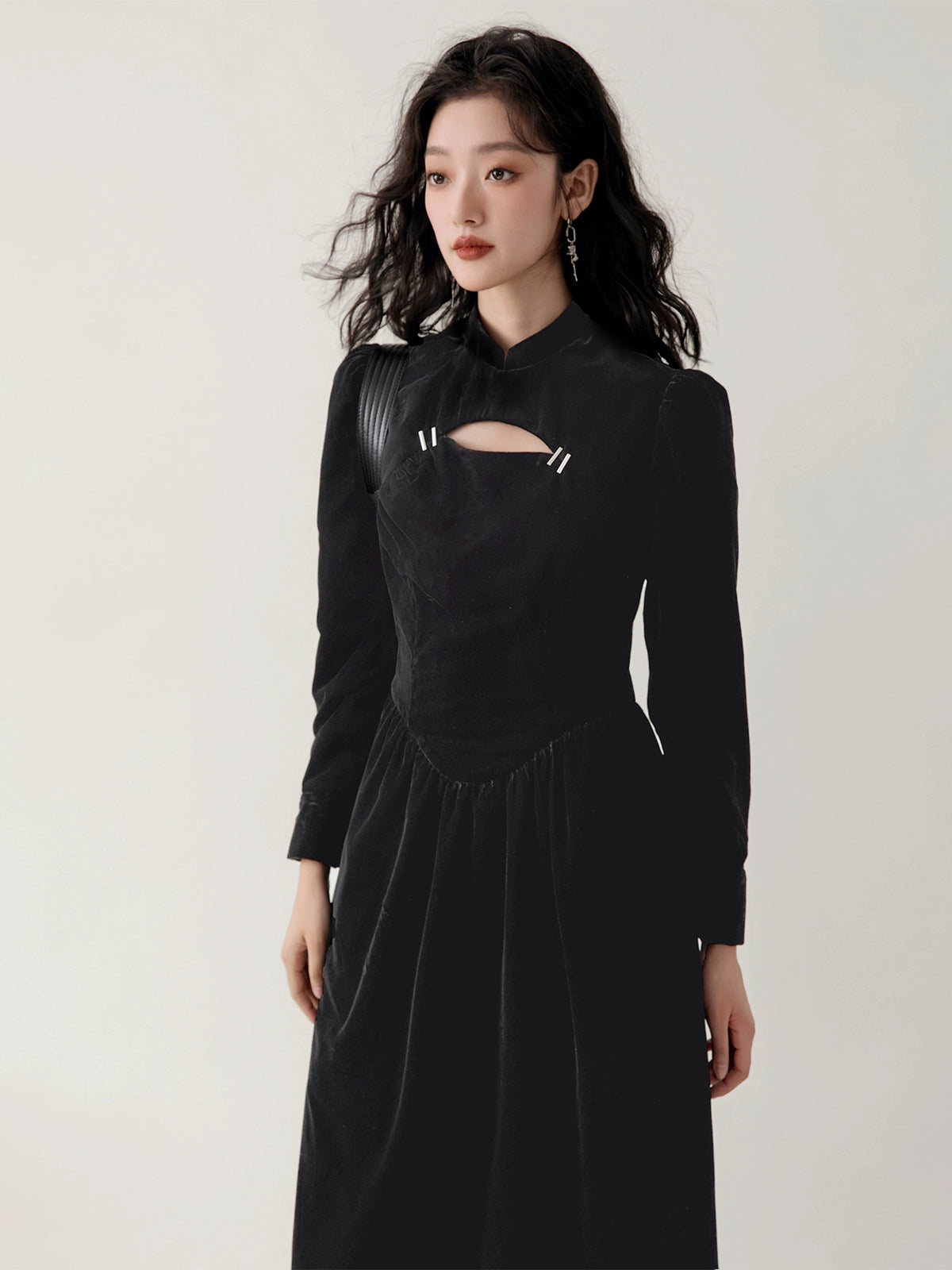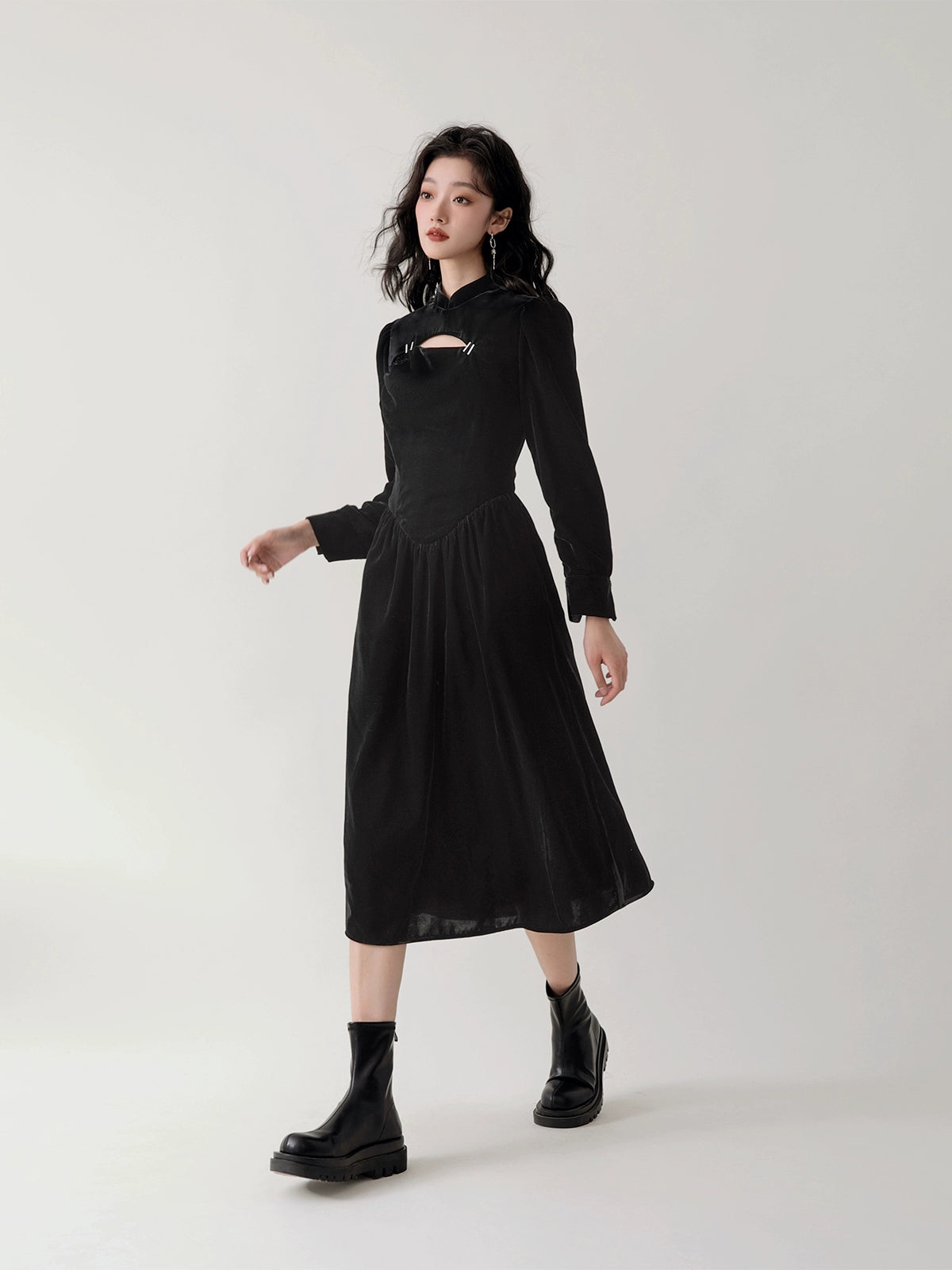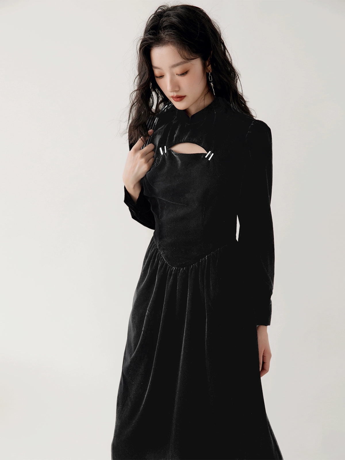 Chinese Style Velvet Hollow Design Dress