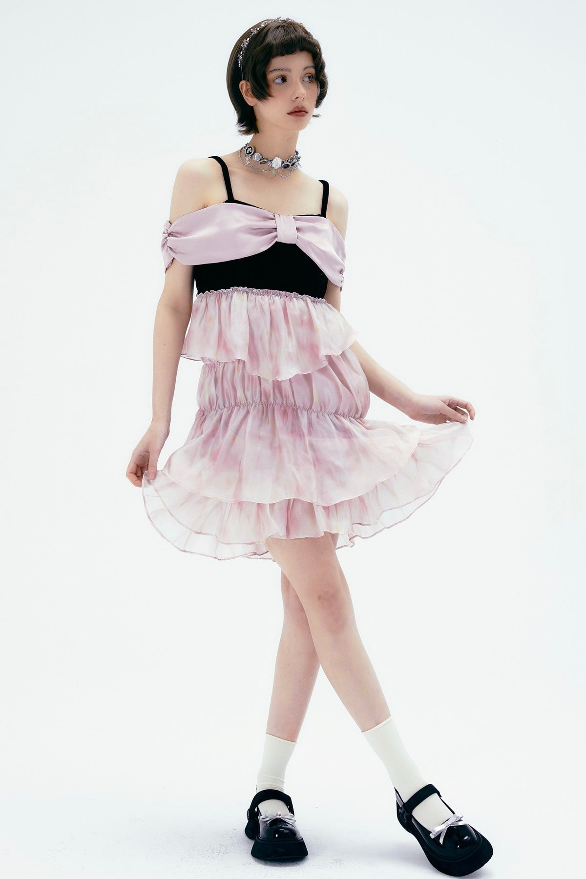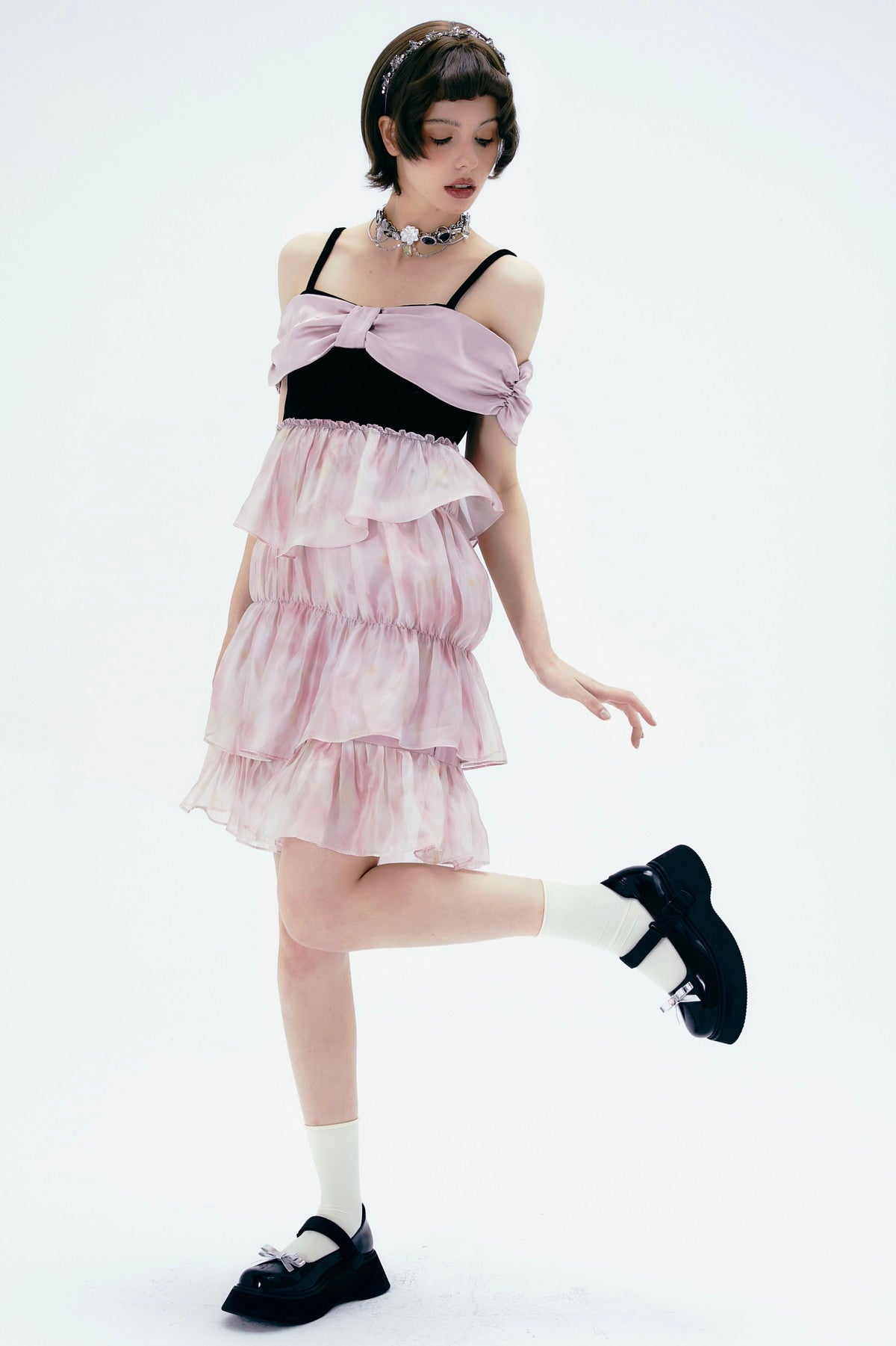 Ciffon Ribbon Tiy-Die Cake Tiered One-Piece