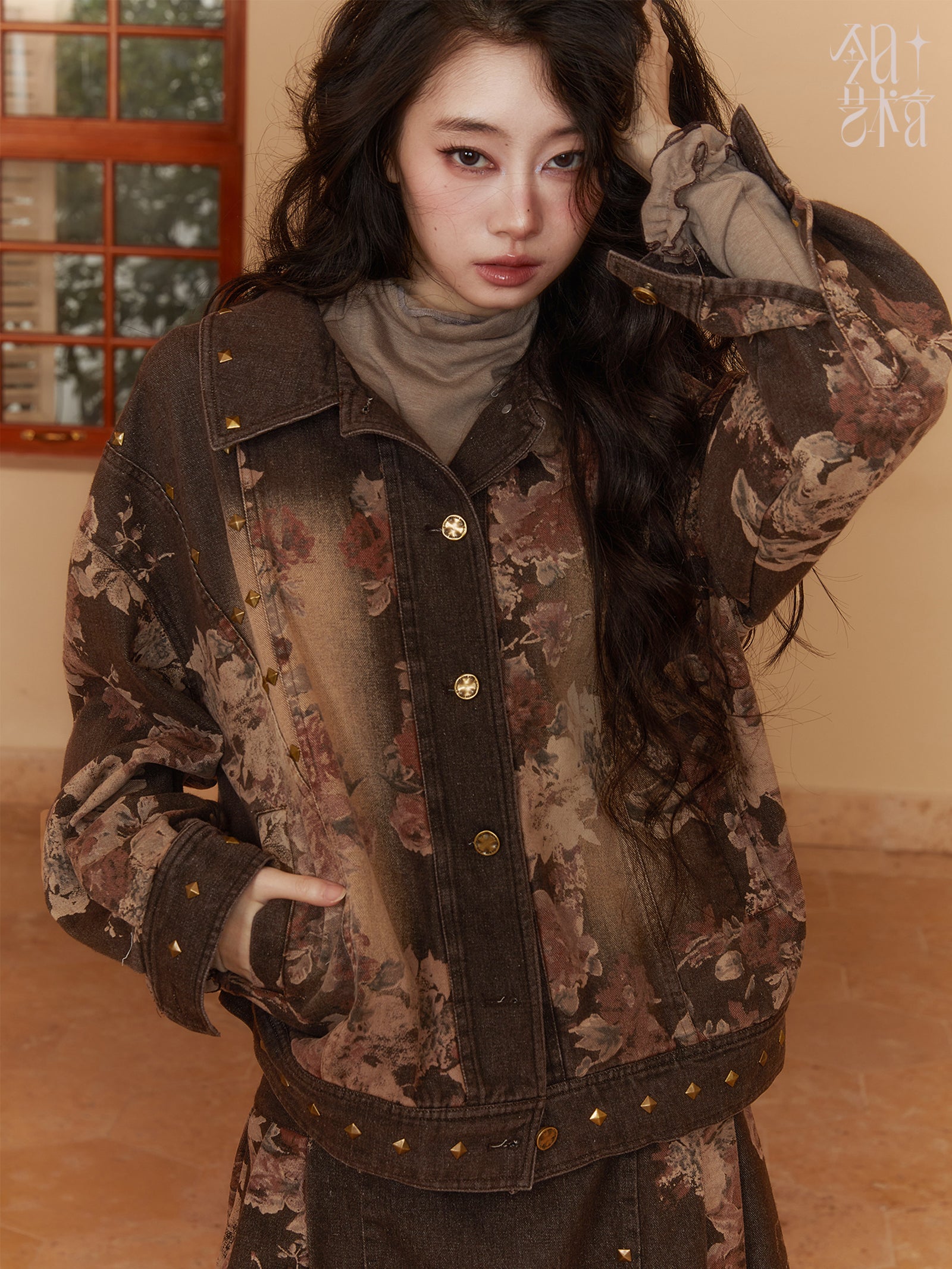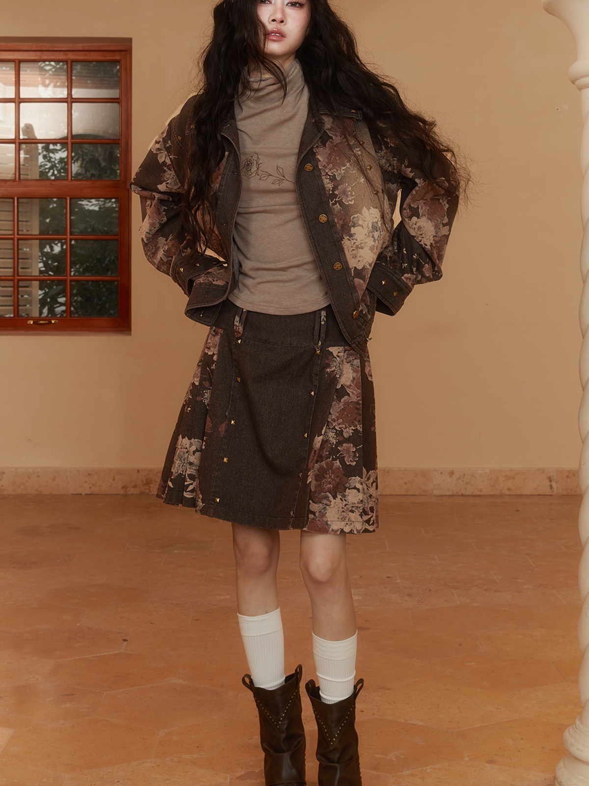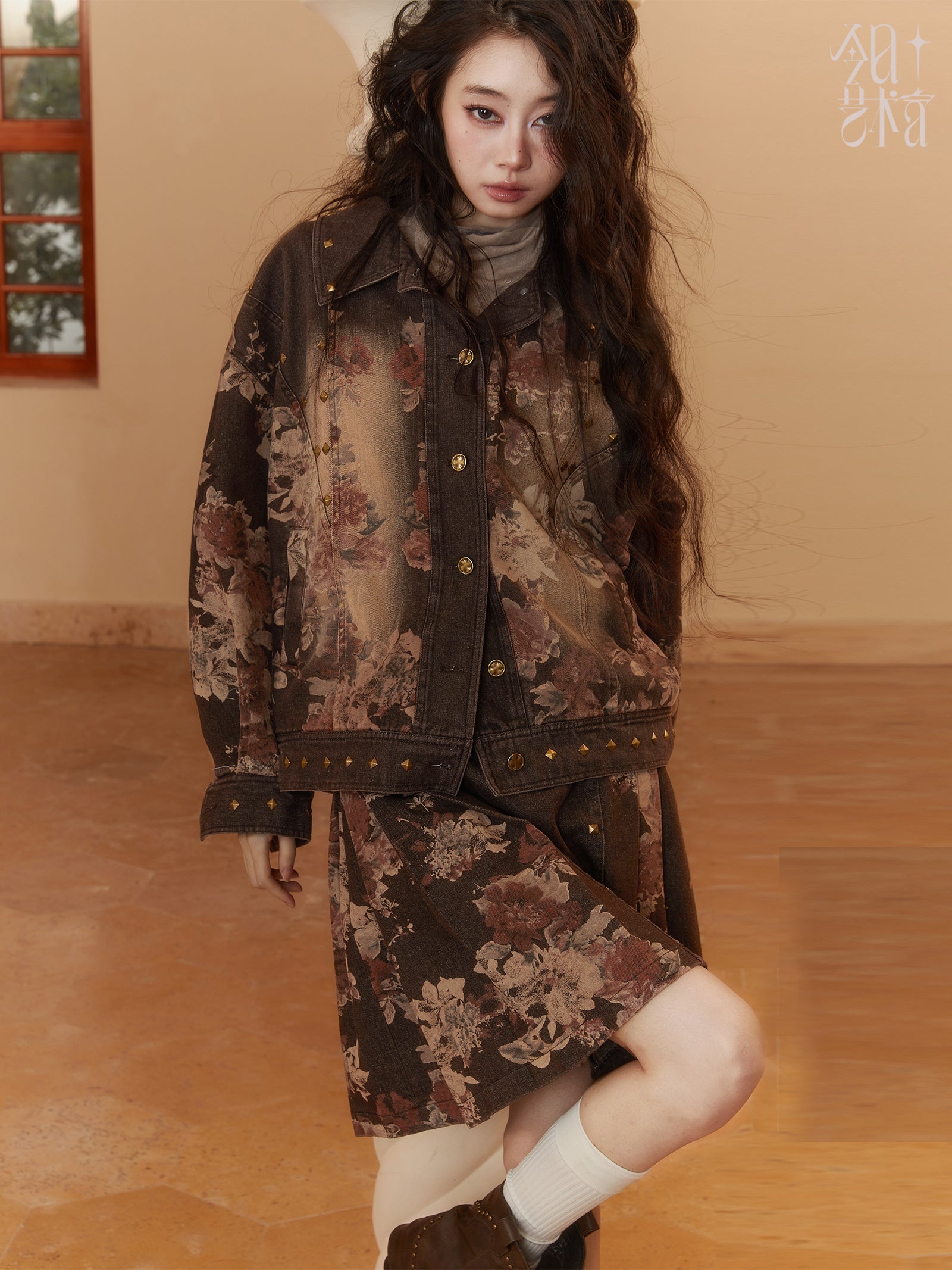 Denim Dlower Retro Vintage Jacket&Mini-Skirt