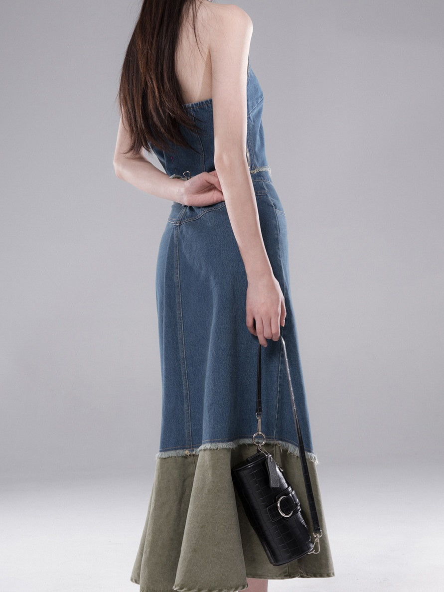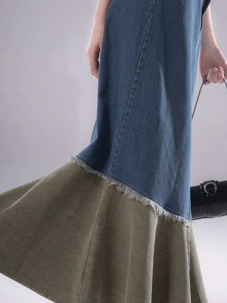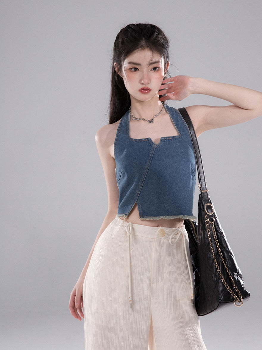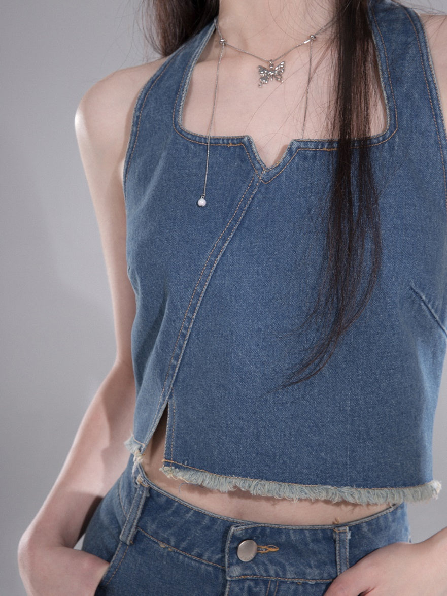 Denim Halter Neck Vest & Fishtail Skirt Set-up