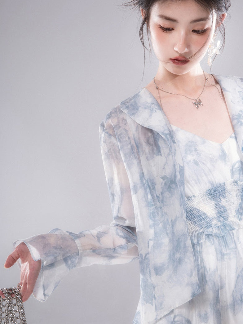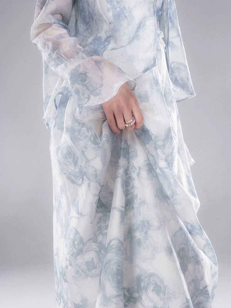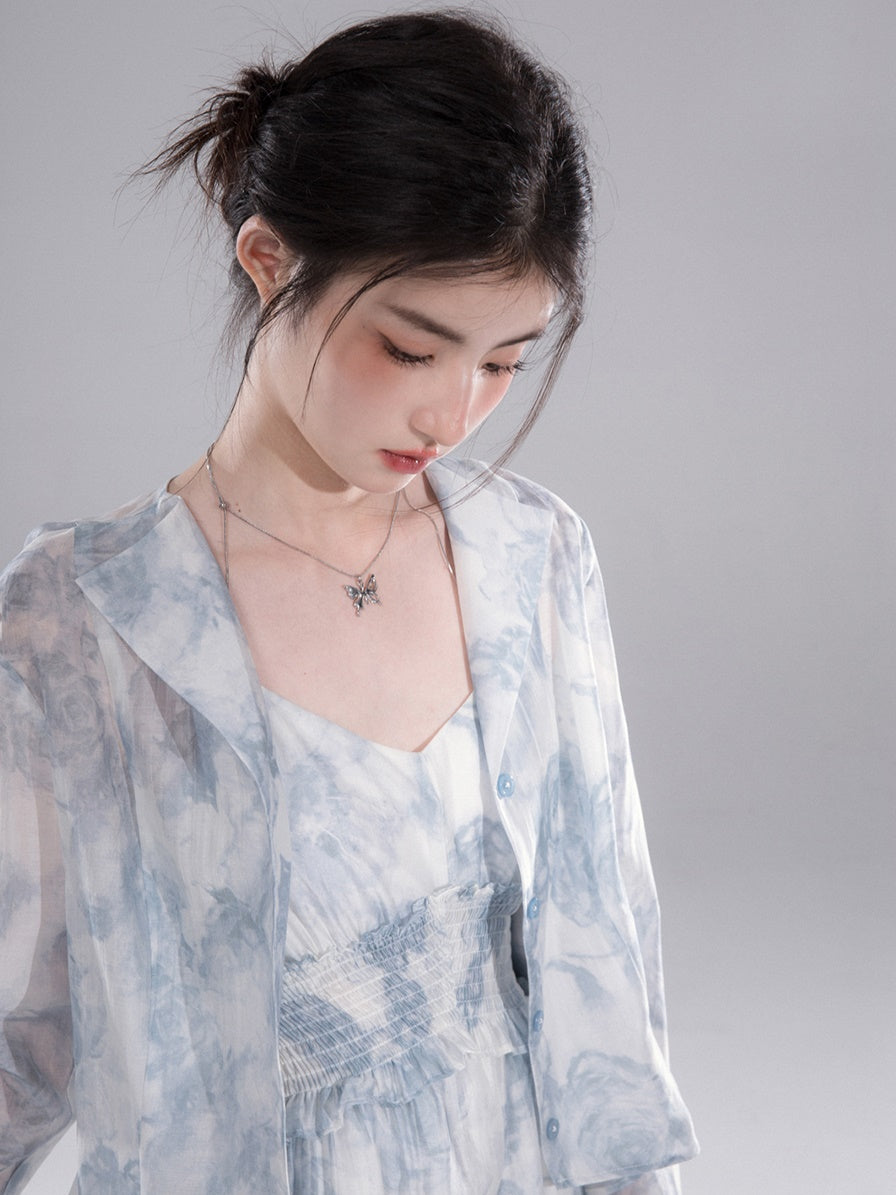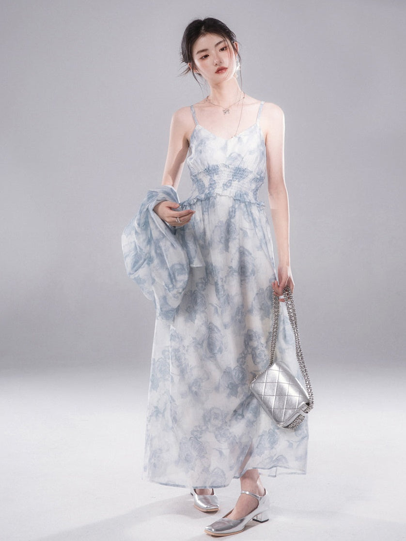 Floral Printed Shirt & Suspender Long One-piece Set-up
