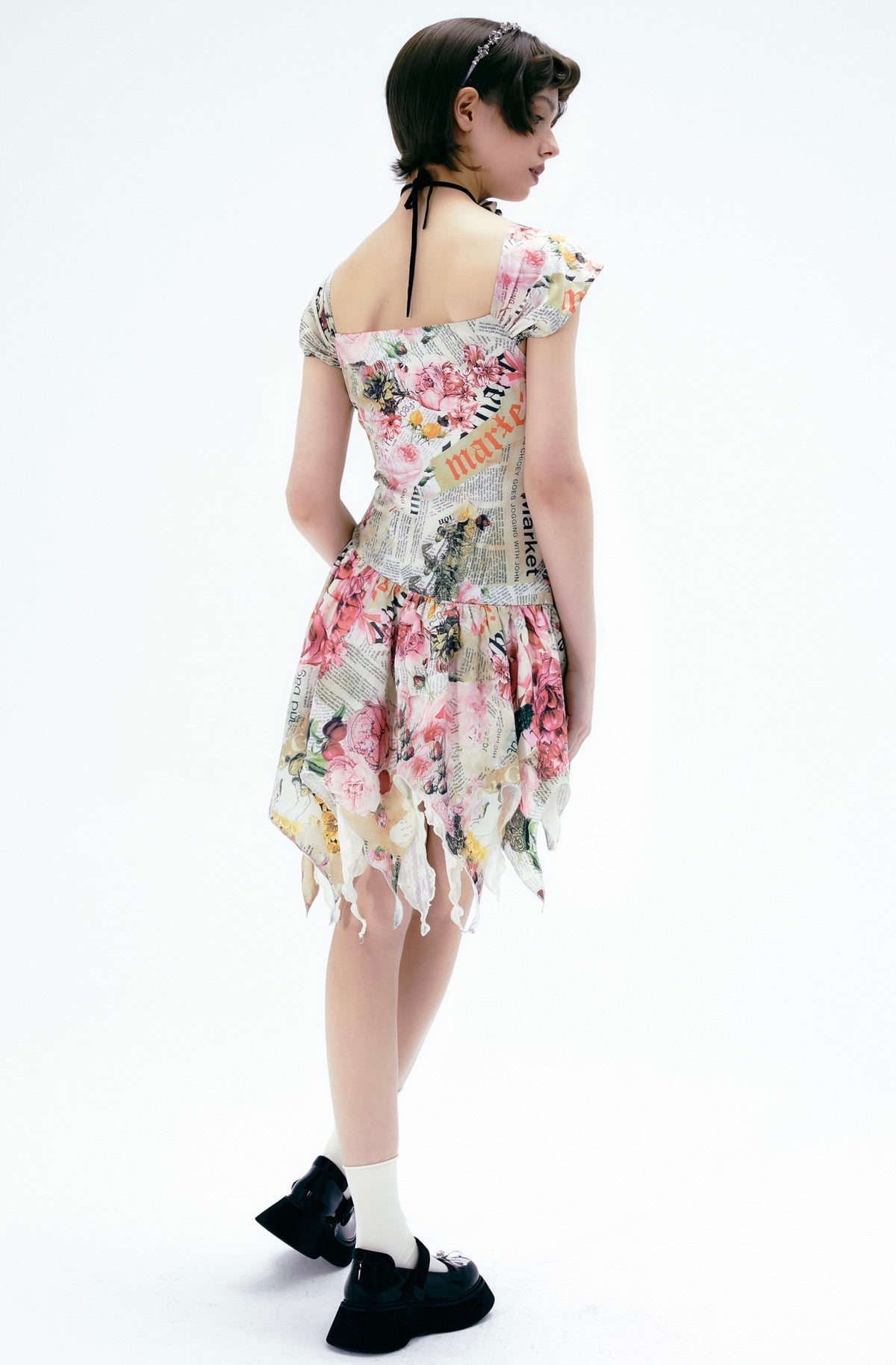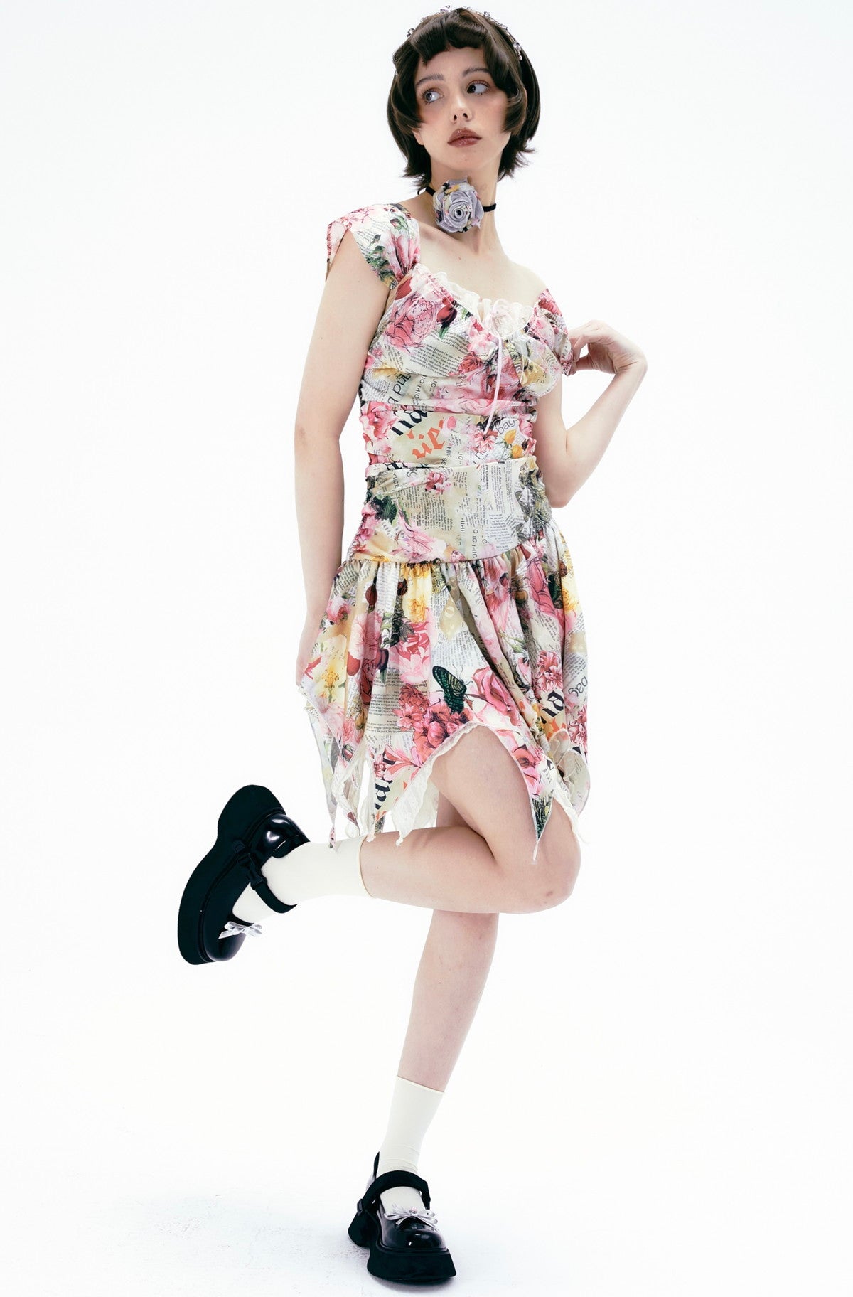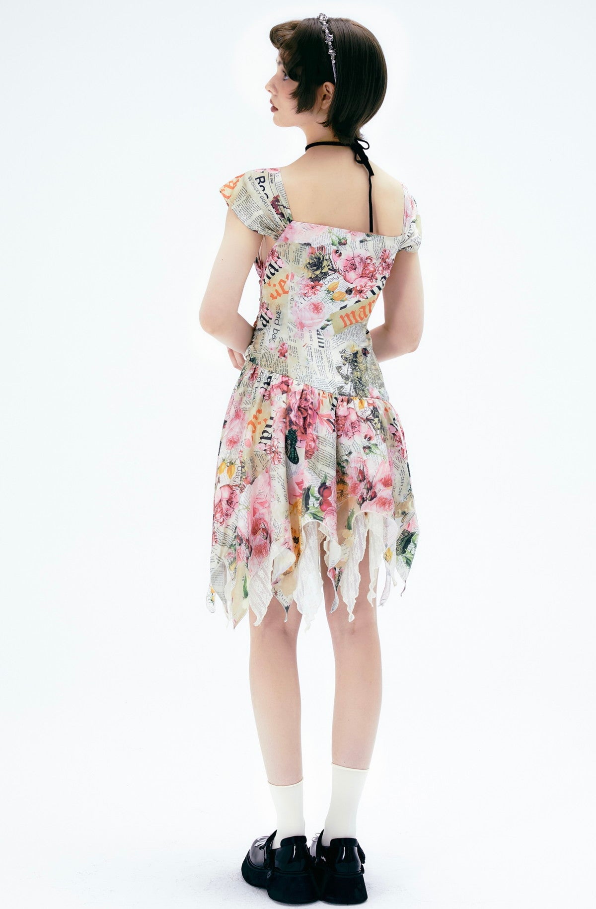 Flower Gorgeous Asymmetry Newspaper One-Piece