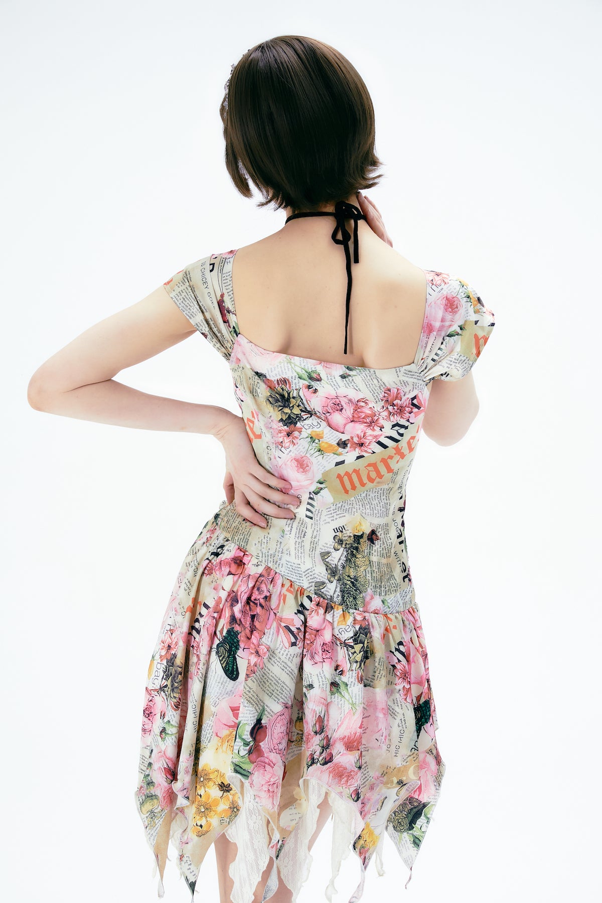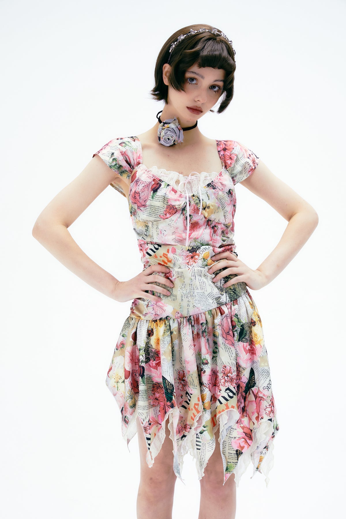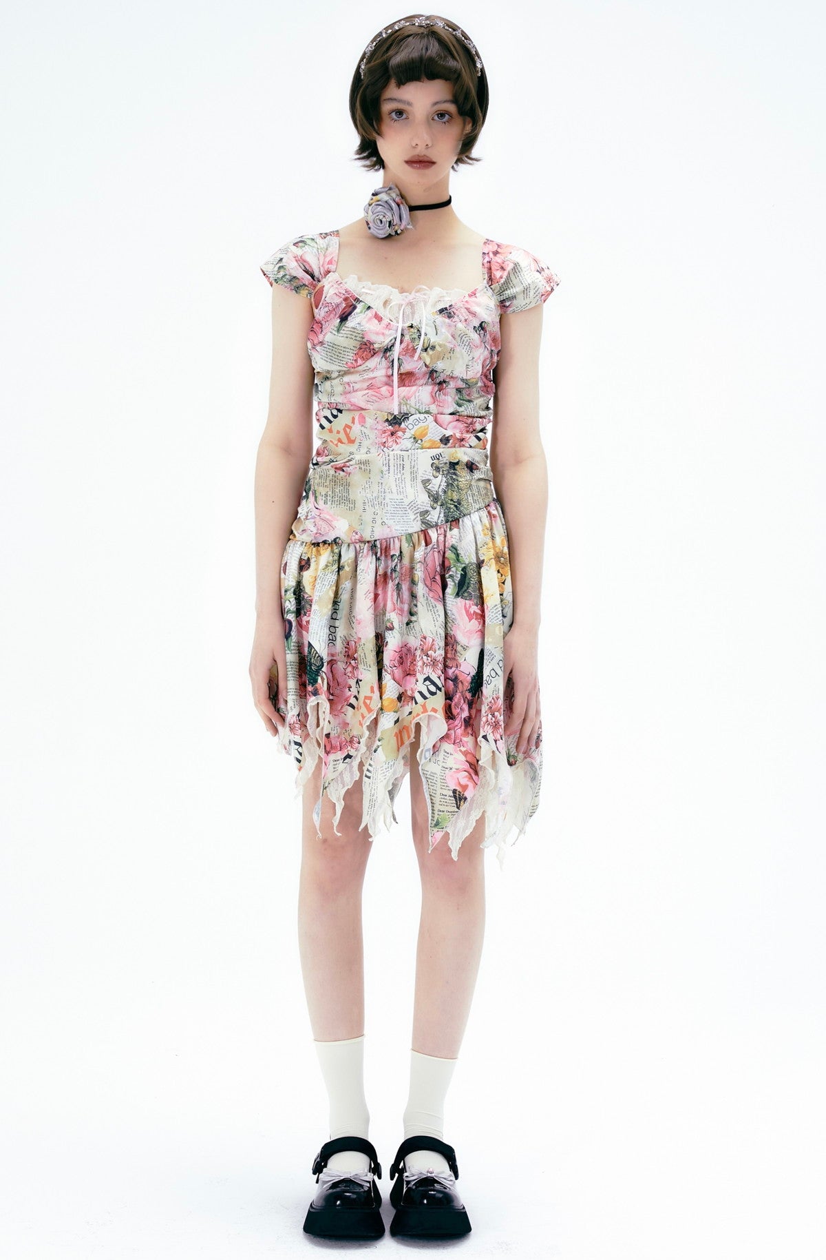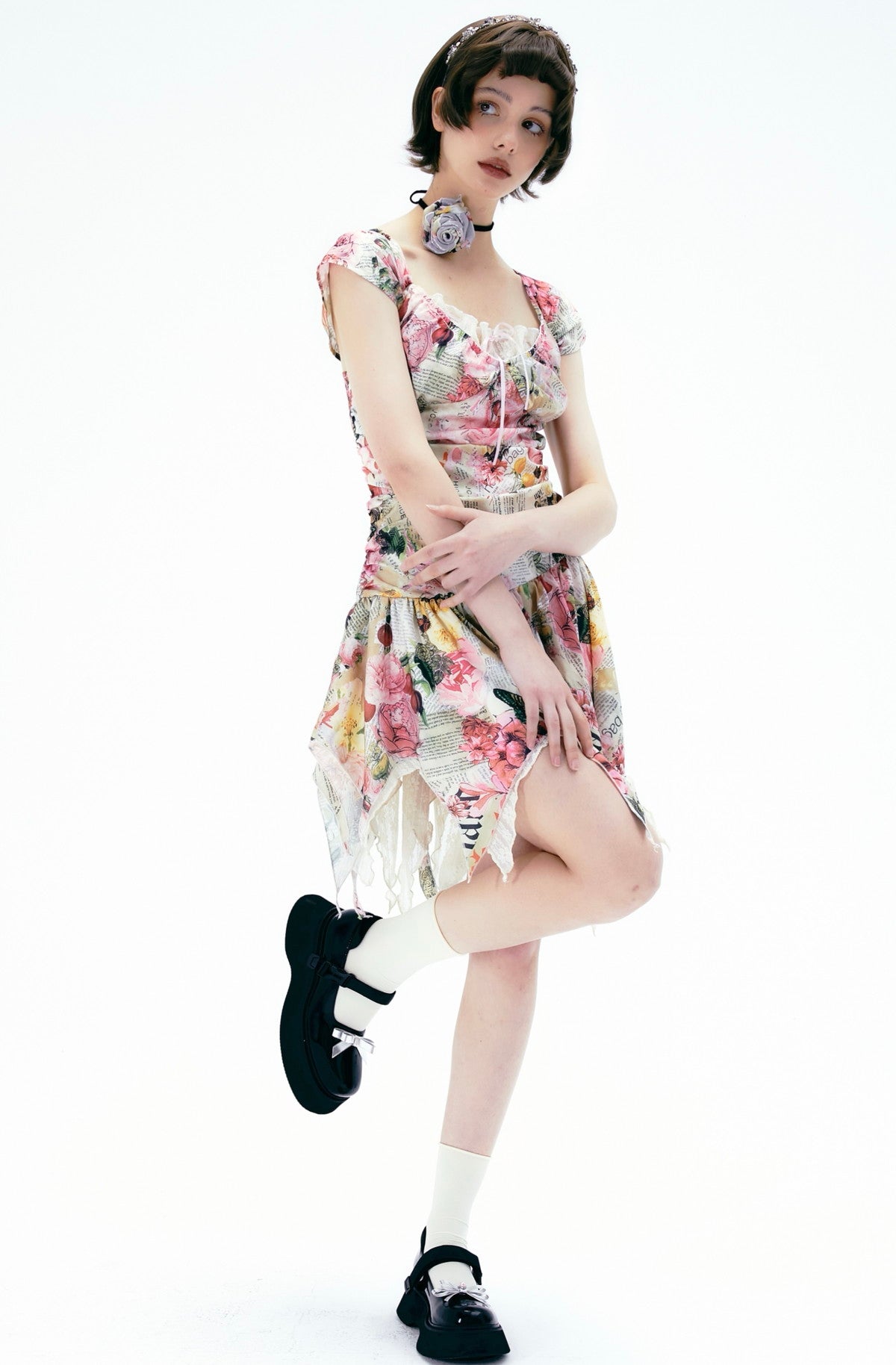 Flower Gorgeous Asymmetry Newspaper One-Piece