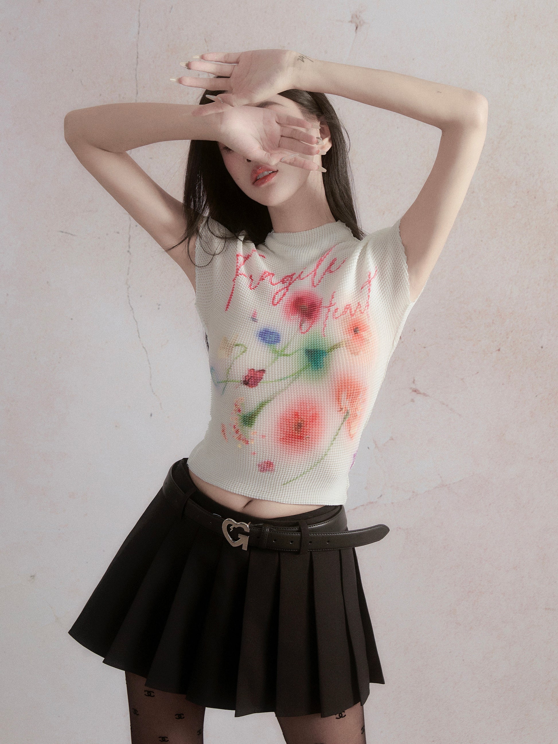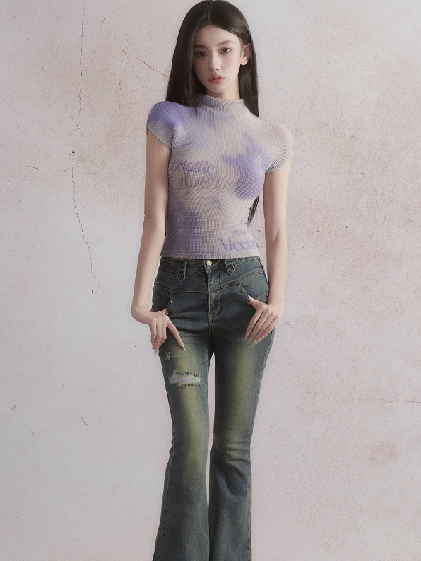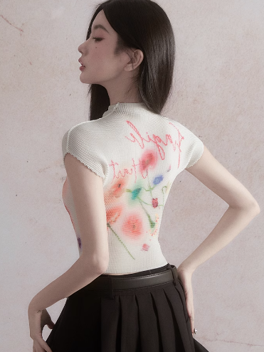 Flower Printed French Sleeve T-shirt