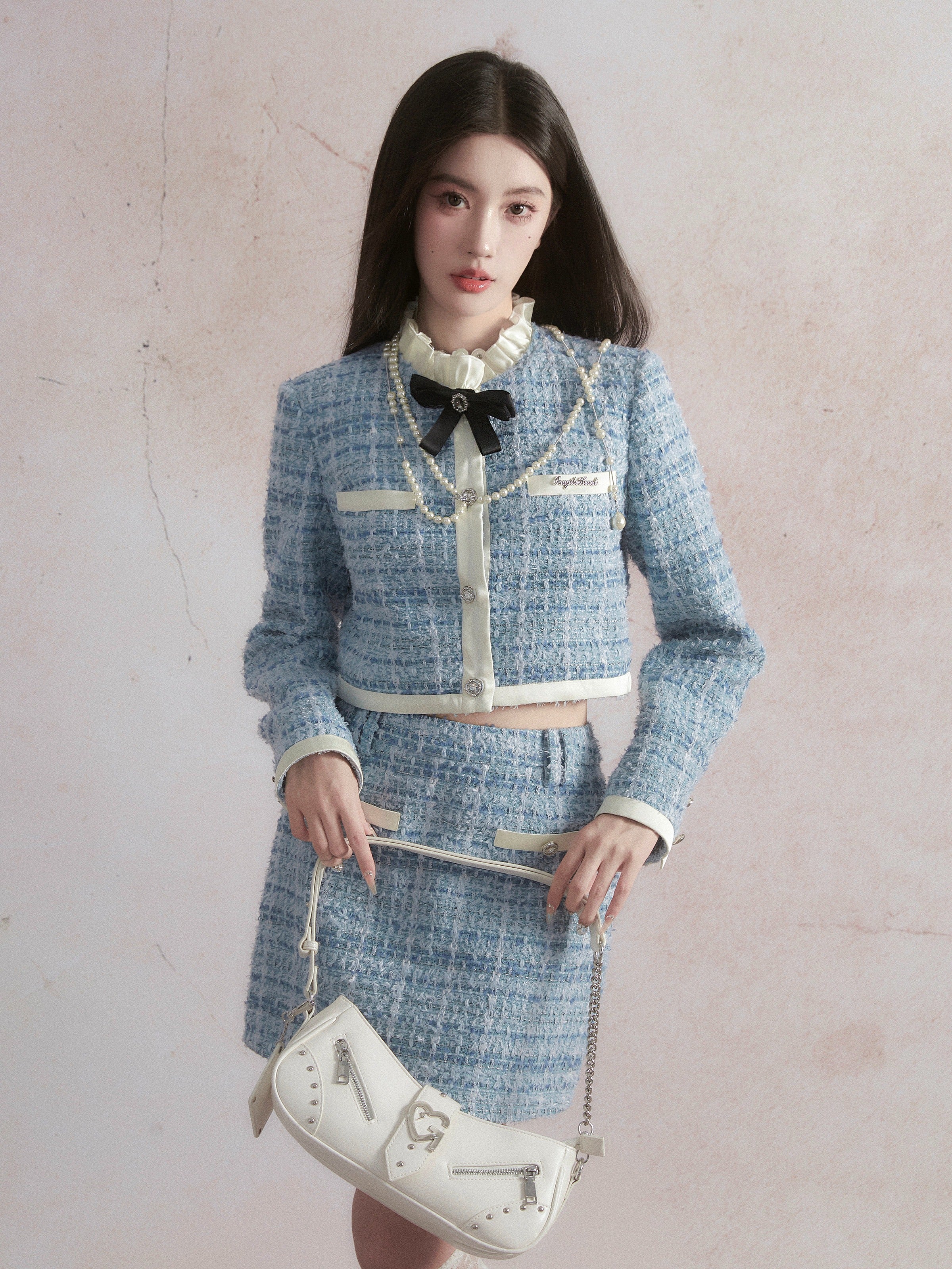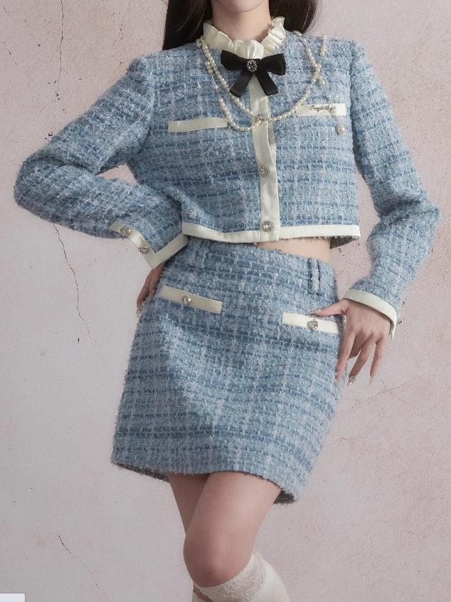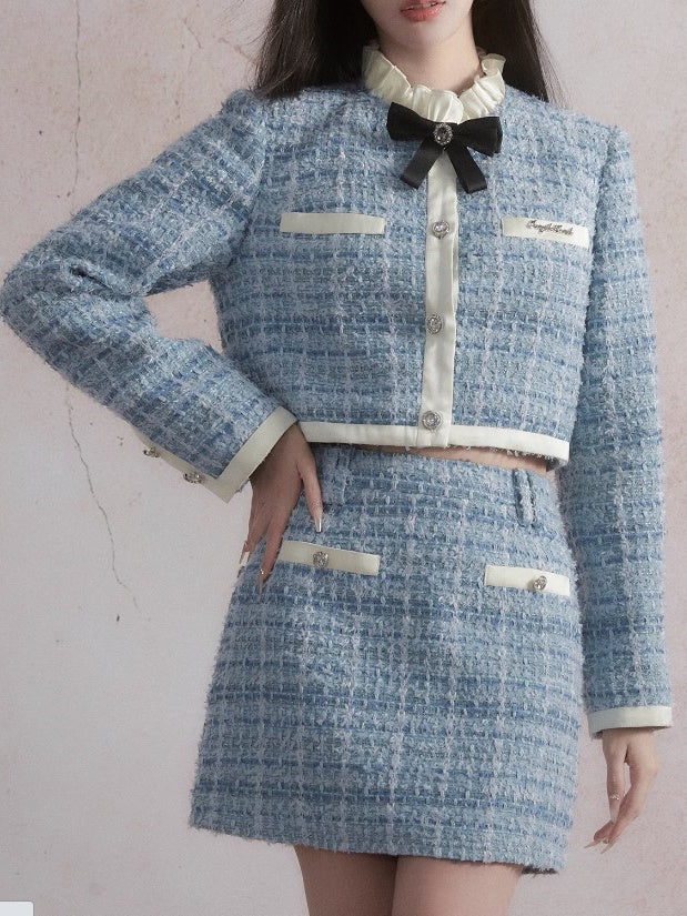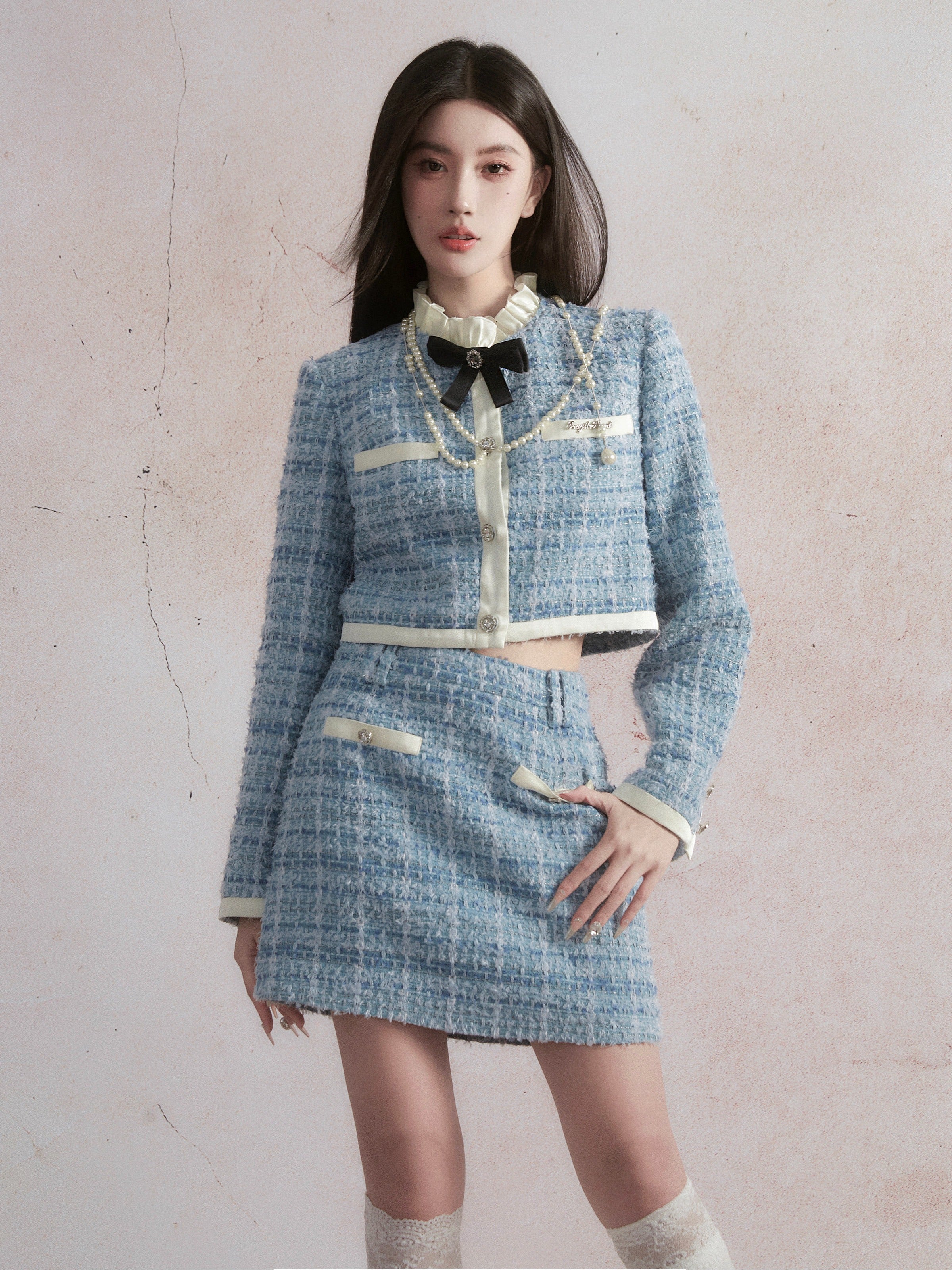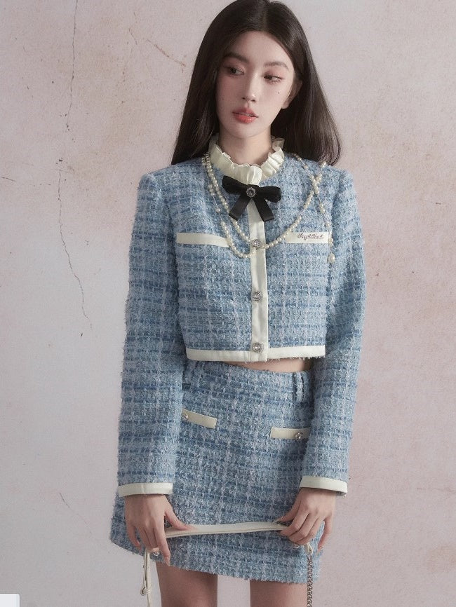 Frill Collar Tweed Jacket & A-Line Mini Skirt