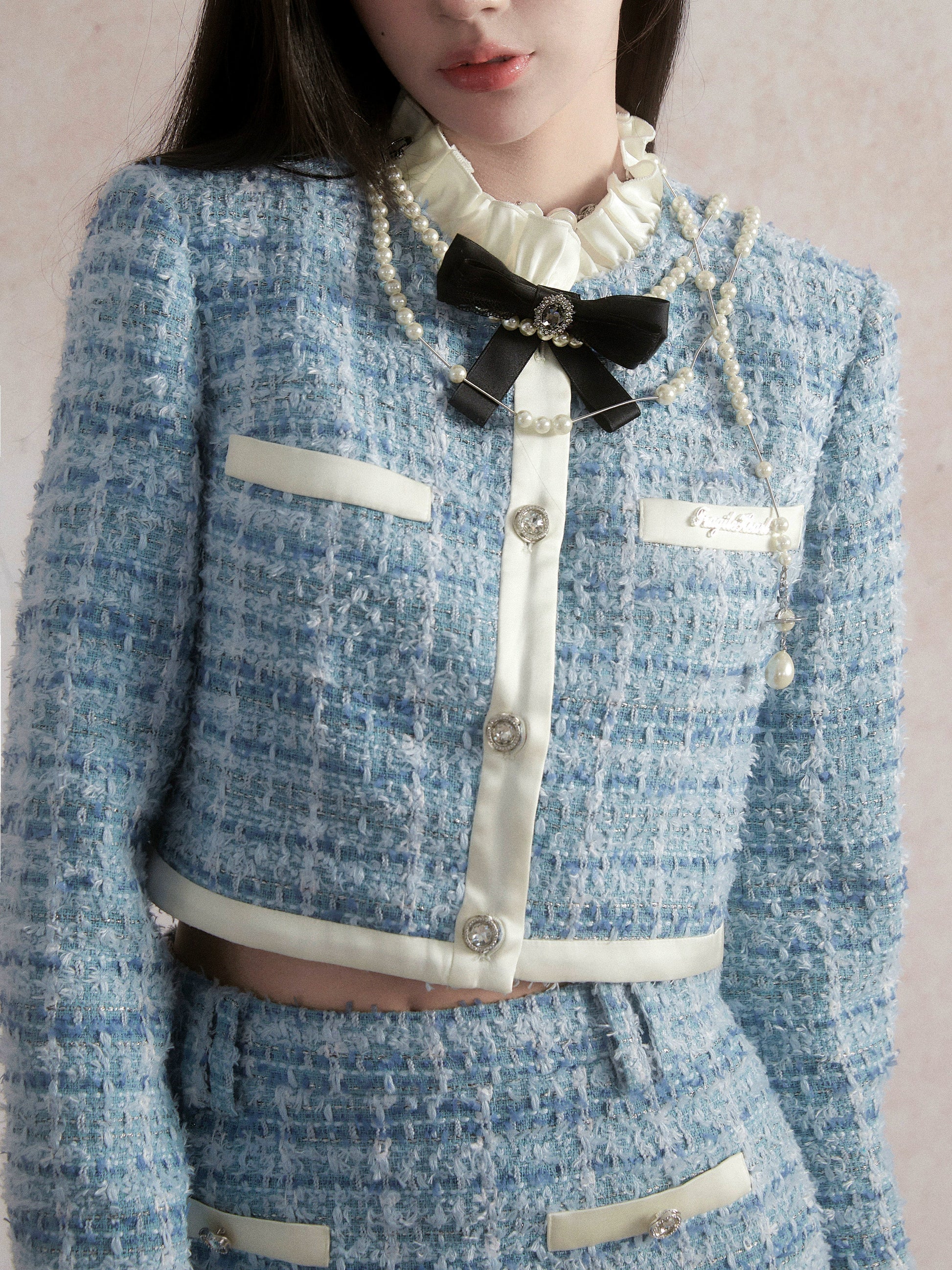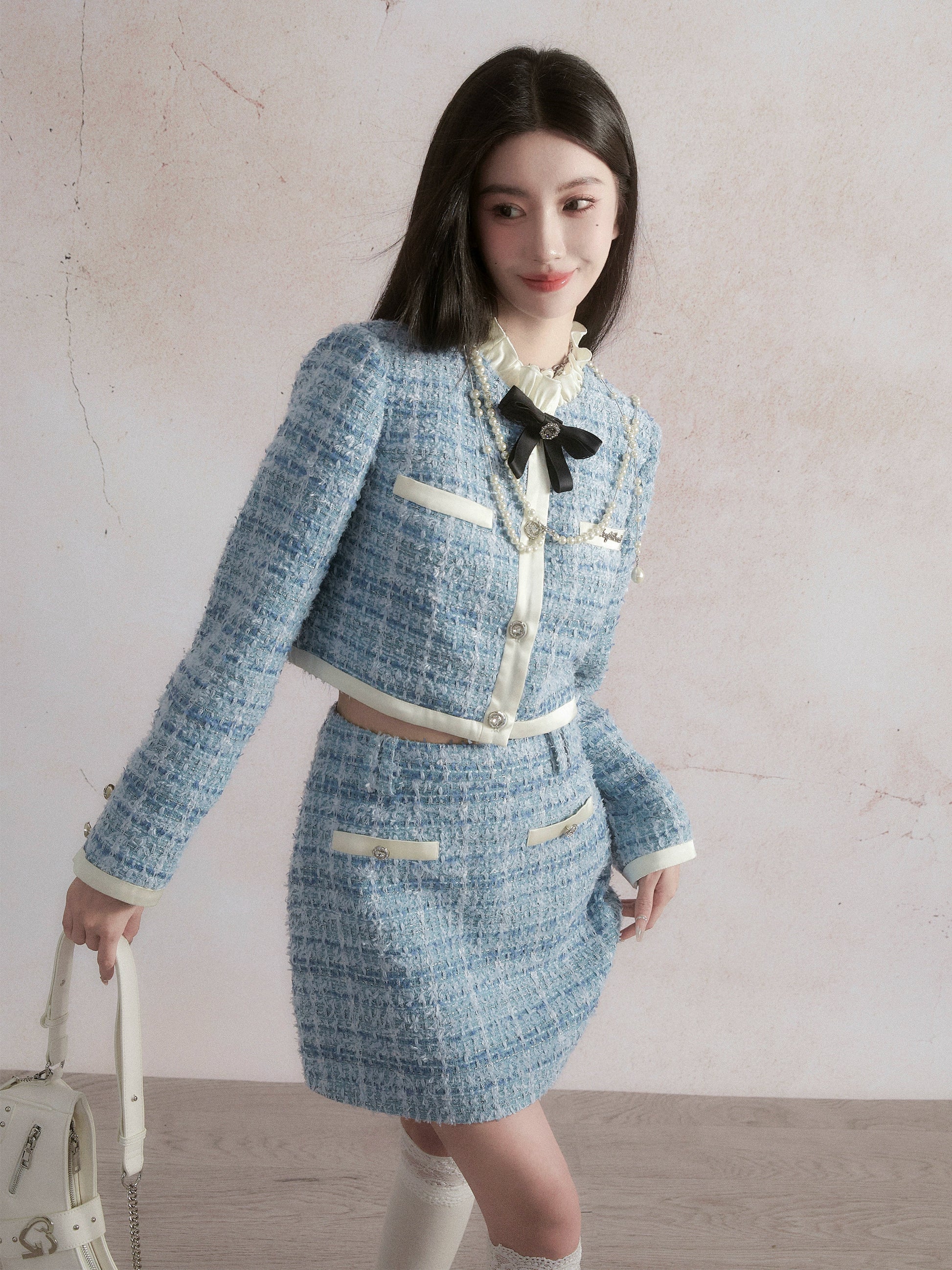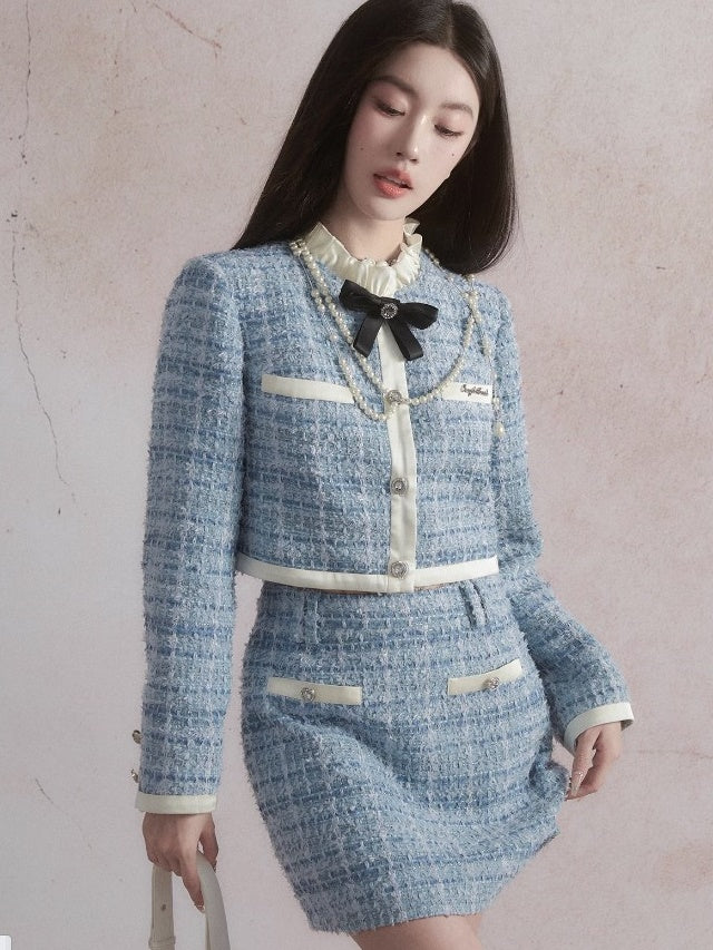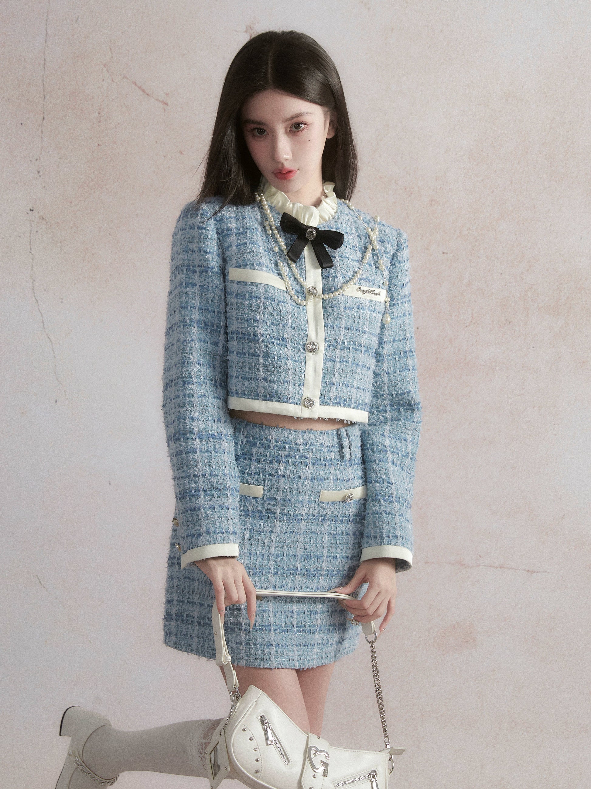 Frill Collar Tweed Jacket & A-Line Mini Skirt