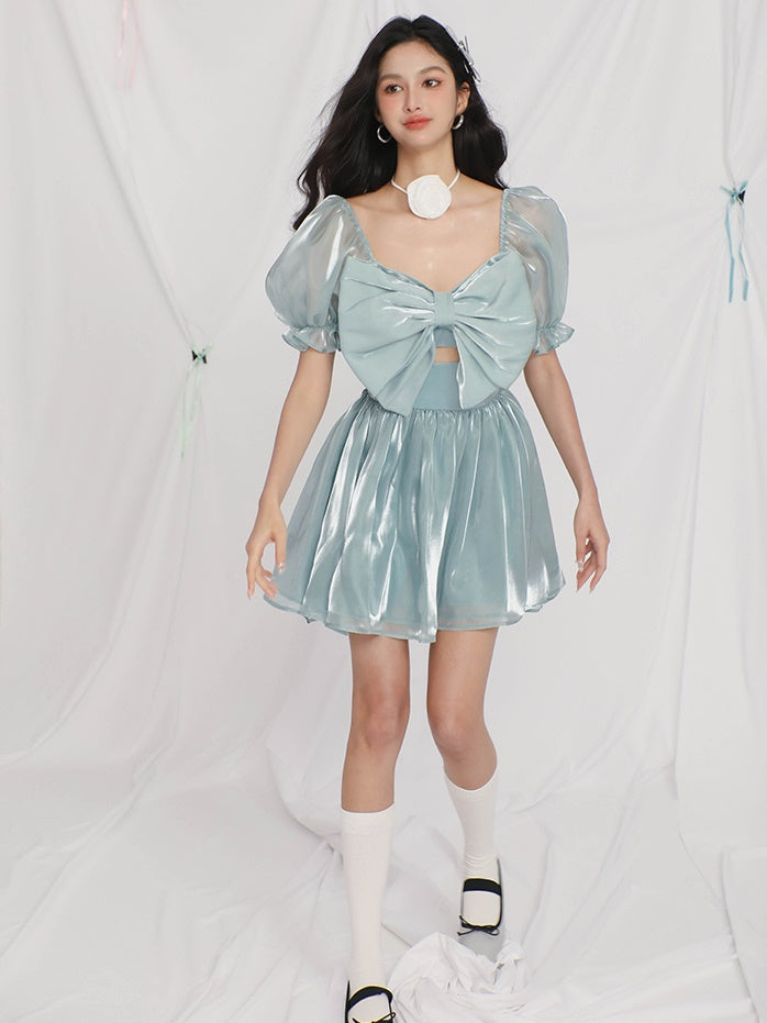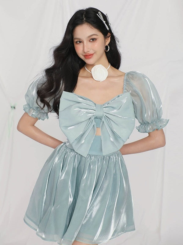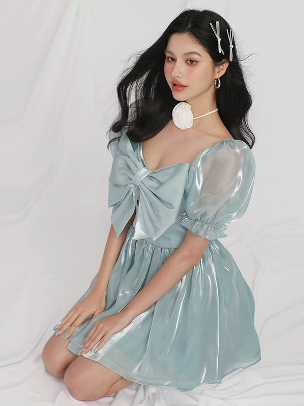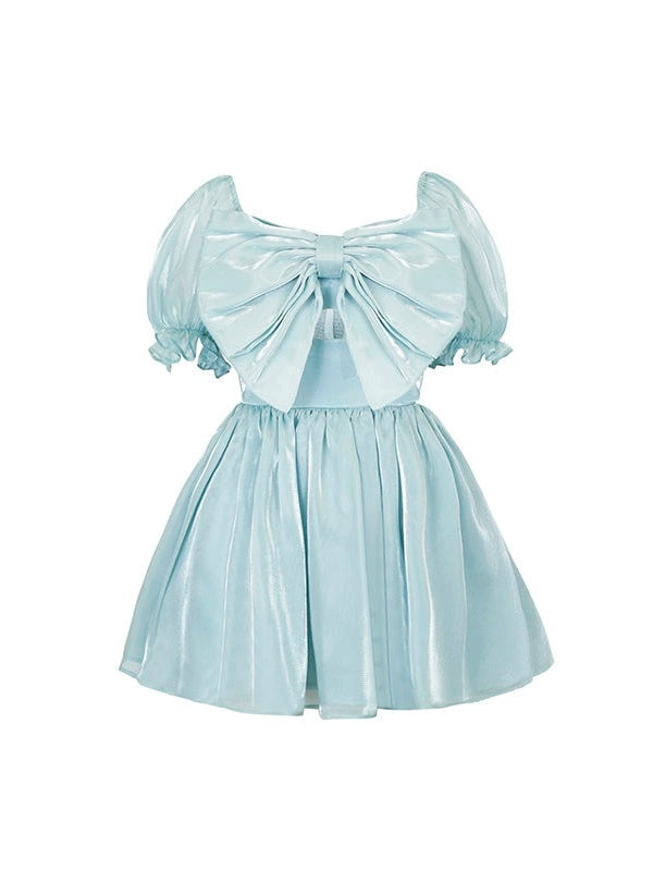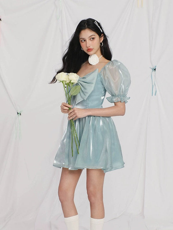 Gauze Puff Sleeve Bow Princess Dress