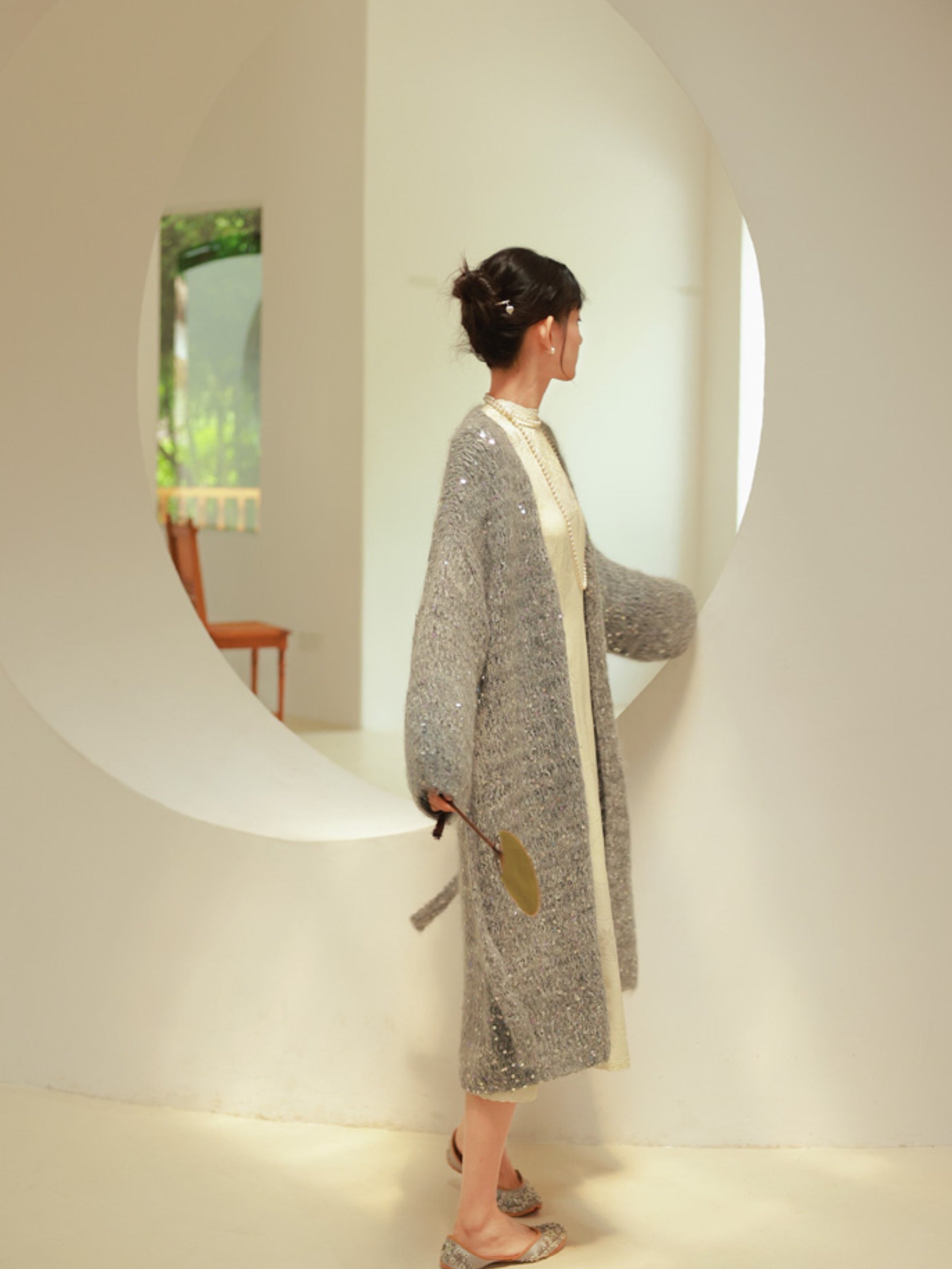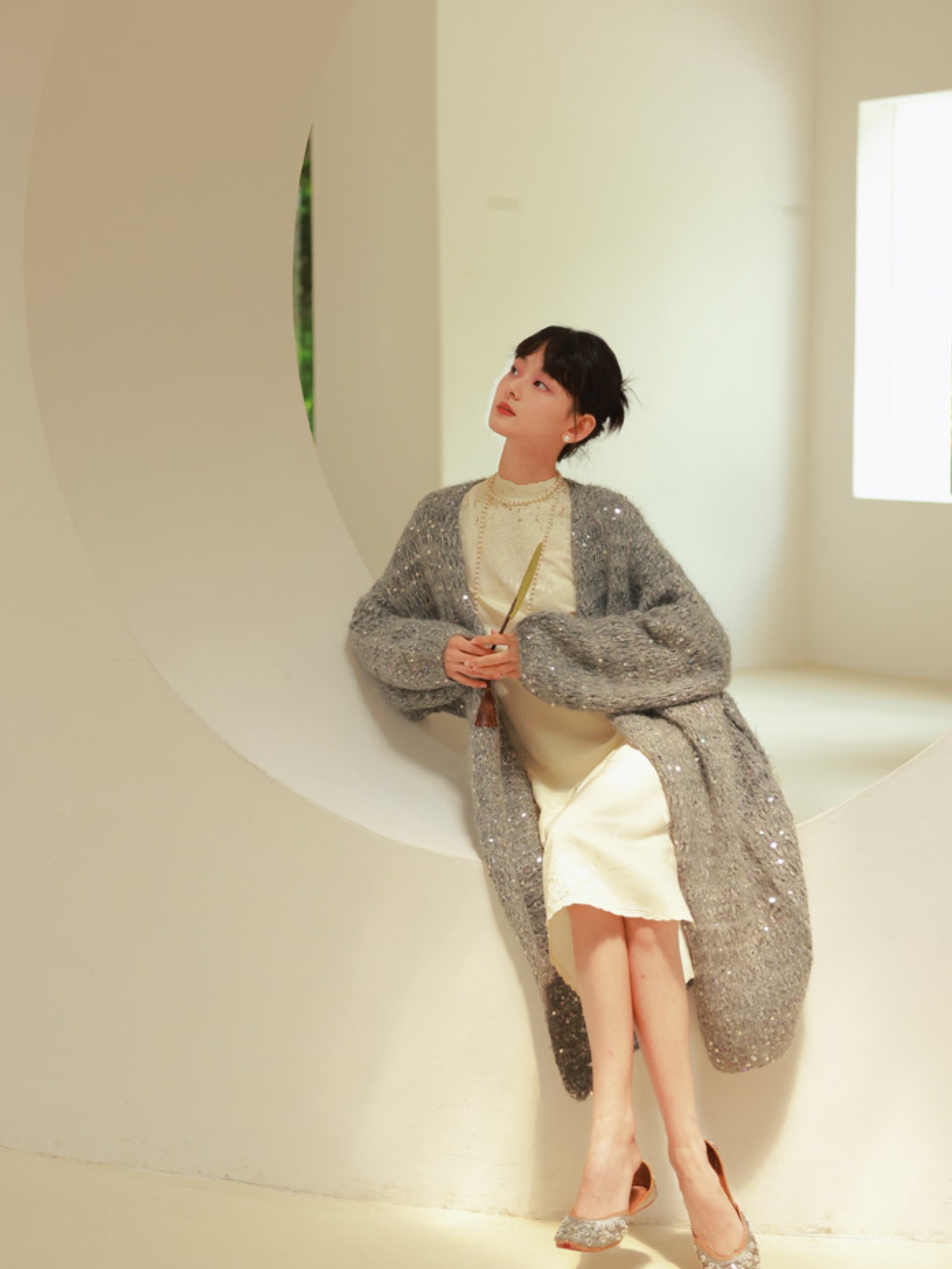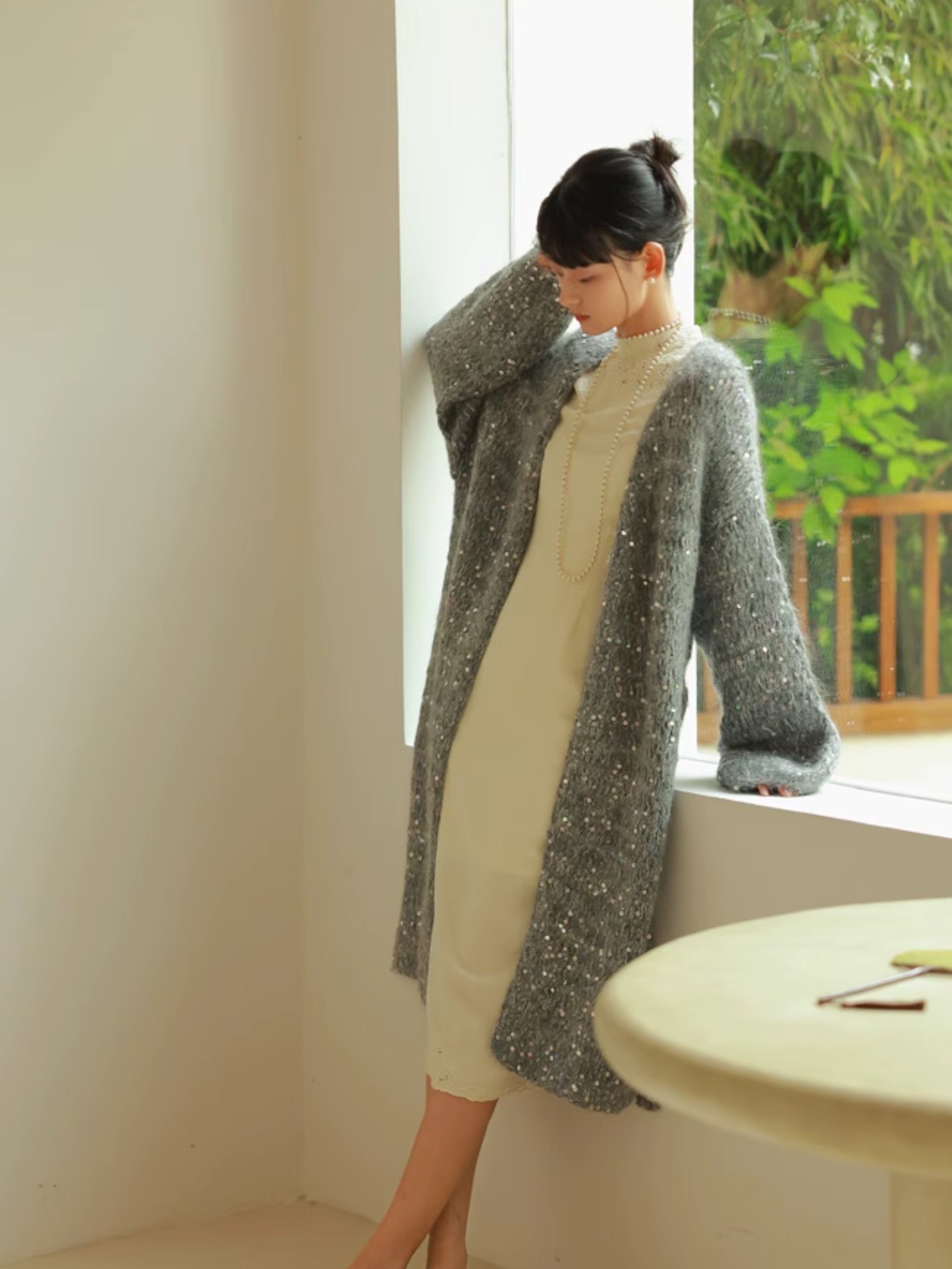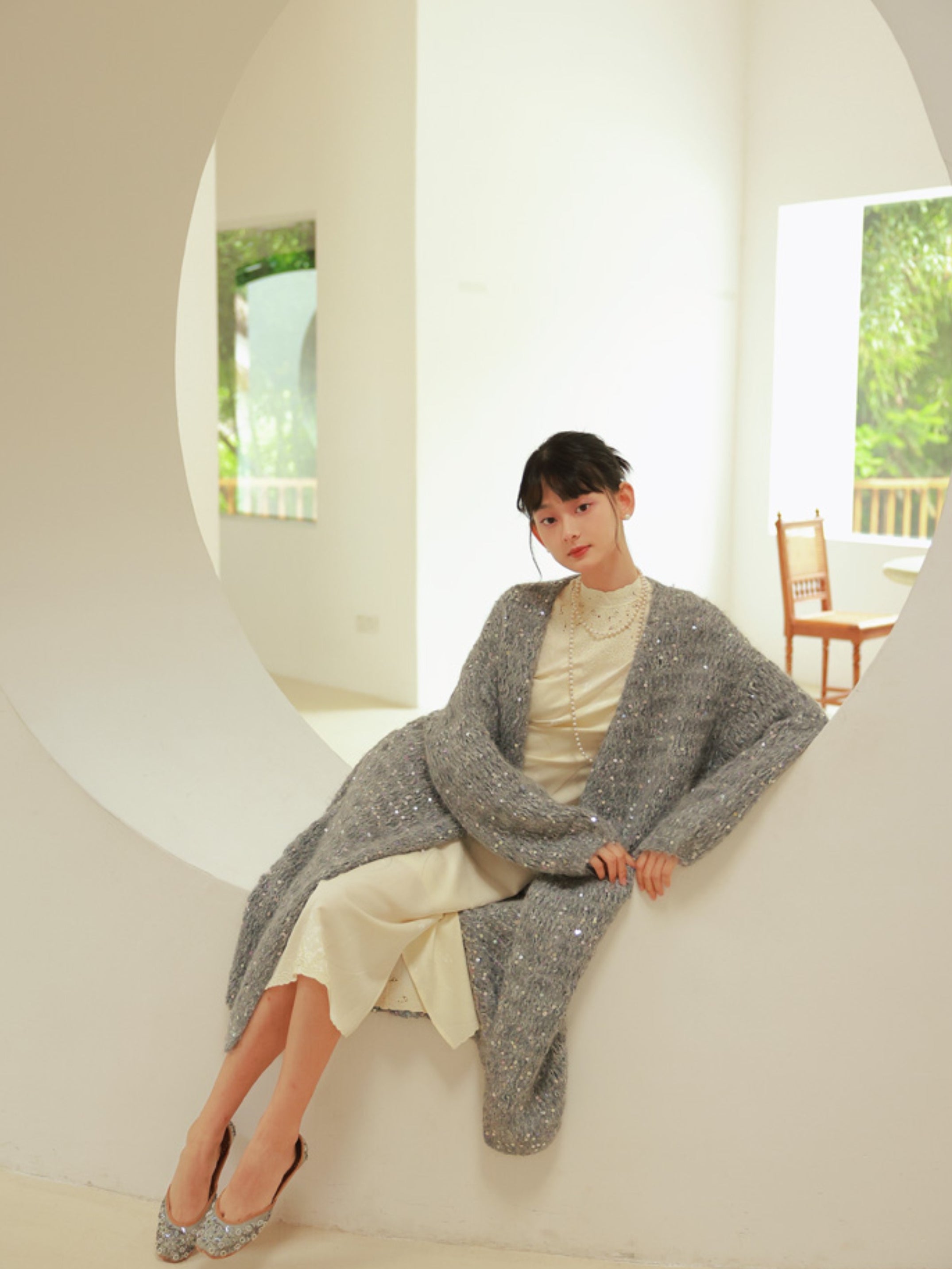 Glossy Loose Knit Effortless Sequins Long-Cardigan