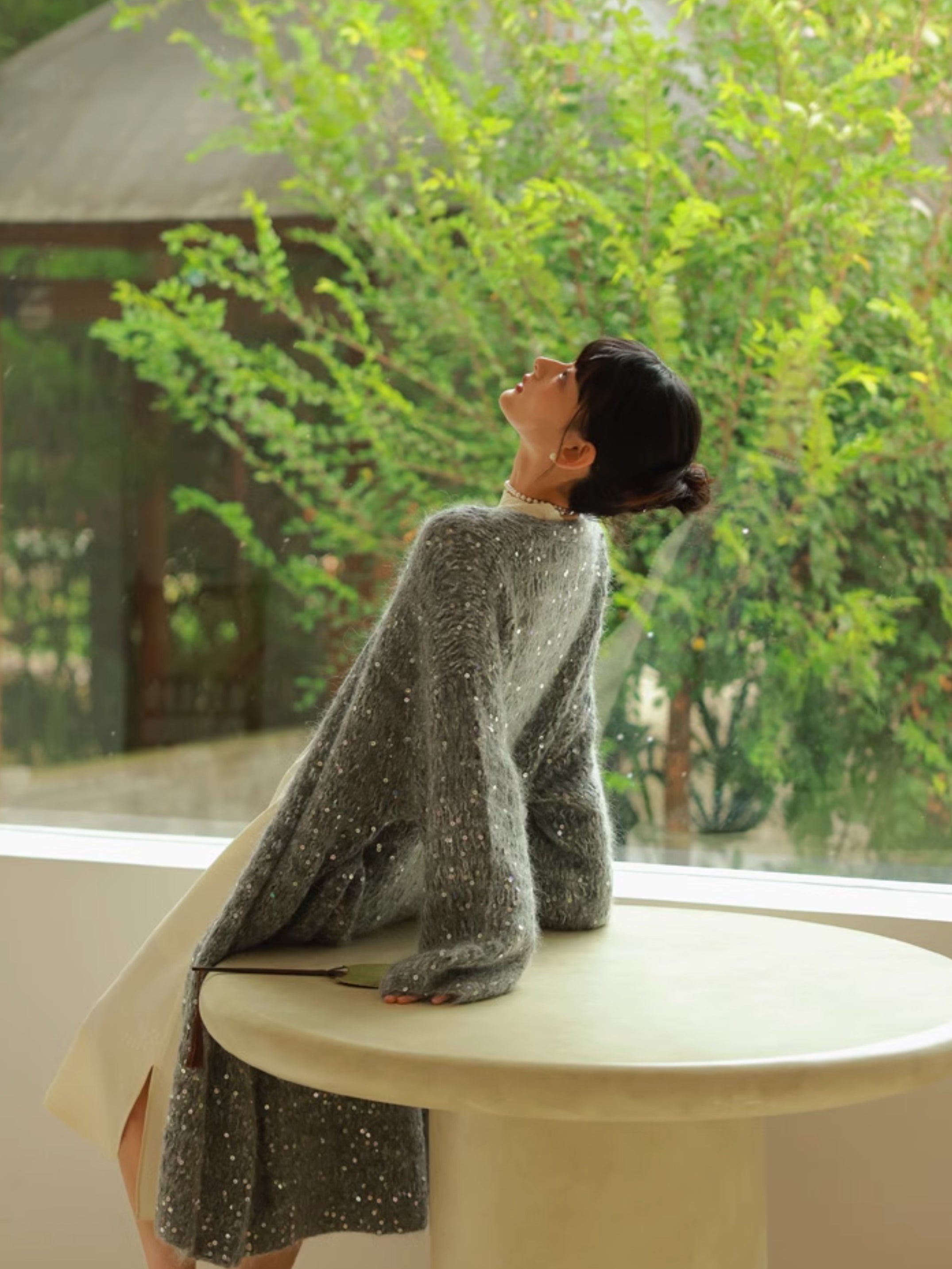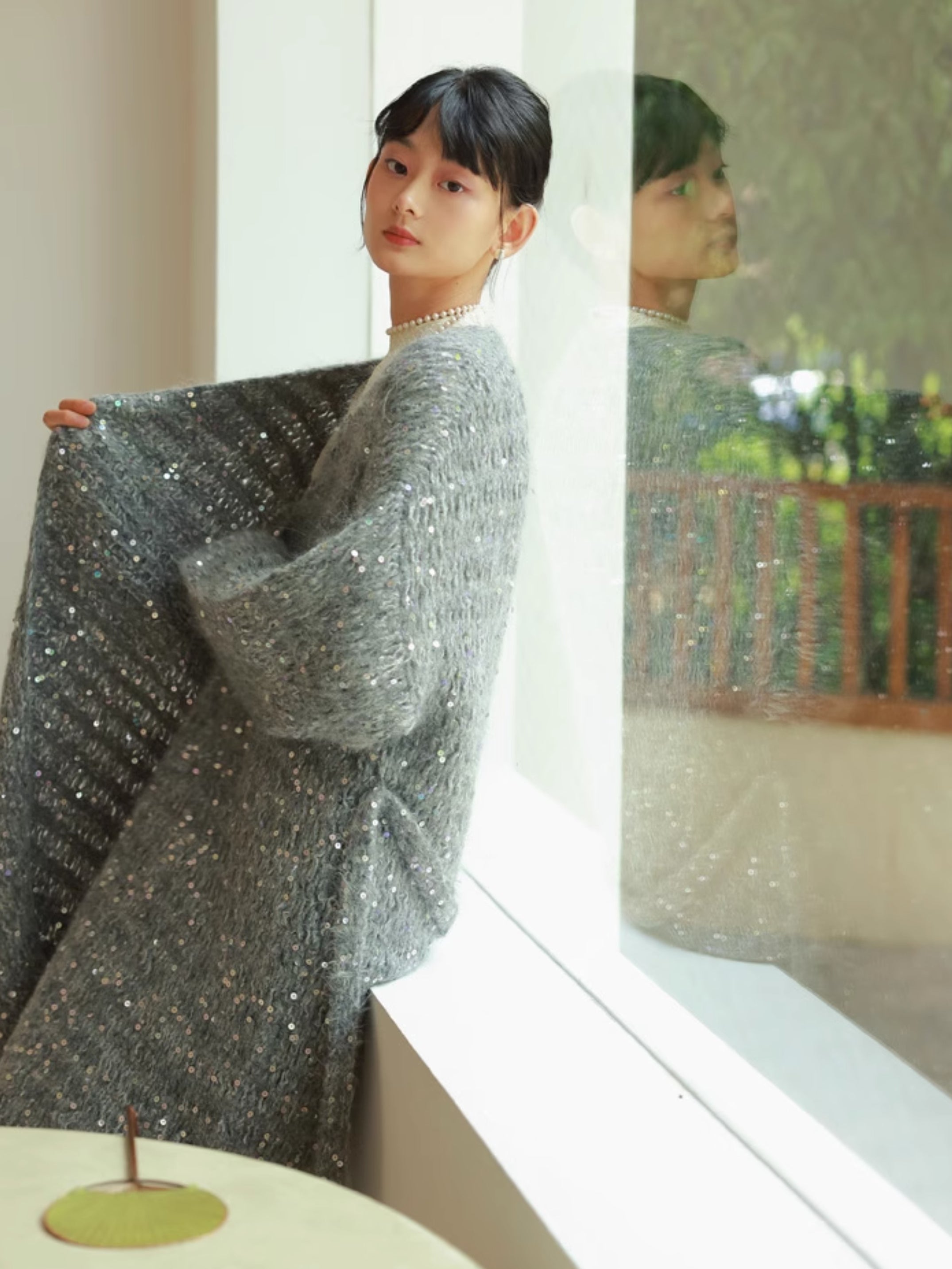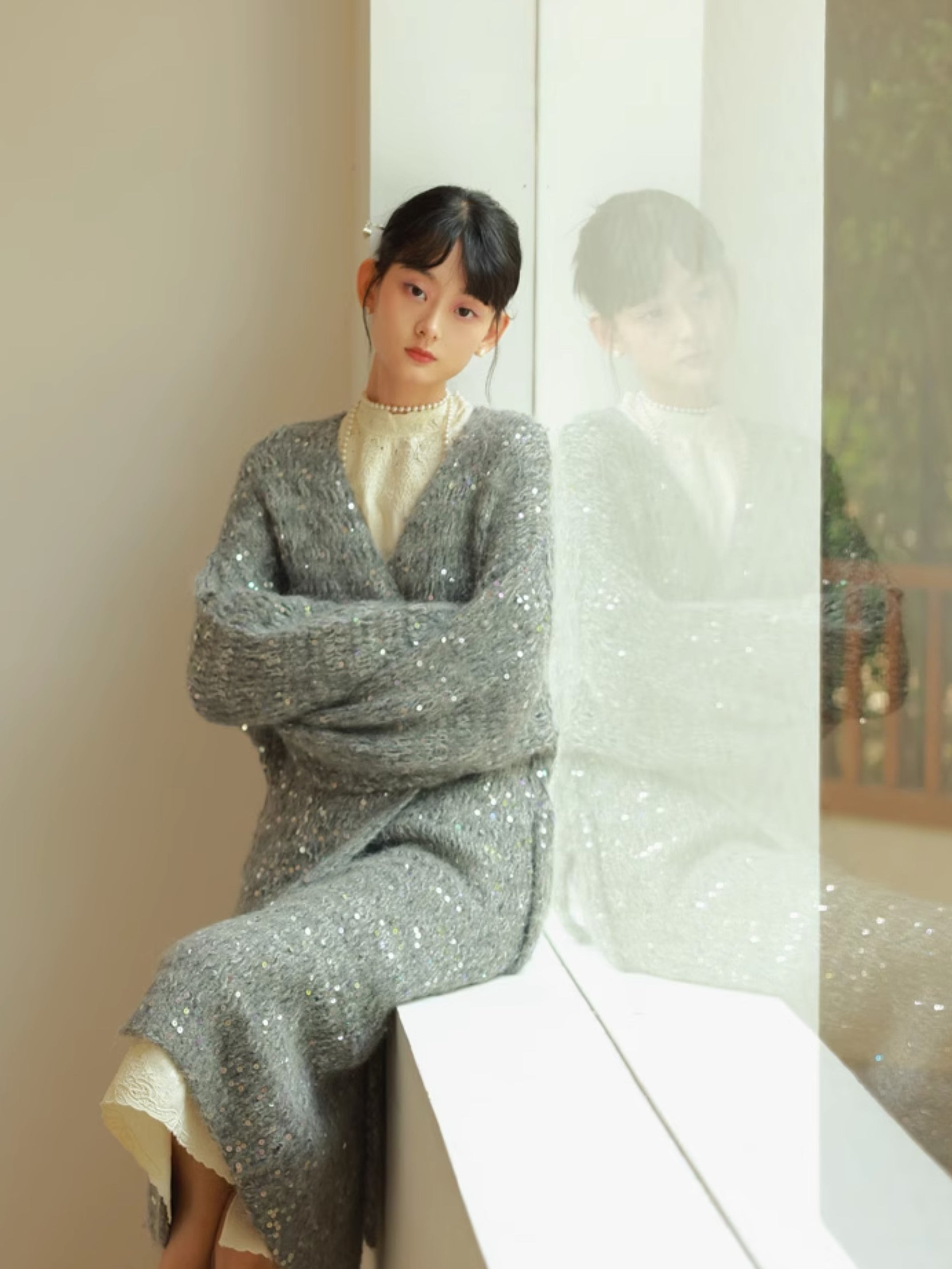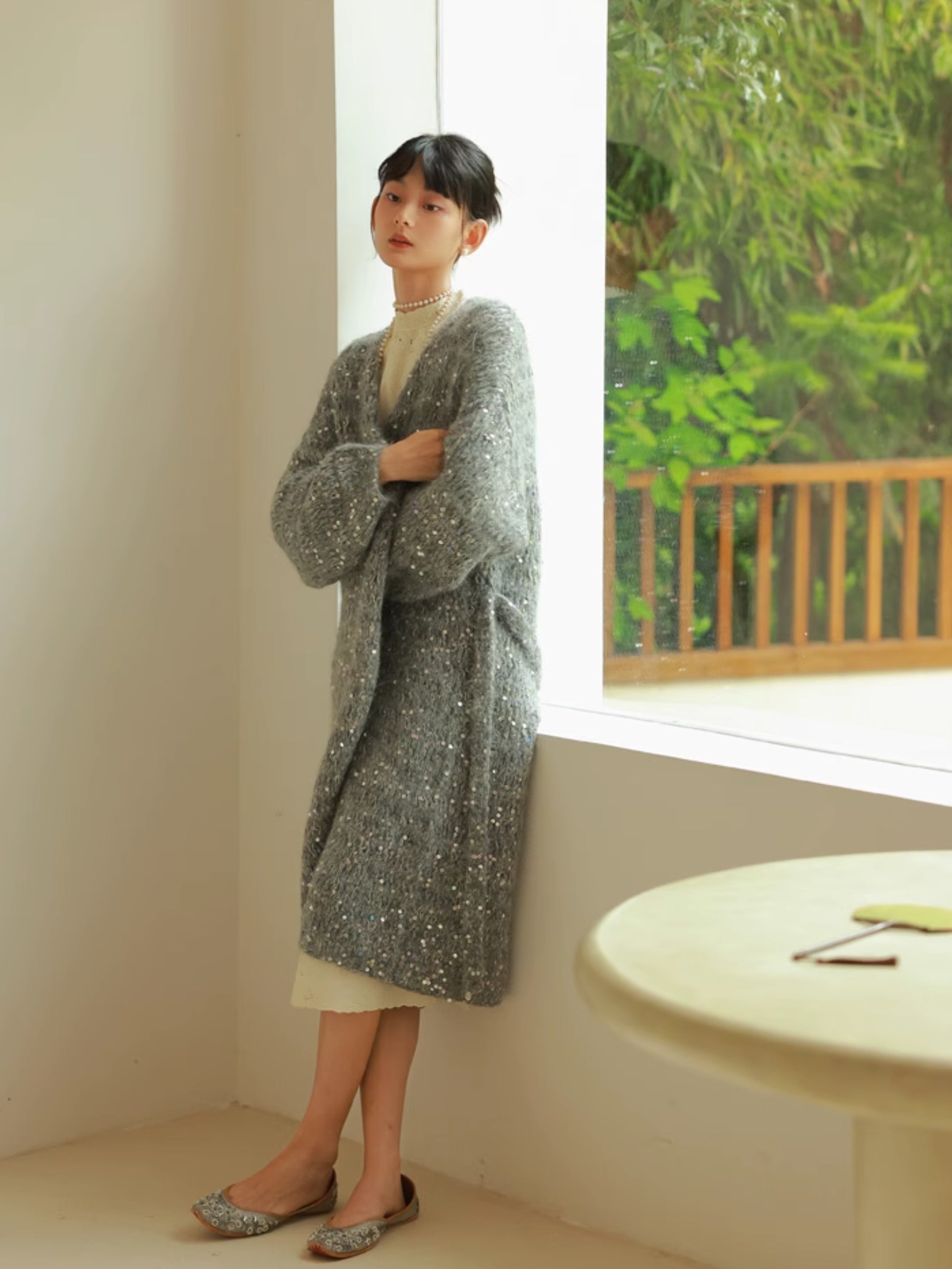 Glossy Loose Knit Effortless Sequins Long-Cardigan