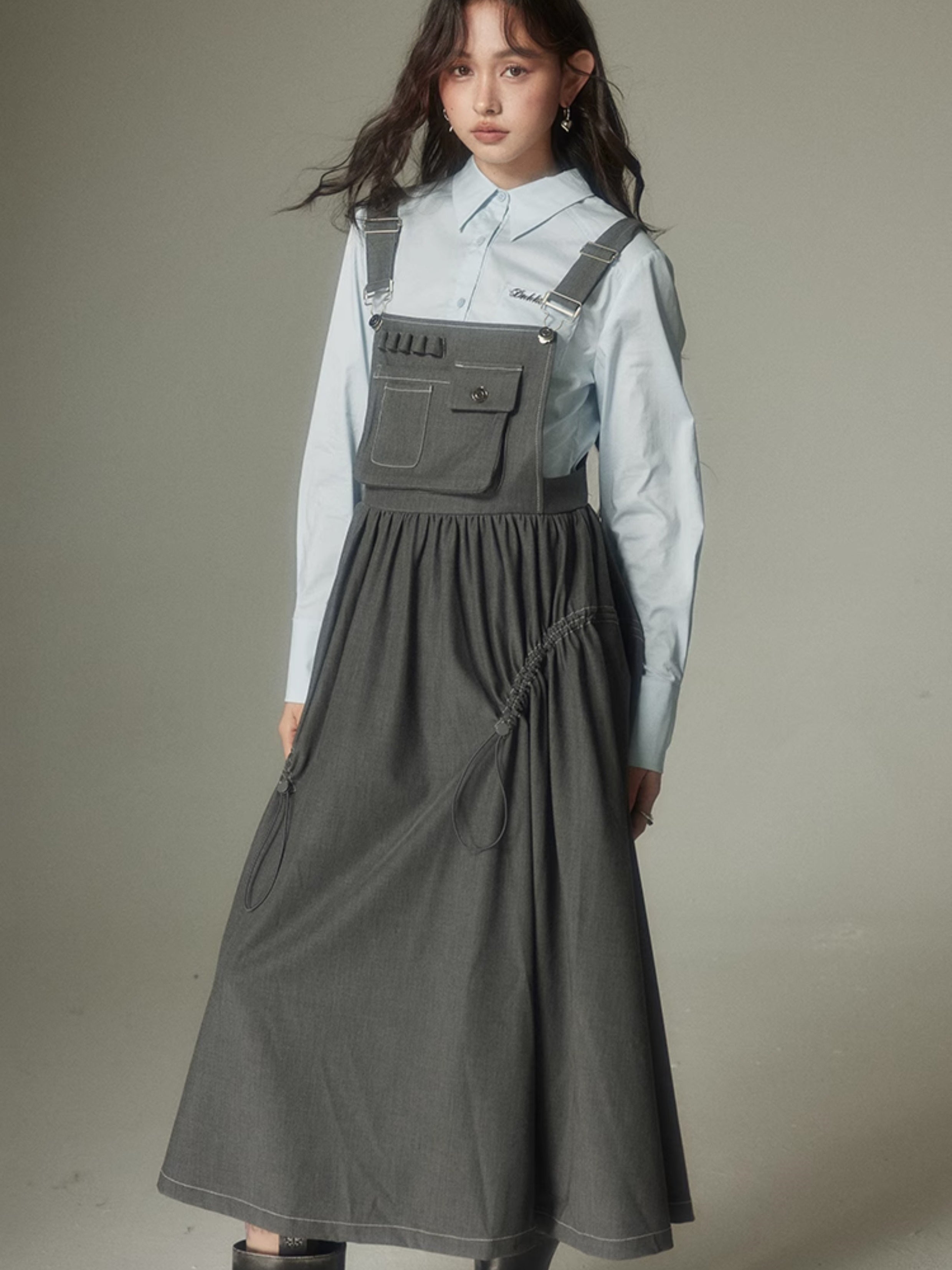 High Waist Gather Suspender Skirt
