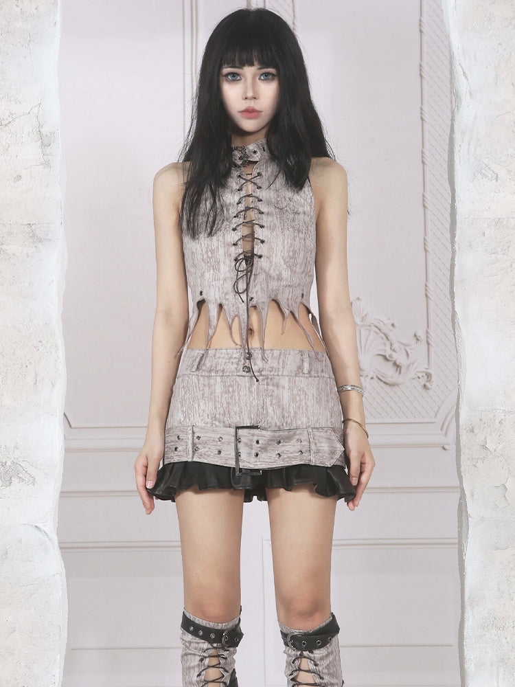 Lace-Up Asymmetry Nichi Belt Sleeveless Tops