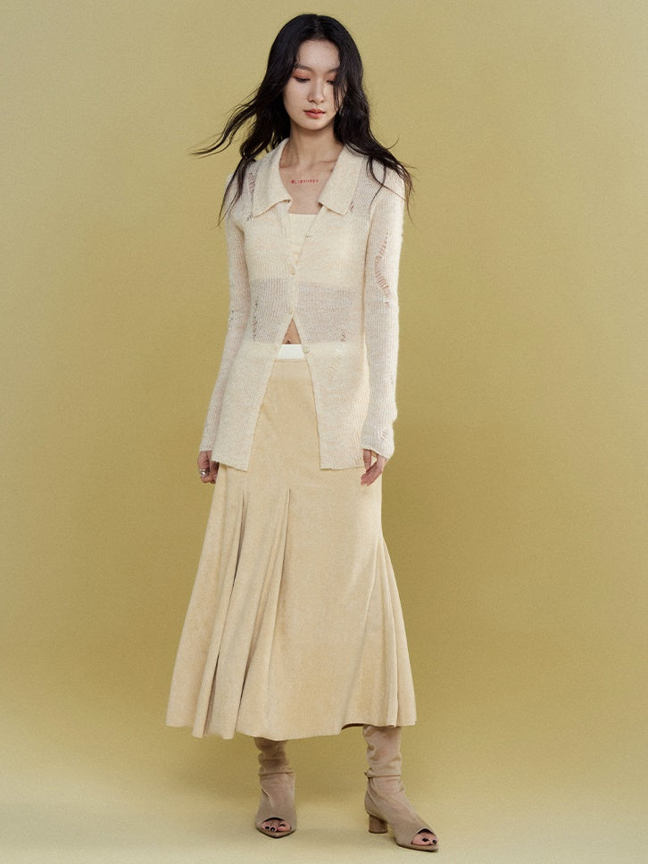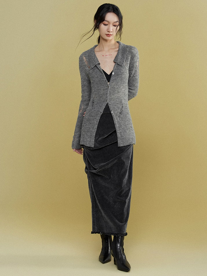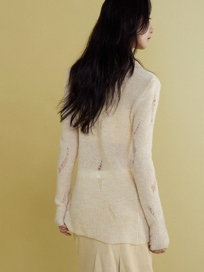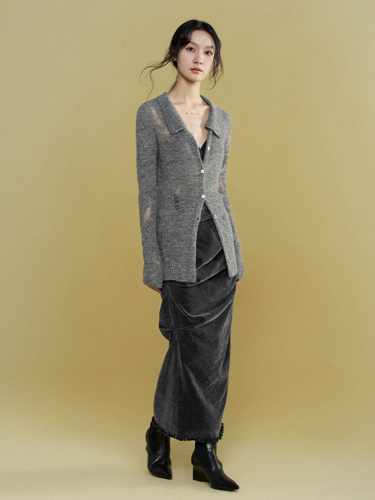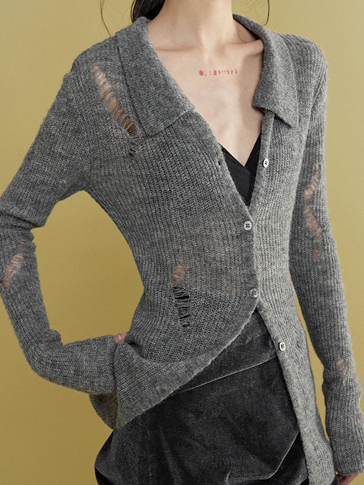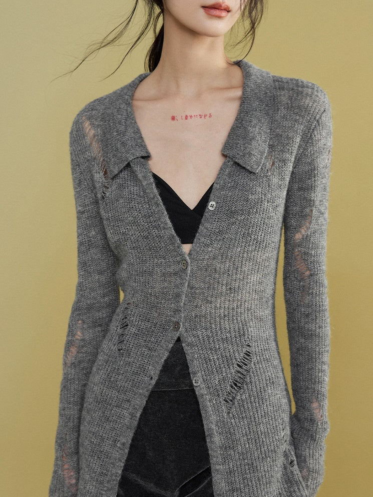 Mohair Ripped Shirt Style Cardigan
