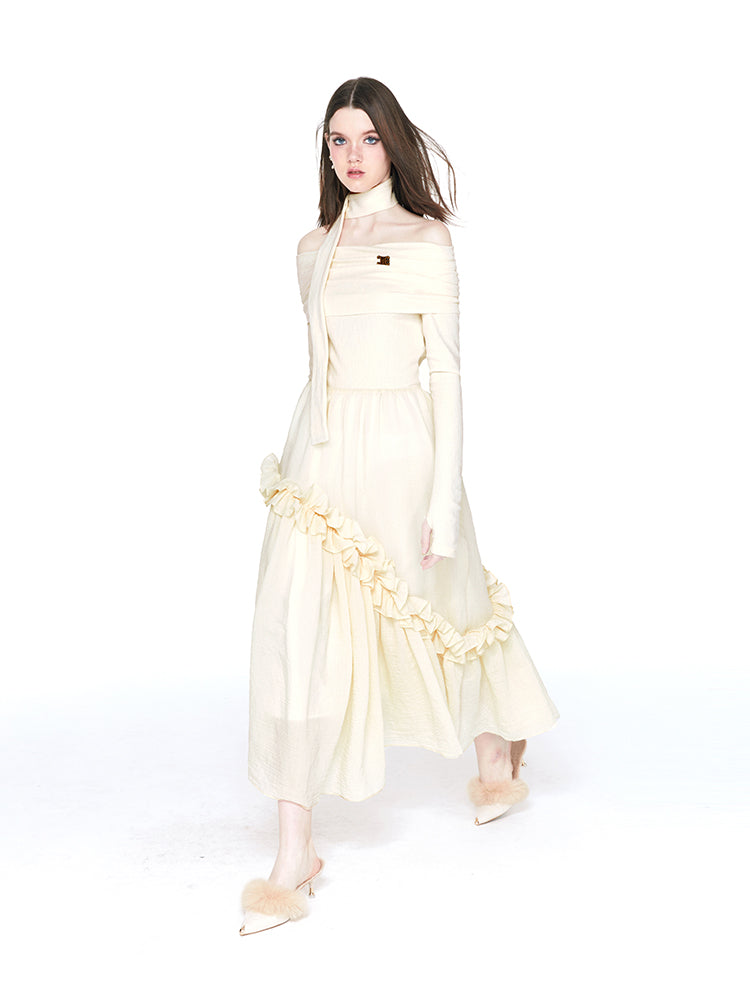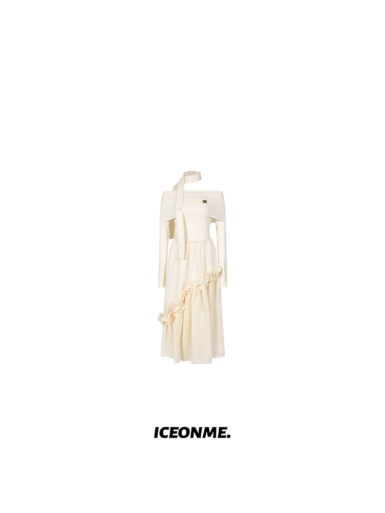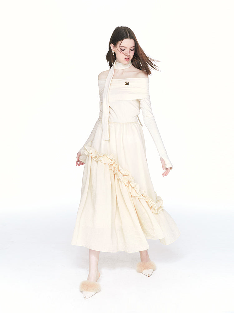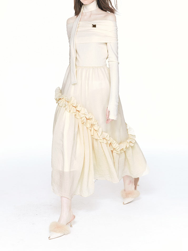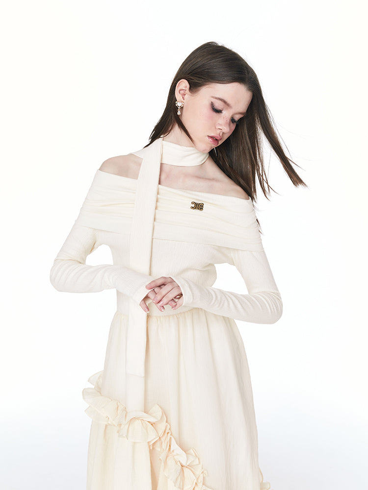 Off-Shoulder Stretch Frill Ruffle Cute One-Piece