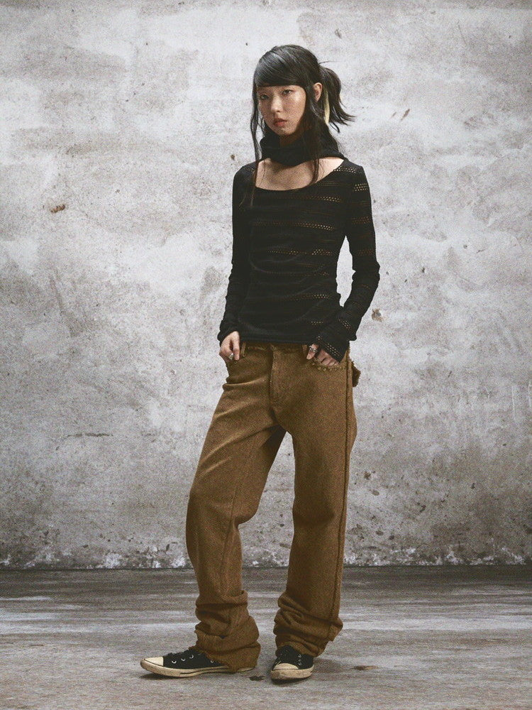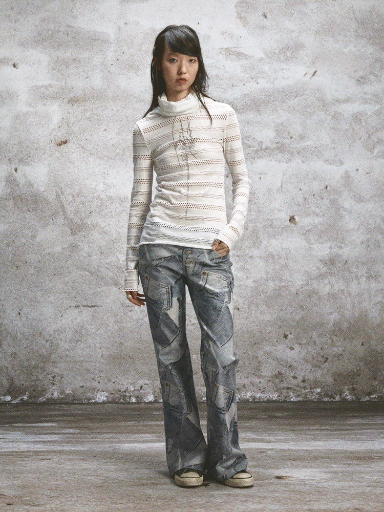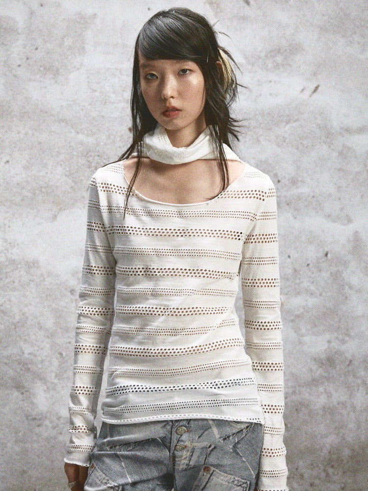 Punching Crew-Neck Thin U-Neck Stretch Cutsew