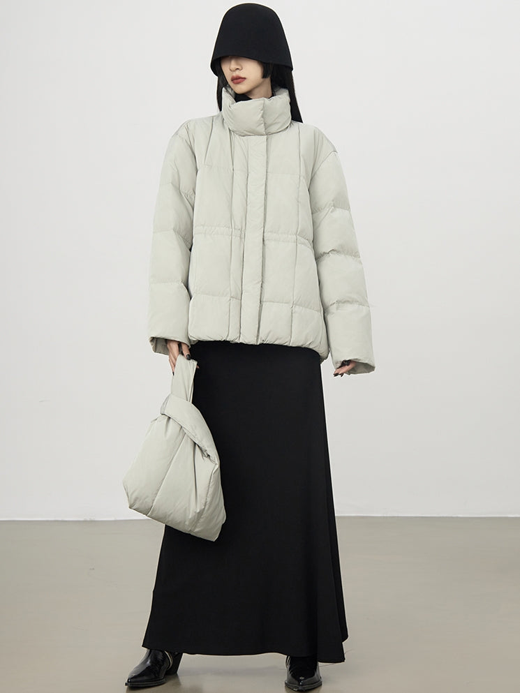 Quilting Stand-Collar Simple Plain Down-Jacket