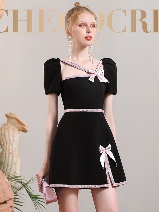 Ribbon Glossy Bijou Elegant Chic One-piece
