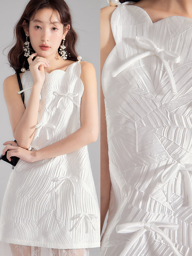 Ribbon Glossy Scallop Feminine Mini-One-Piece