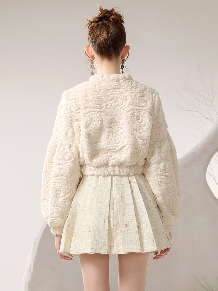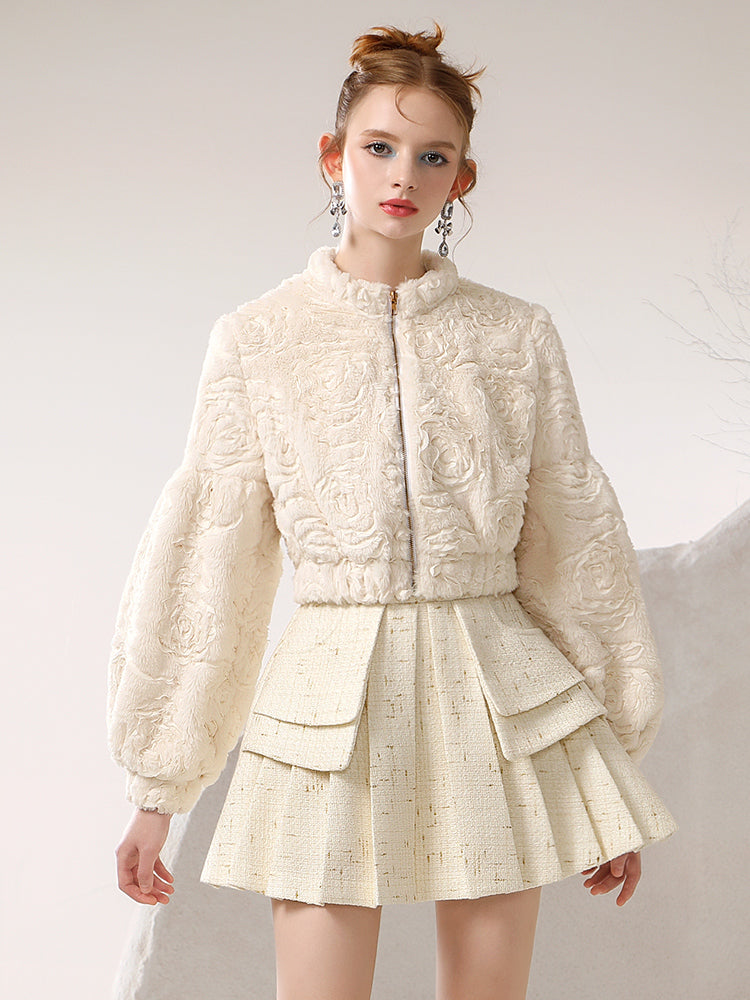 Rose Embroidery Feminine Balloon-Sleeve Jacket