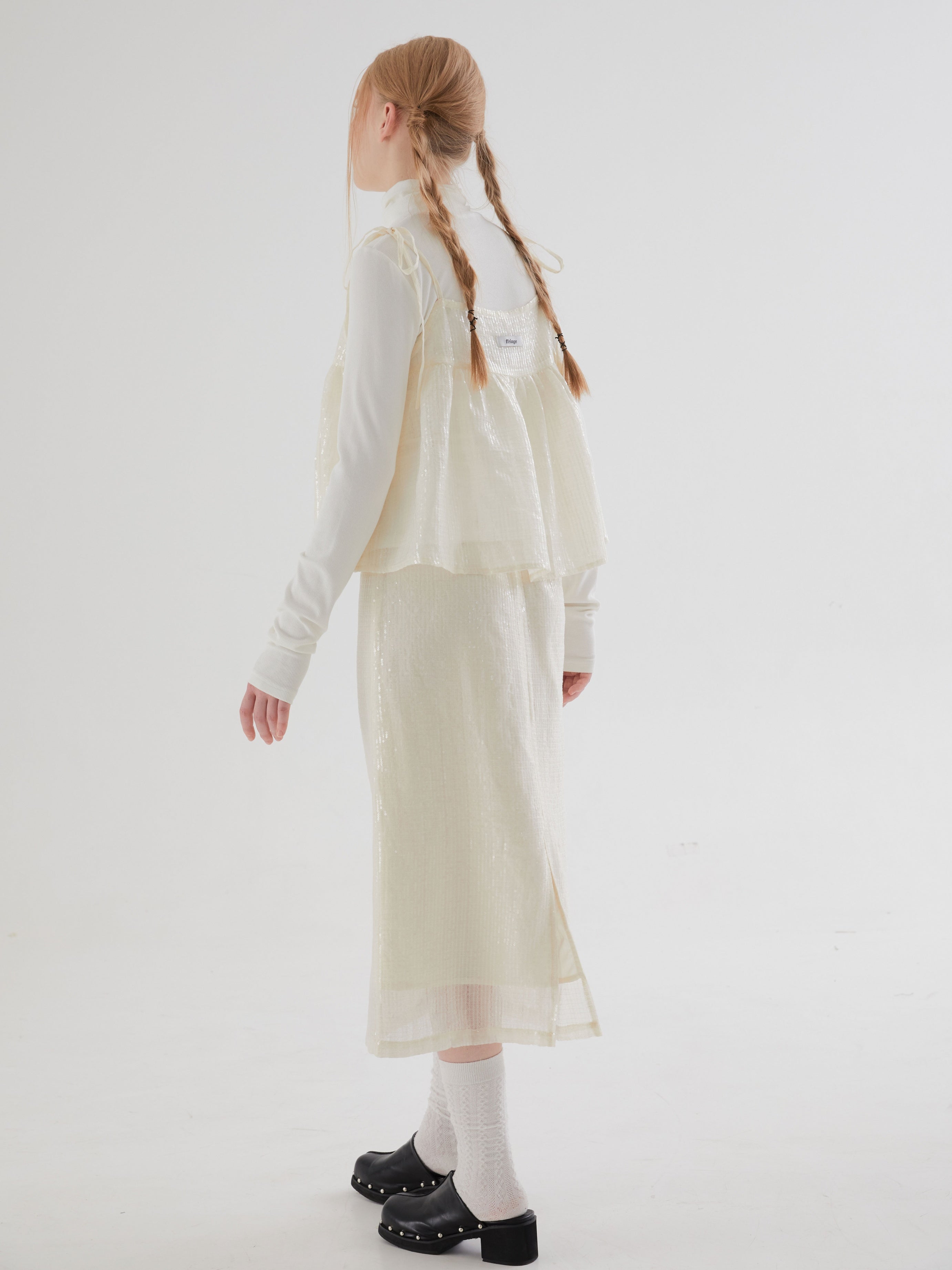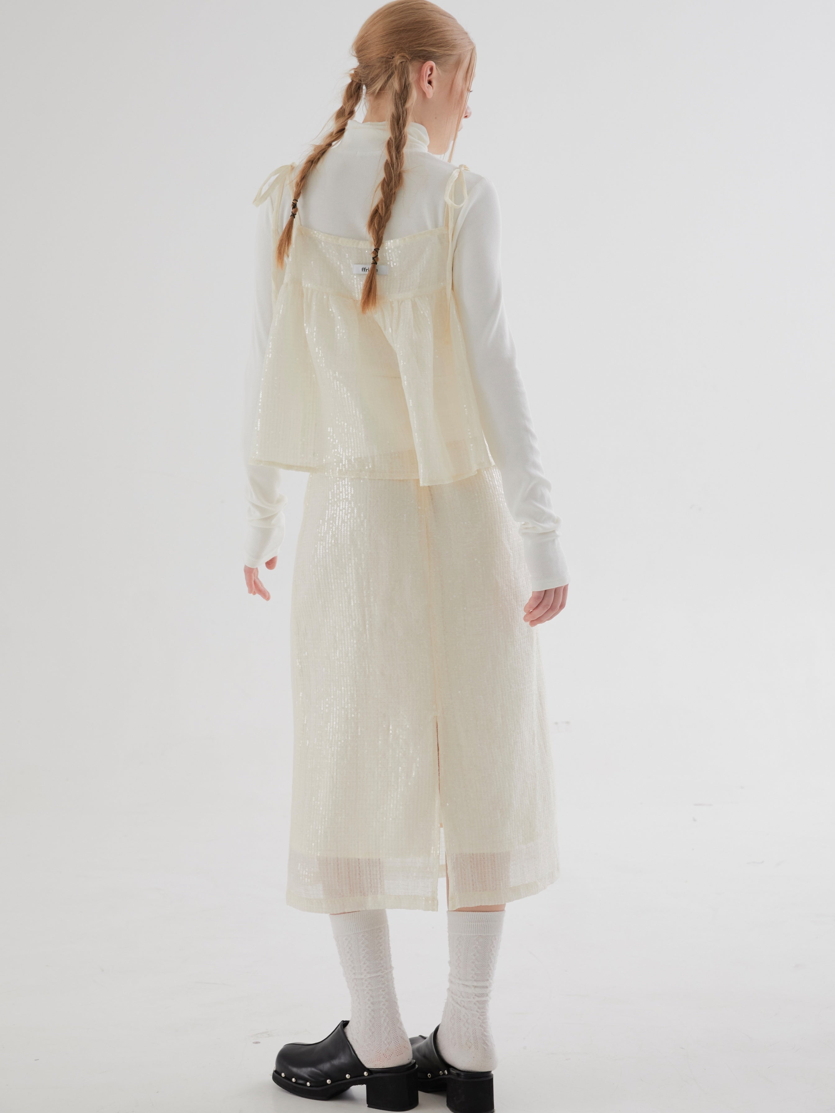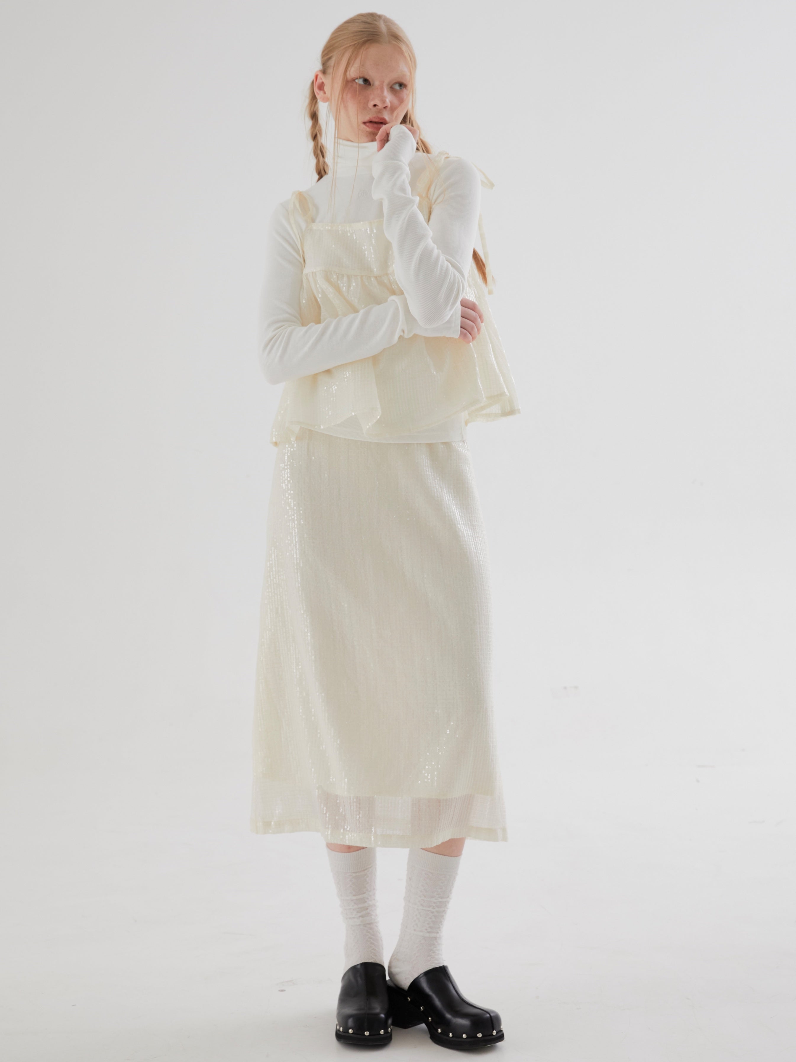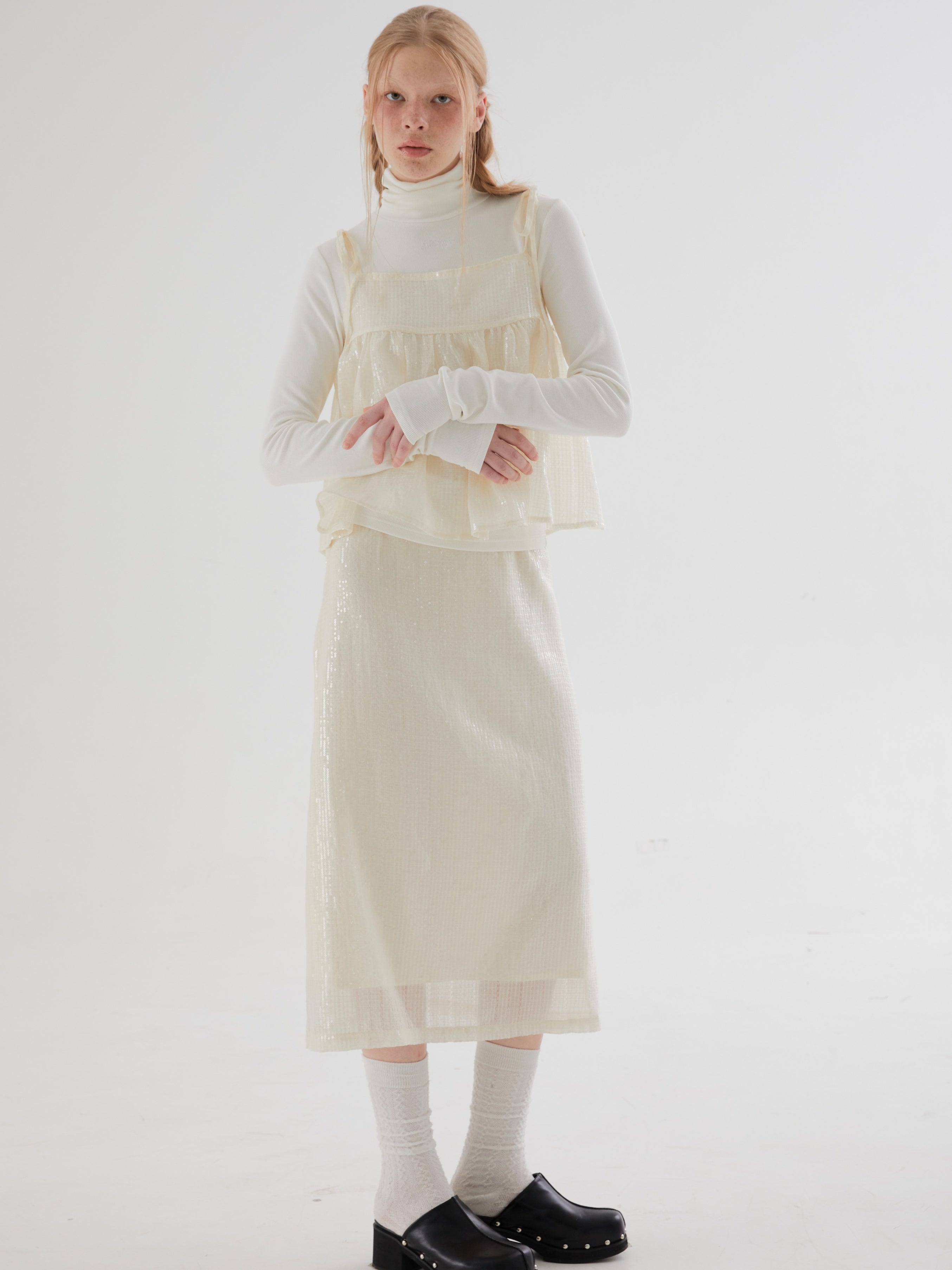 Sequined Slit Straight Skirt
