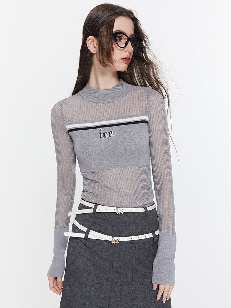 Sheer Mesh Nichi Tight Box-Pleats knit&Skirt