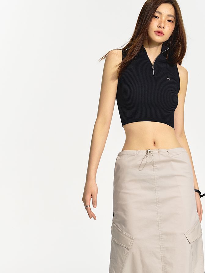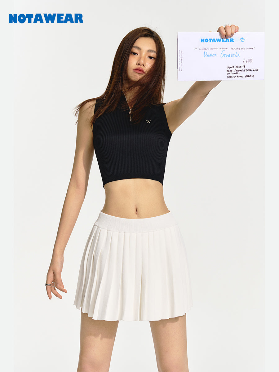 Sleeveless Zip Cropped Summer-Knit
